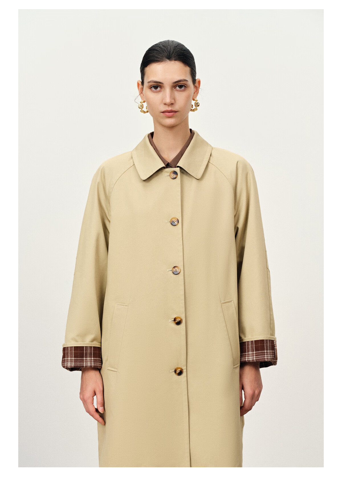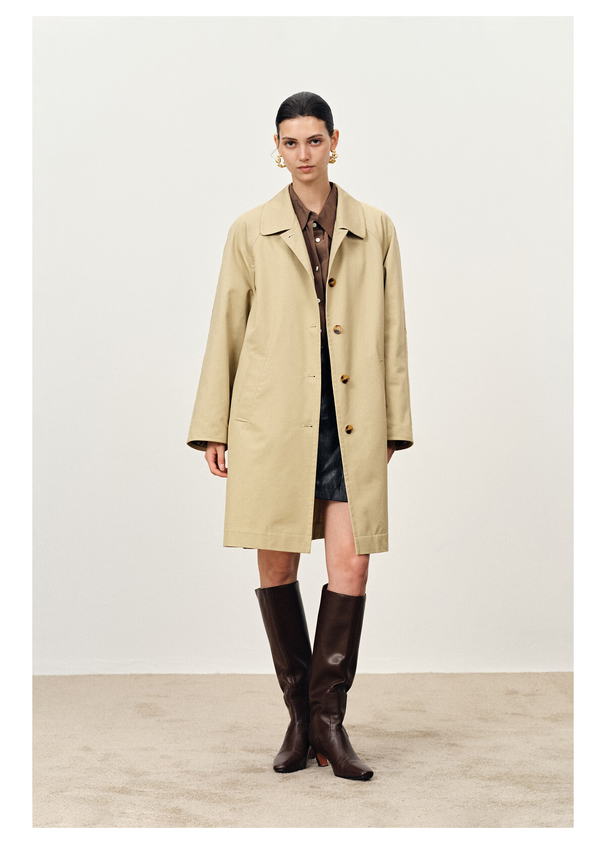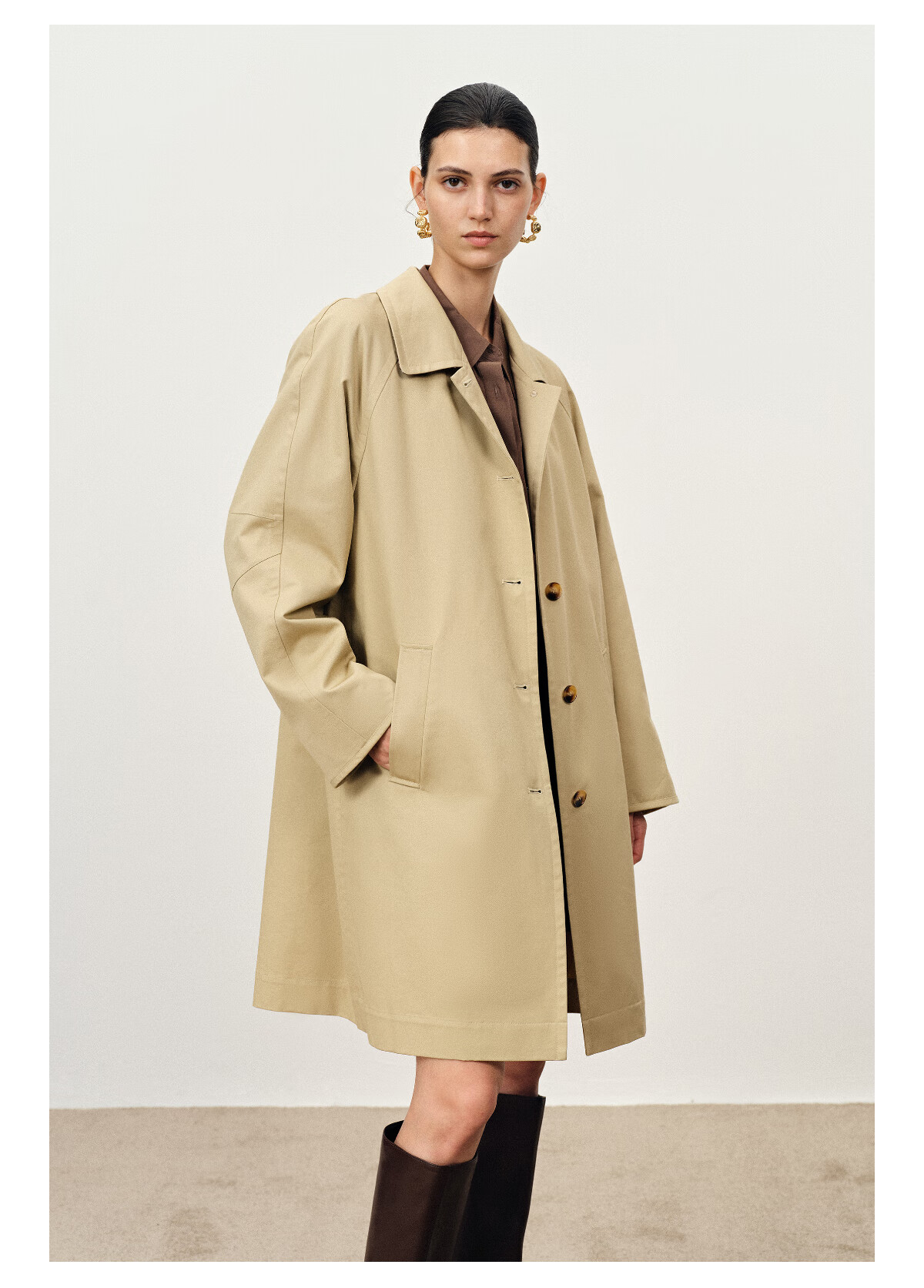 Fabrique light khaki pure cotton lightweight H-shaped mid-length windbreaker light khaki XS