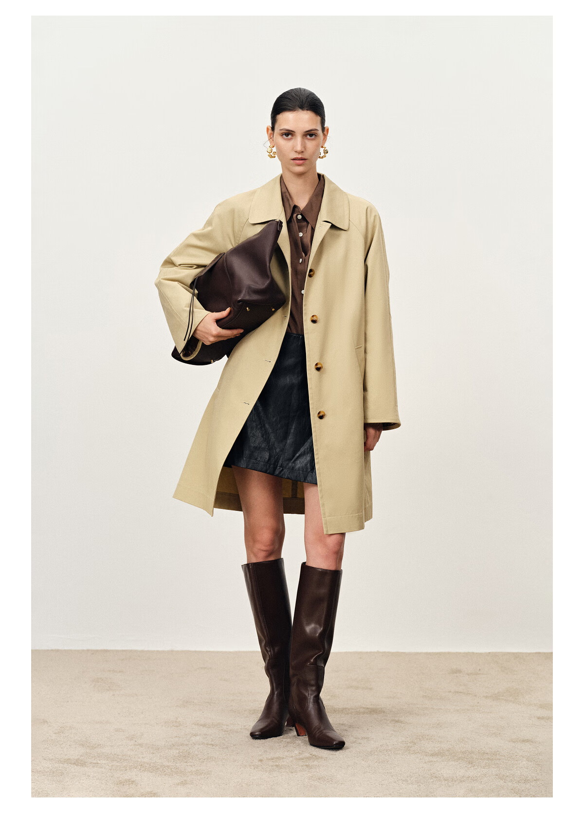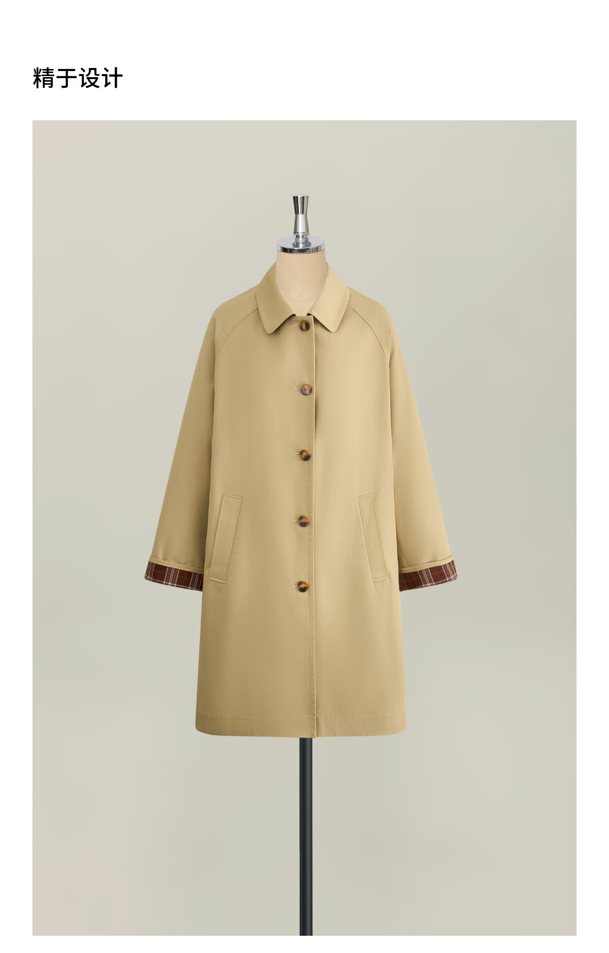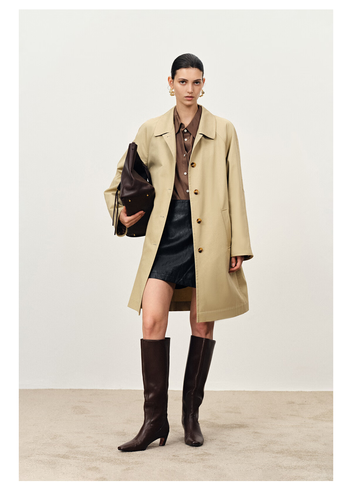 Fabrique light khaki pure cotton lightweight H-shaped mid-length windbreaker light khaki XS