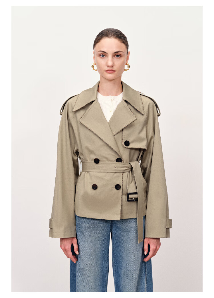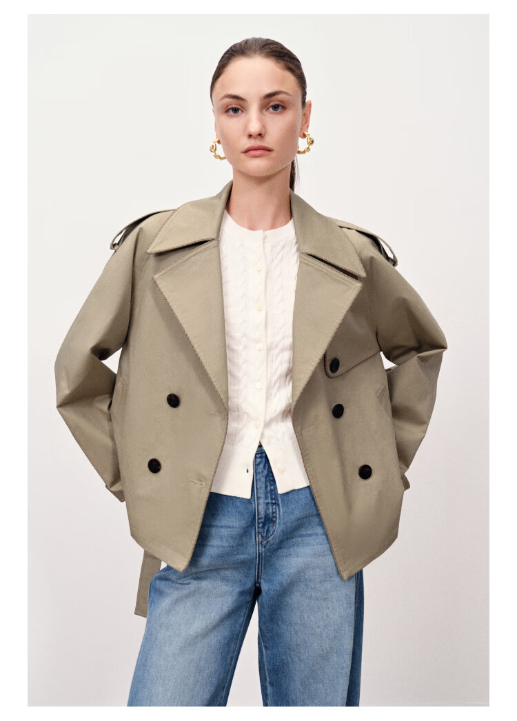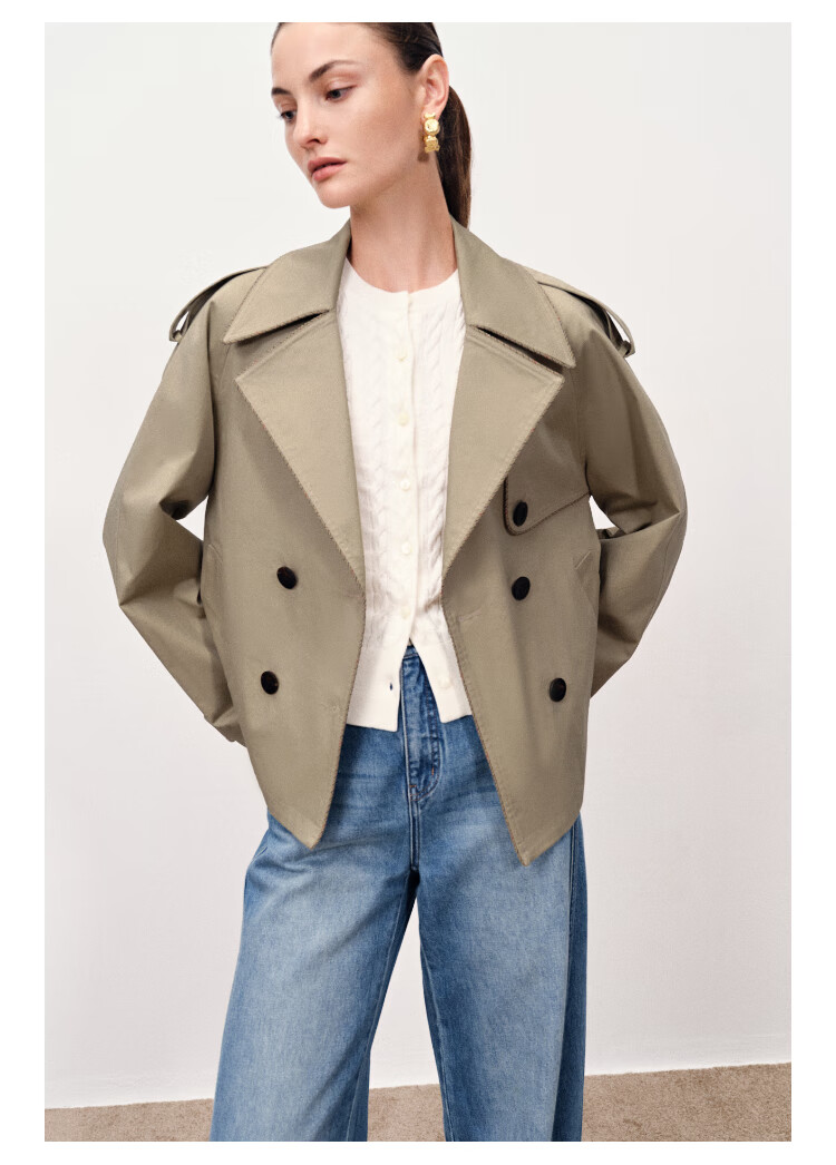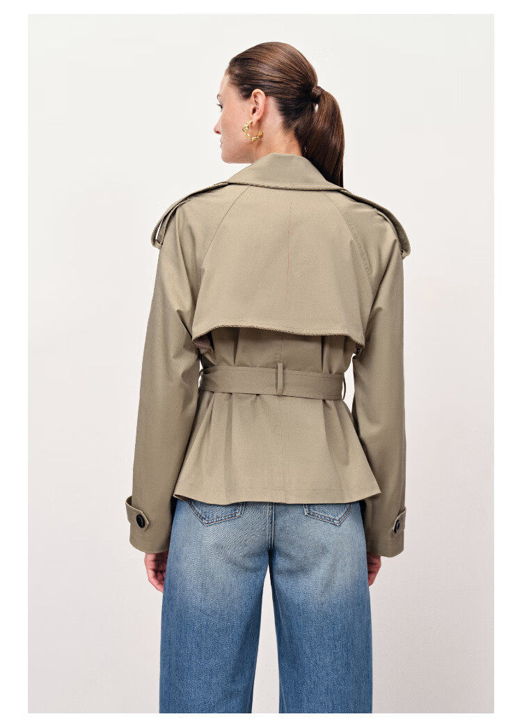 Fabrique wilderness windbreaker khaki twill cotton plaid short coat coat women's autumn moss green XS