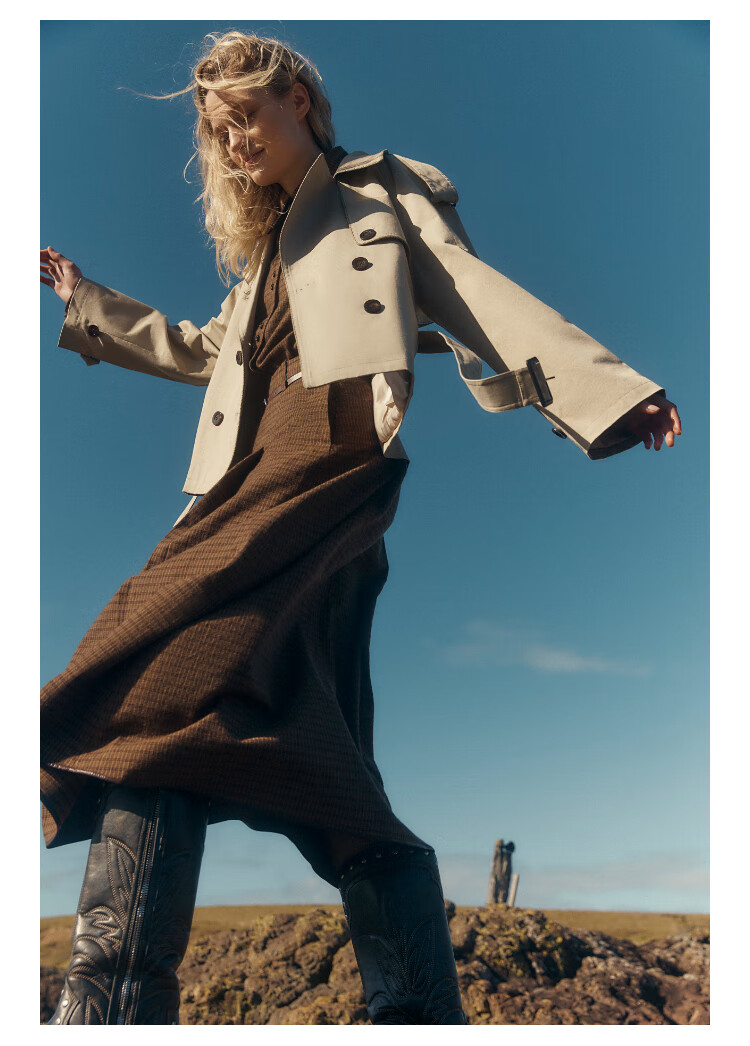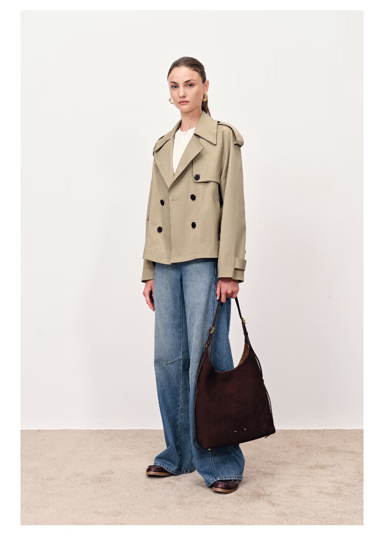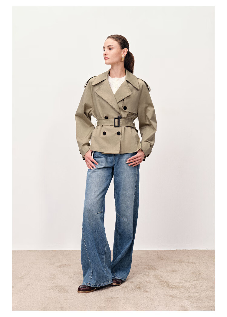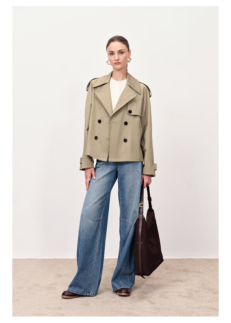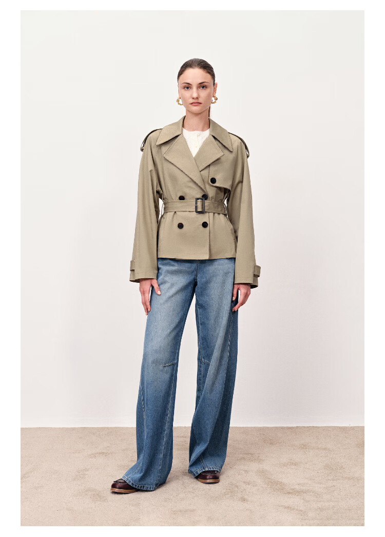 Fabrique wilderness windbreaker khaki twill cotton plaid short coat coat women's autumn moss green XS