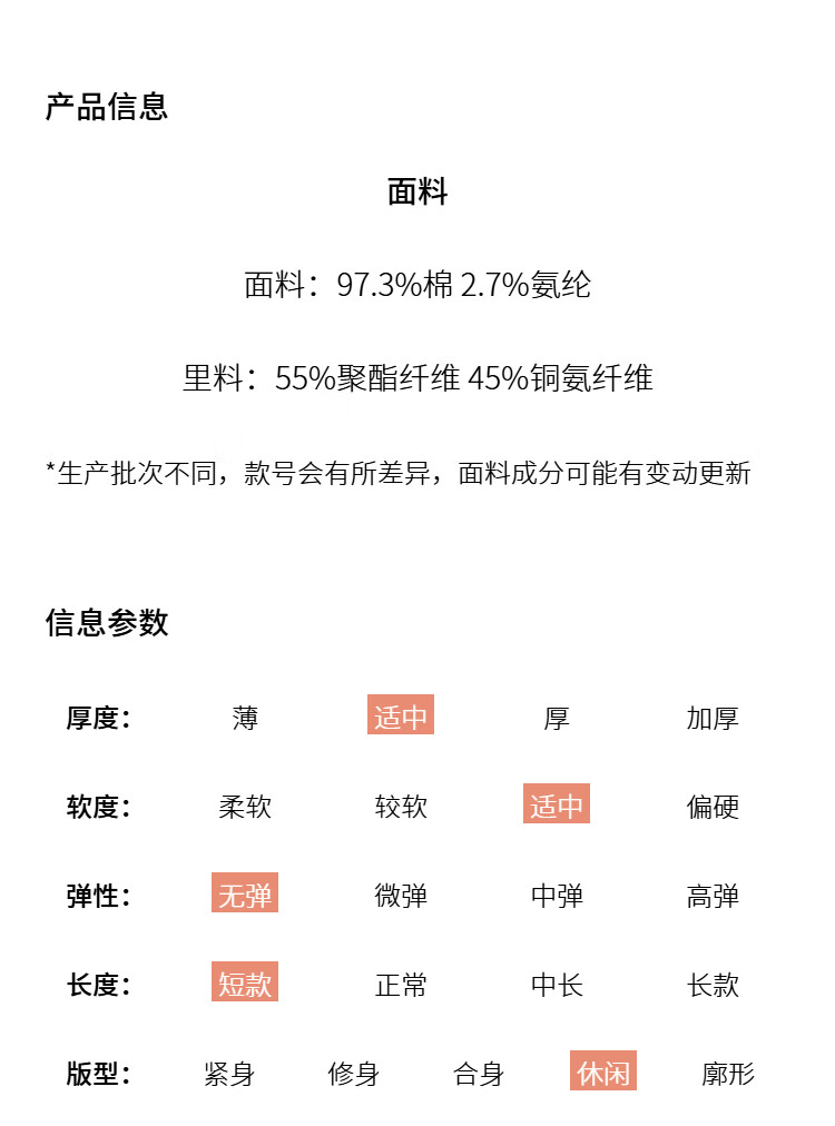 Outseam (cm) 99 cm 101.5 cm 104 cm 106.5 cm 109 cm