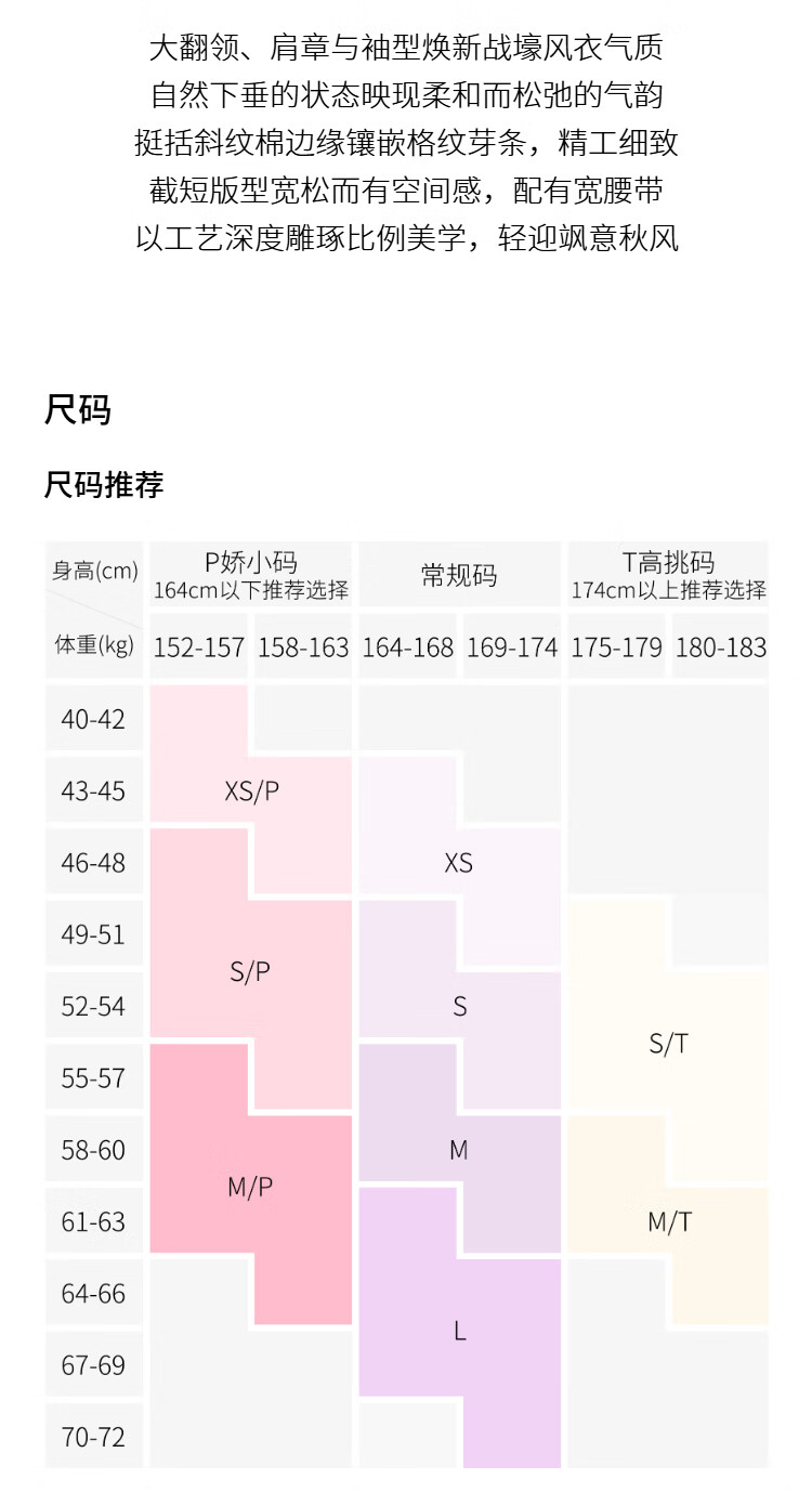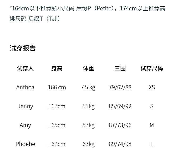 China (cm) 160-165/84-86 165-170 / 88-90 167-172 / 92-96 168-173 / 98-102 170-176 / 106-110