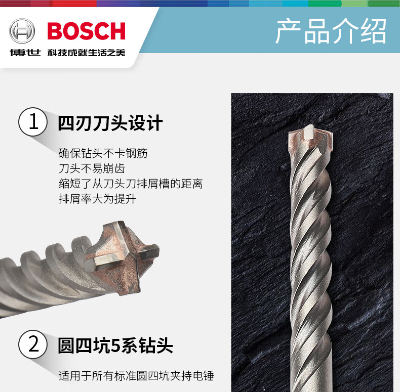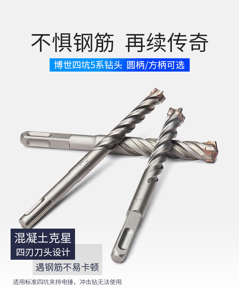 Bosch electric hammer drill bit 5 series four-edged round handle 10-piece set four-pit impact drill bit to drill steel bars and extend through the wall round handle _8x100x160mm_ 10-piece set