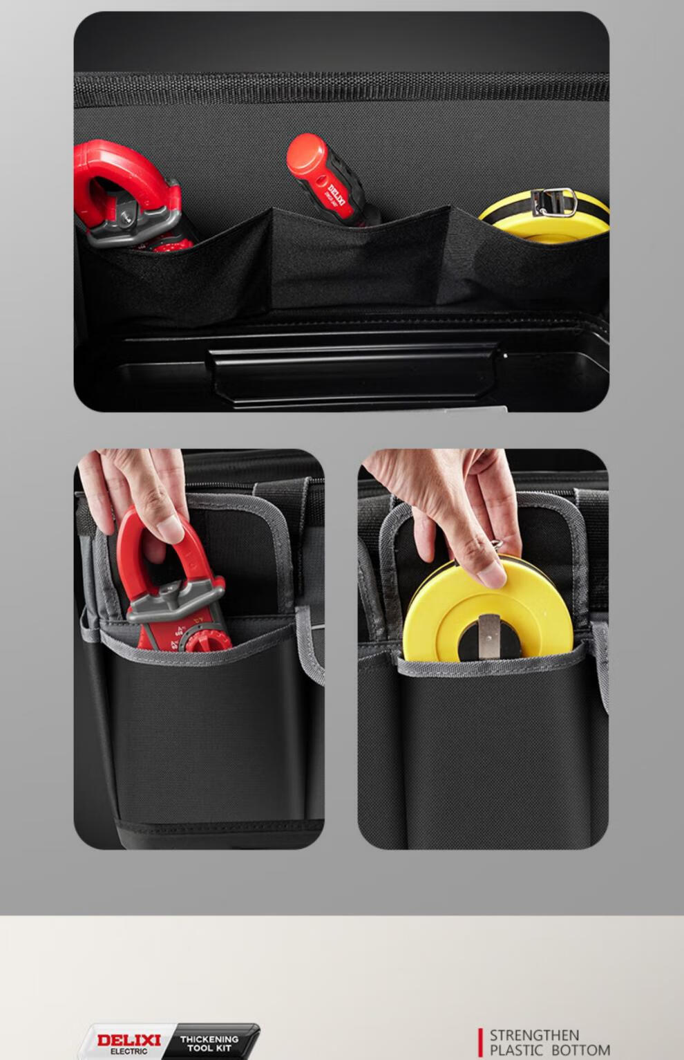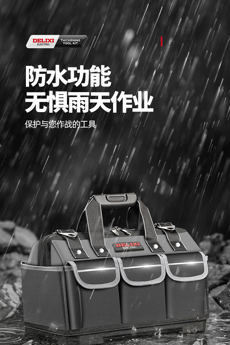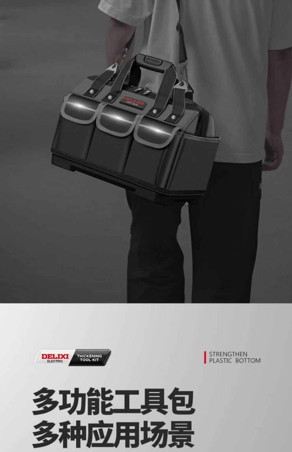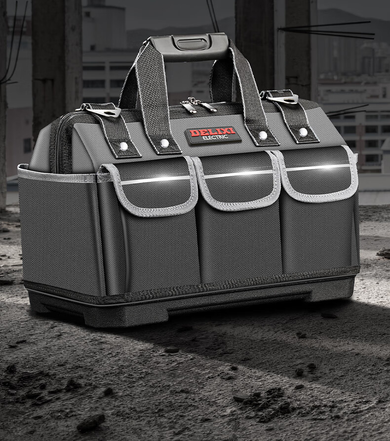 Delixi tool bag multi-functional repair canvas electrician special wear-resistant installation portable thickened tool bag for men 14-inch classic model upgraded double-layer thickened fabric A