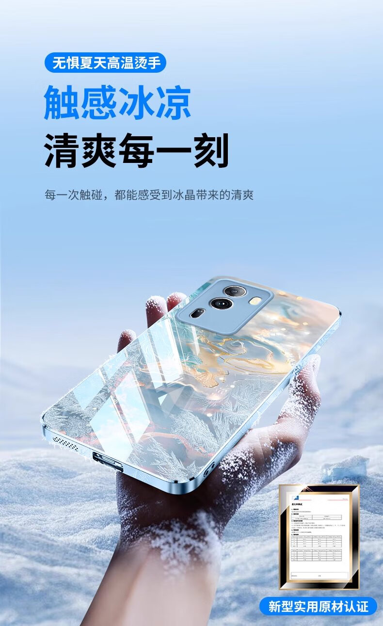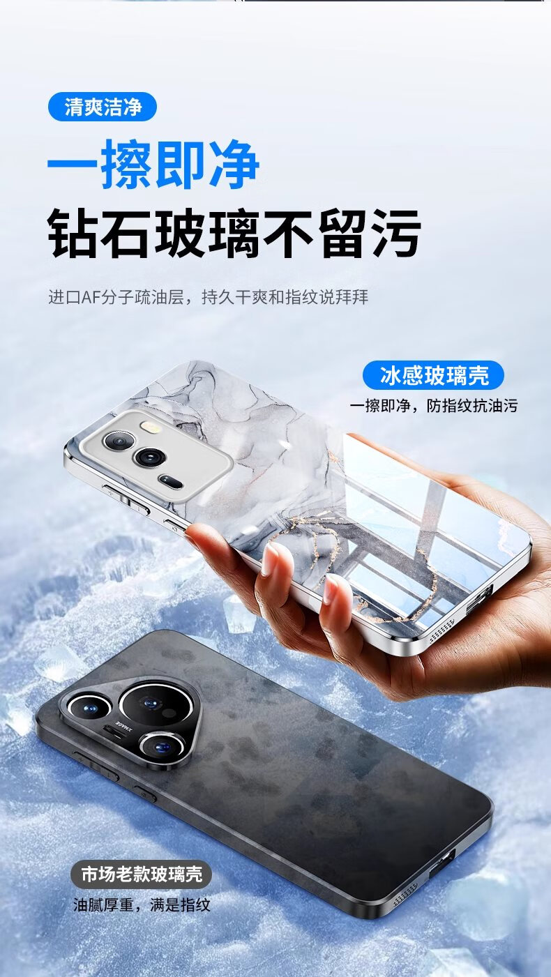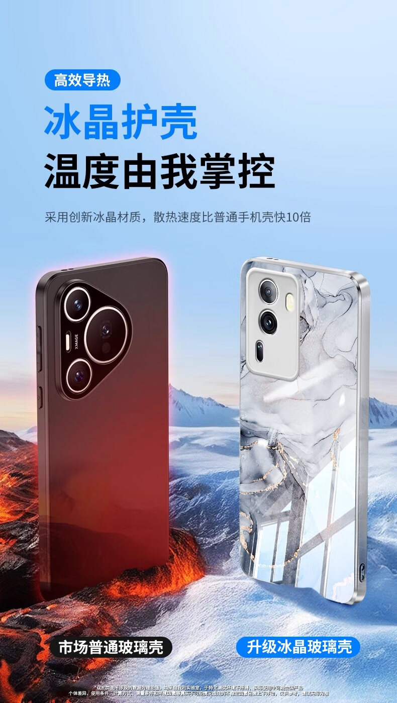 Pintop opporeno11 mobile phone case reno11pro glass new protective cover simple and thin heat dissipation all-inclusive straight edge anti-fall hard shell advanced creative men and women OPPOReno11Pro Yuanfeng blue-ink gilt metal paint glass case