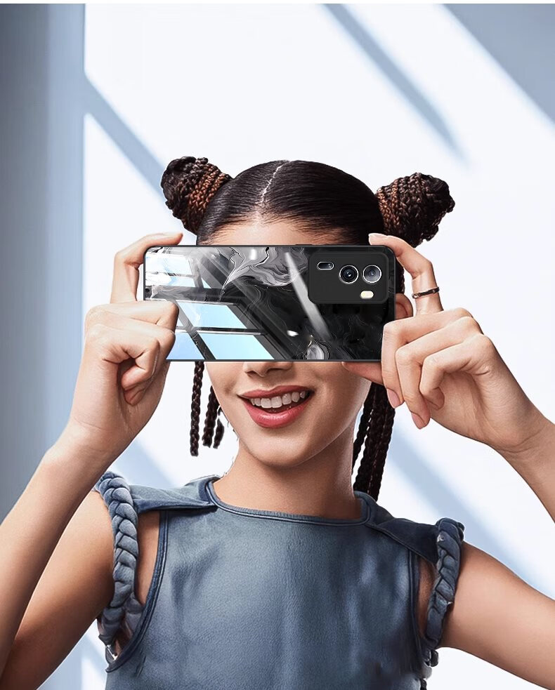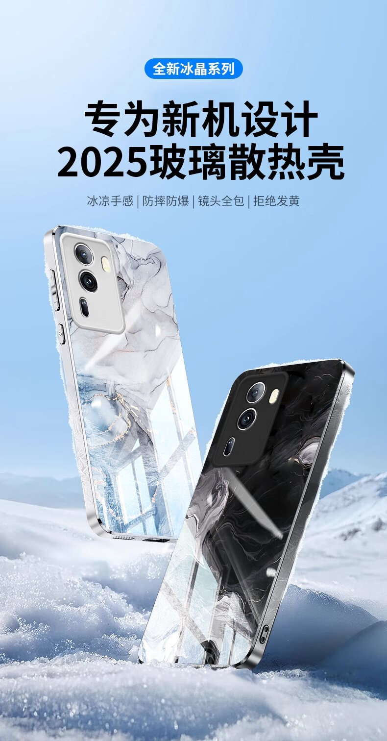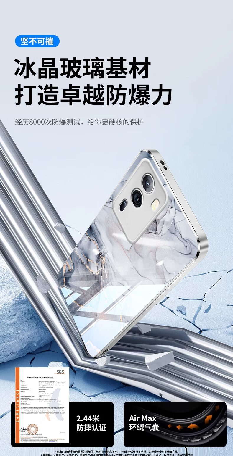 Pintop opporeno11 mobile phone case reno11pro glass new protective cover simple and thin heat dissipation all-inclusive straight edge anti-fall hard shell advanced creative men and women OPPOReno11Pro Yuanfeng blue-ink gilt metal paint glass case