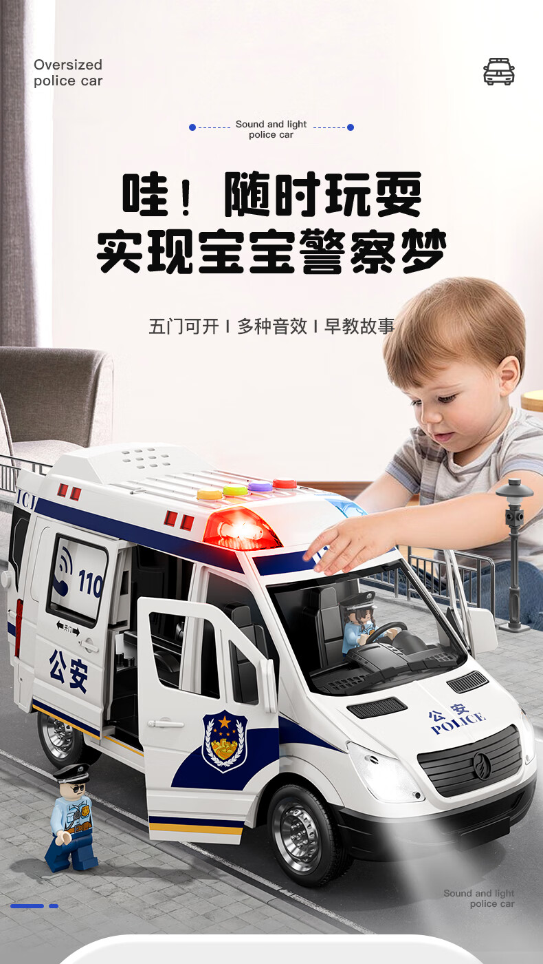 110 children's off-road vehicle police car toy alloy simulation oversized police car model boy 3 years old