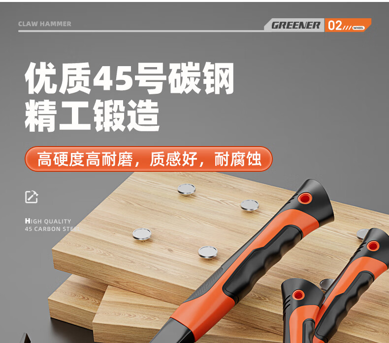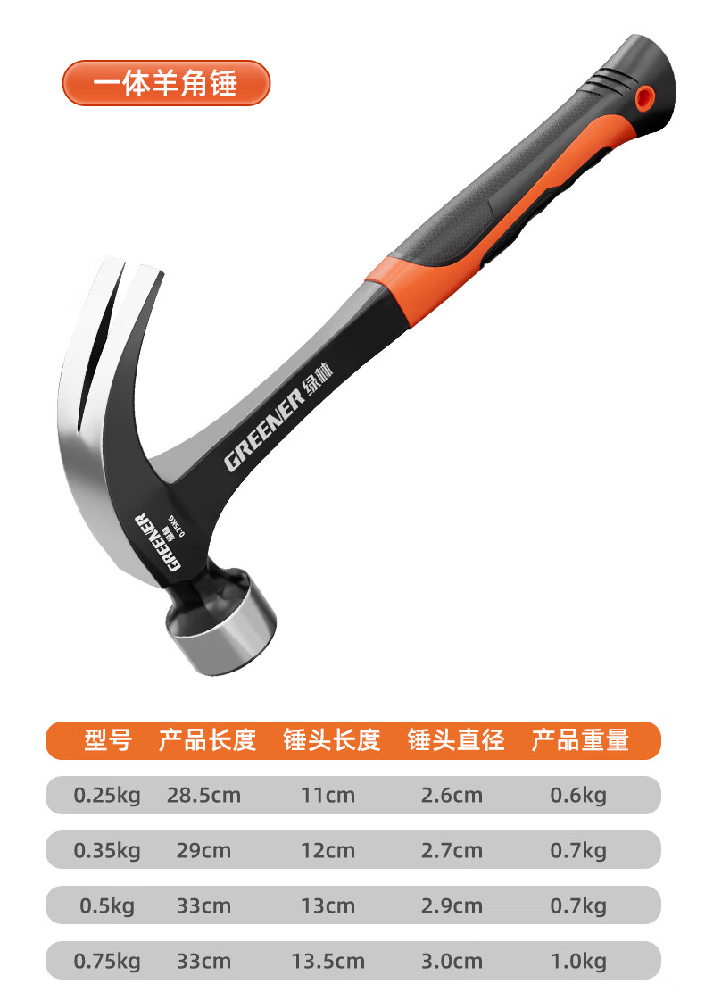 Green forest claw hammer one-piece hammer hammer tool hammer mini household small hammer woodworking special hammer aluminum sleeve anti-smash round head corner 8 taels (pockmarked plus