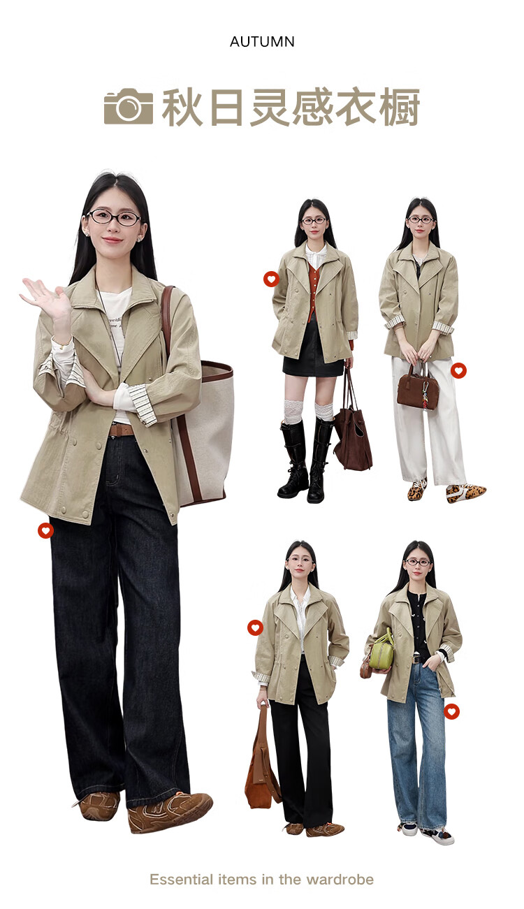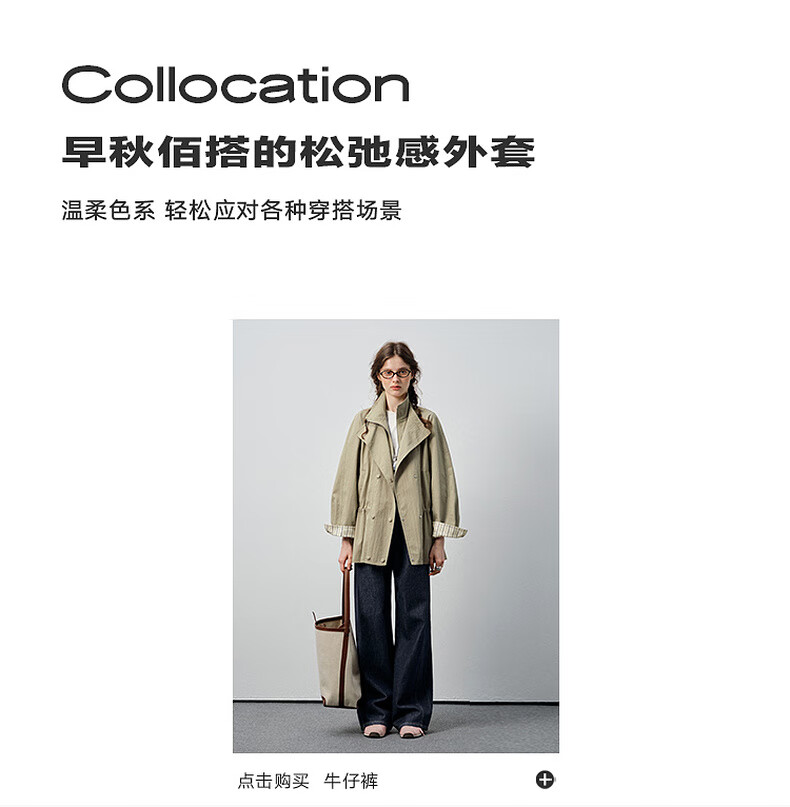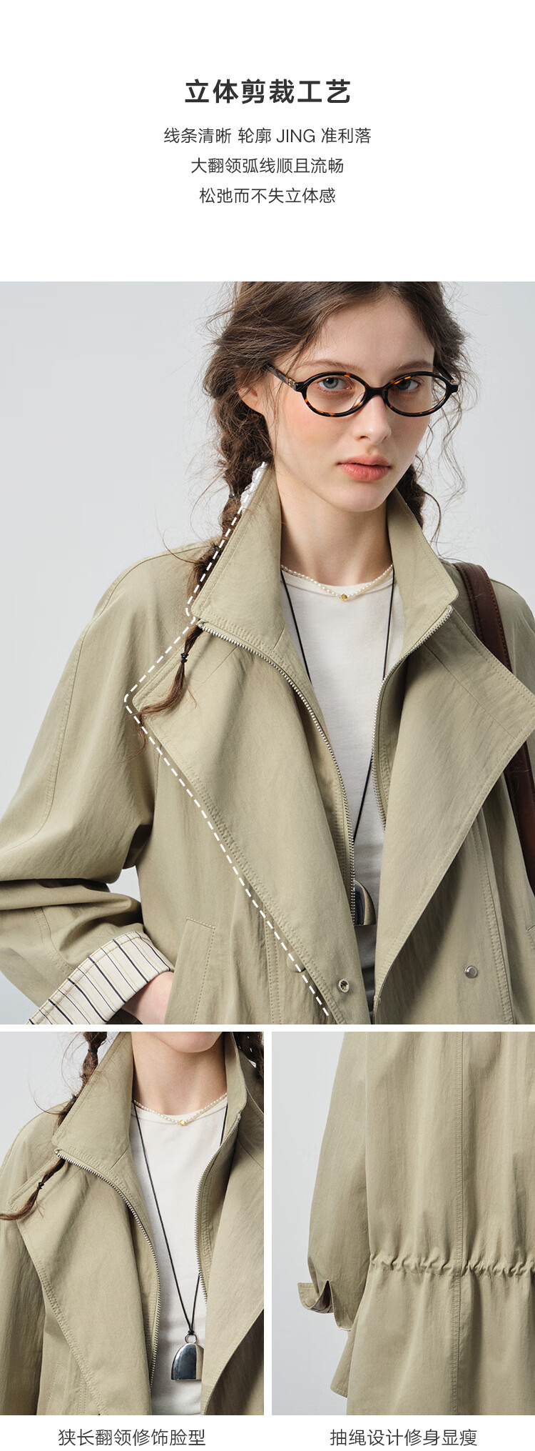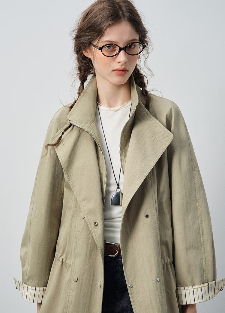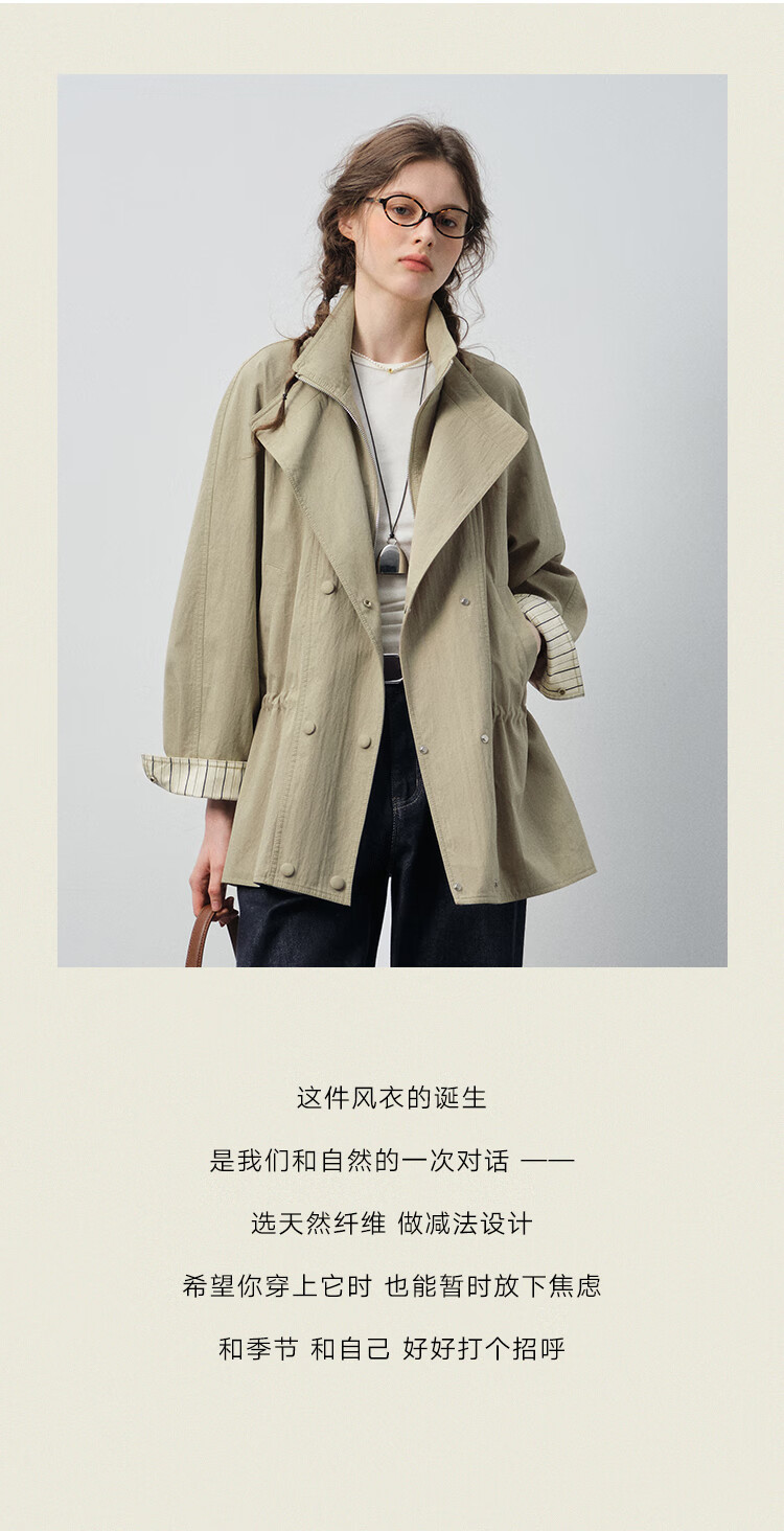 VEGA CHANG windbreaker for women petite 2026 spring new style waisted short cuffs striped splicing loose jacket fog khaki S