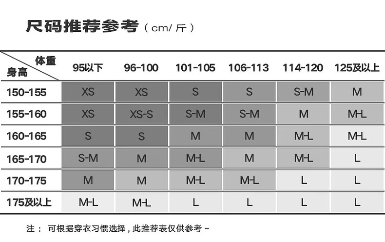 China (cm) 160-165/84-86 165-170 / 88-90 167-172 / 92-96 168-173 / 98-102 170-176 / 106-110