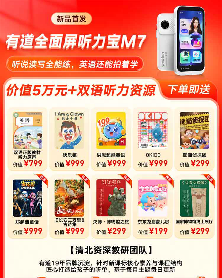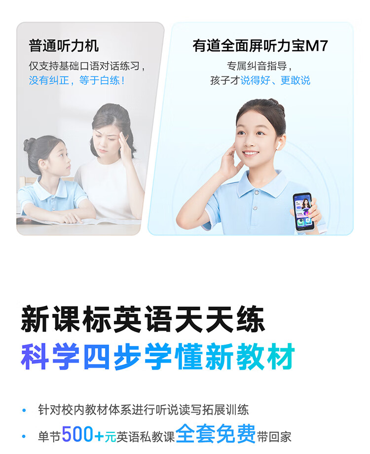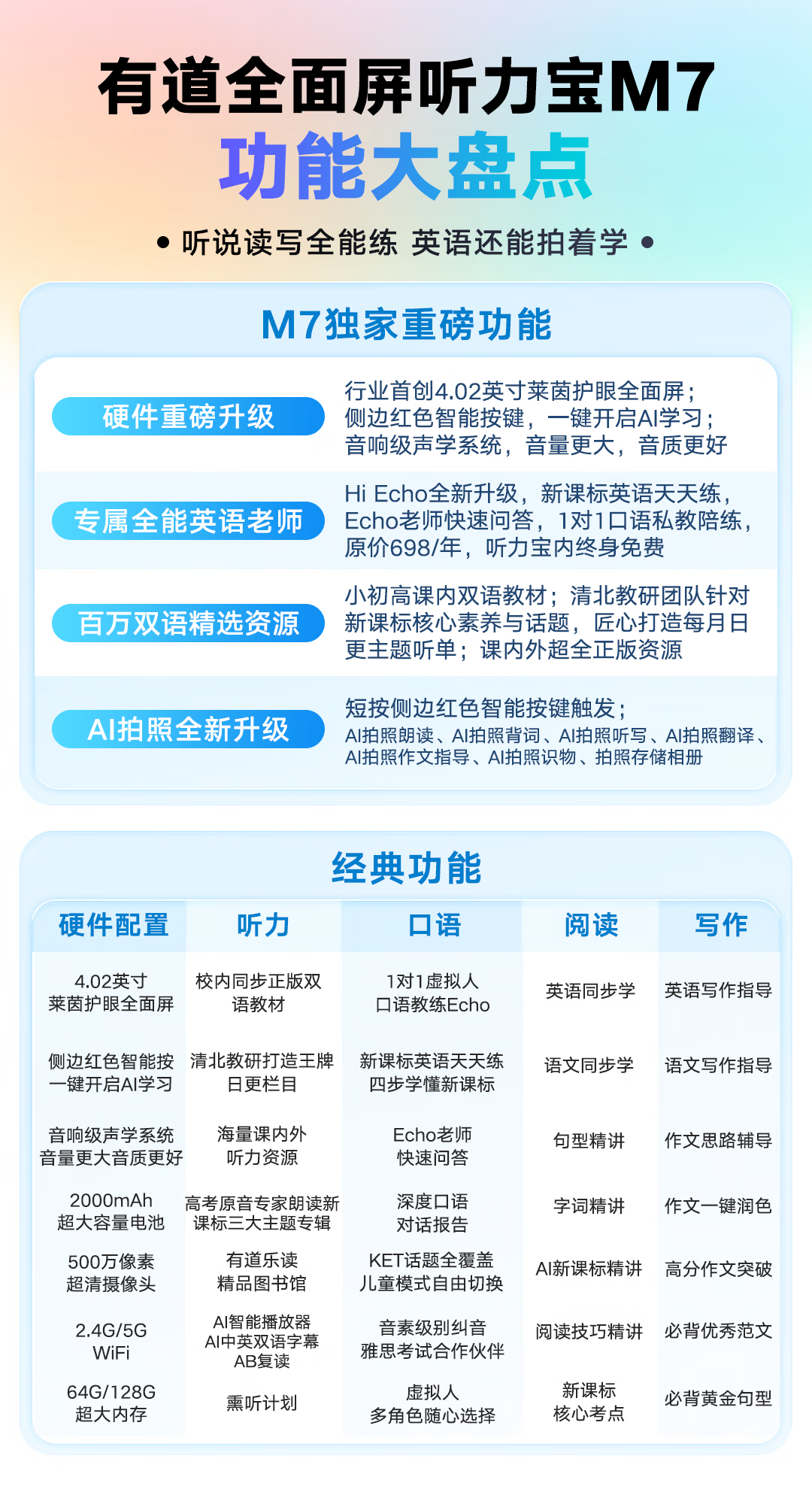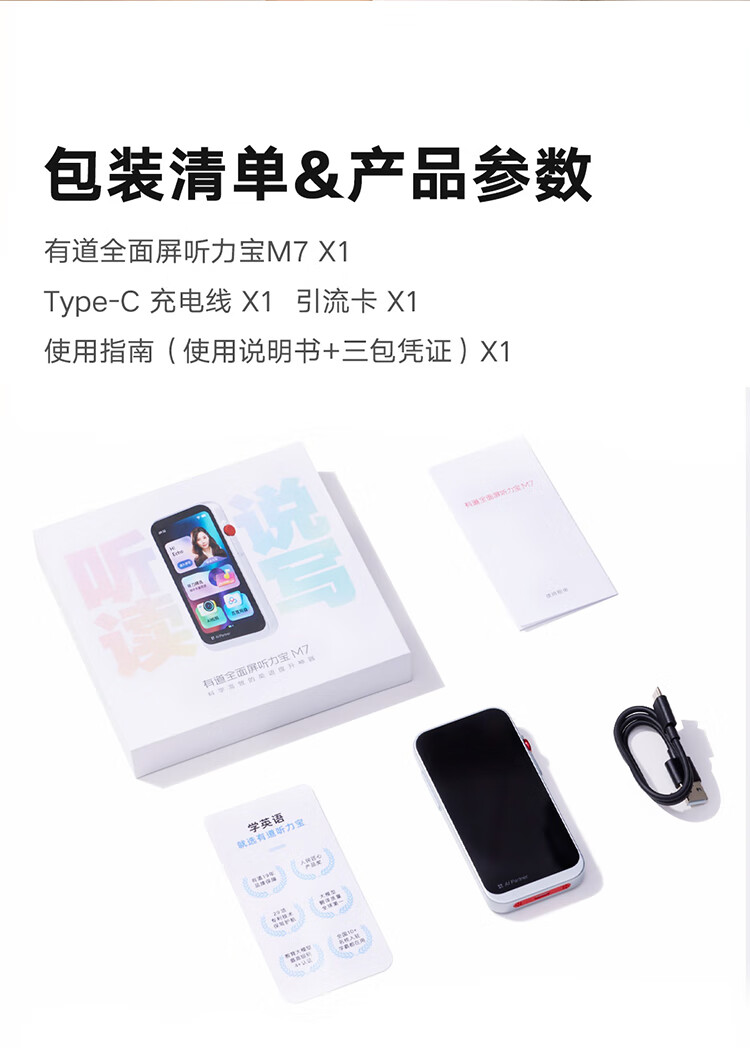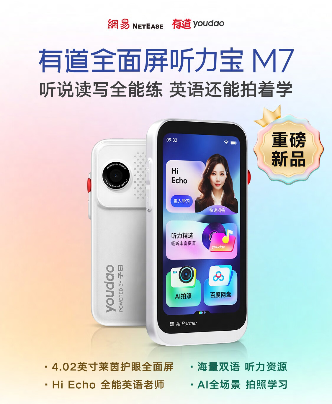 Youdao full-screen hearing aid M7 15-day trial repeater English treasure ancient poetry English listening walkman ear-sharpening learning and improvement artifact pocket learning word machine memory upgrade Youdao full-screen hearing aid M7128G