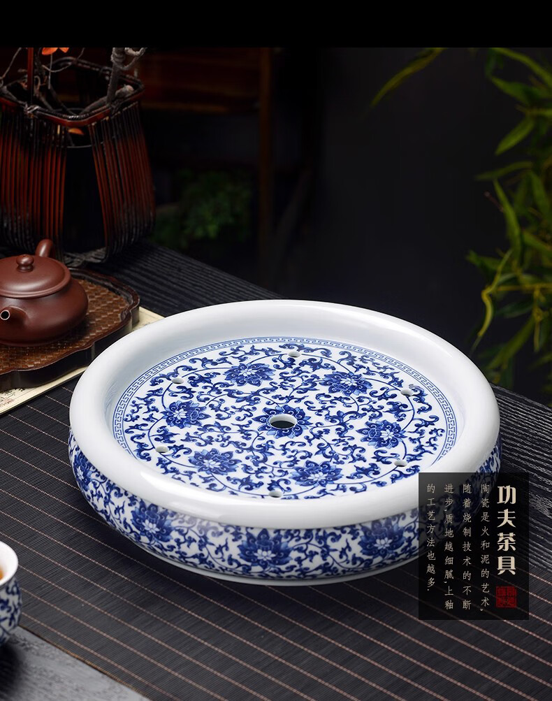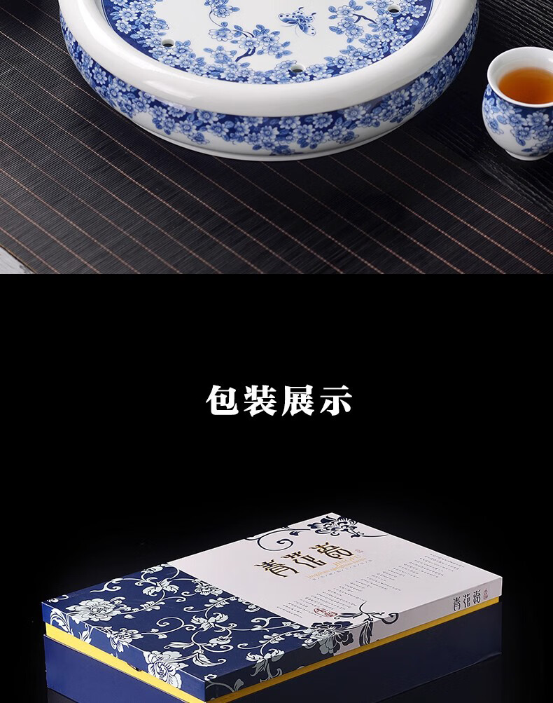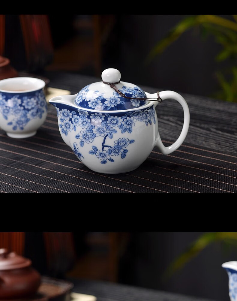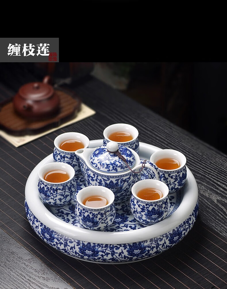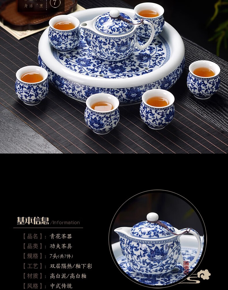 Close-up blue and white porcelain tea set Jingdezhen ceramic complete set household double-layer anti-scald tea cup living room office tea tray Panzhilian