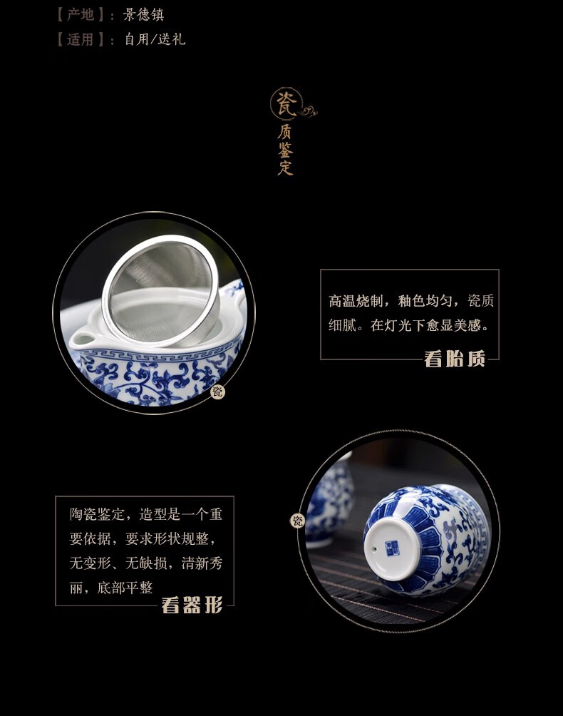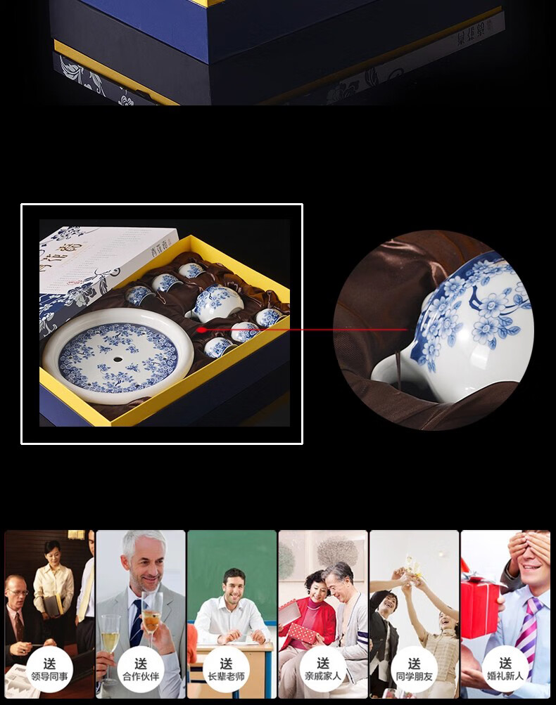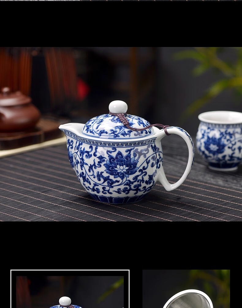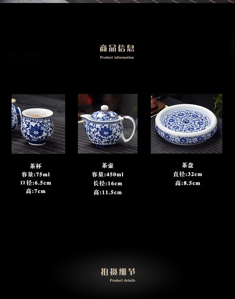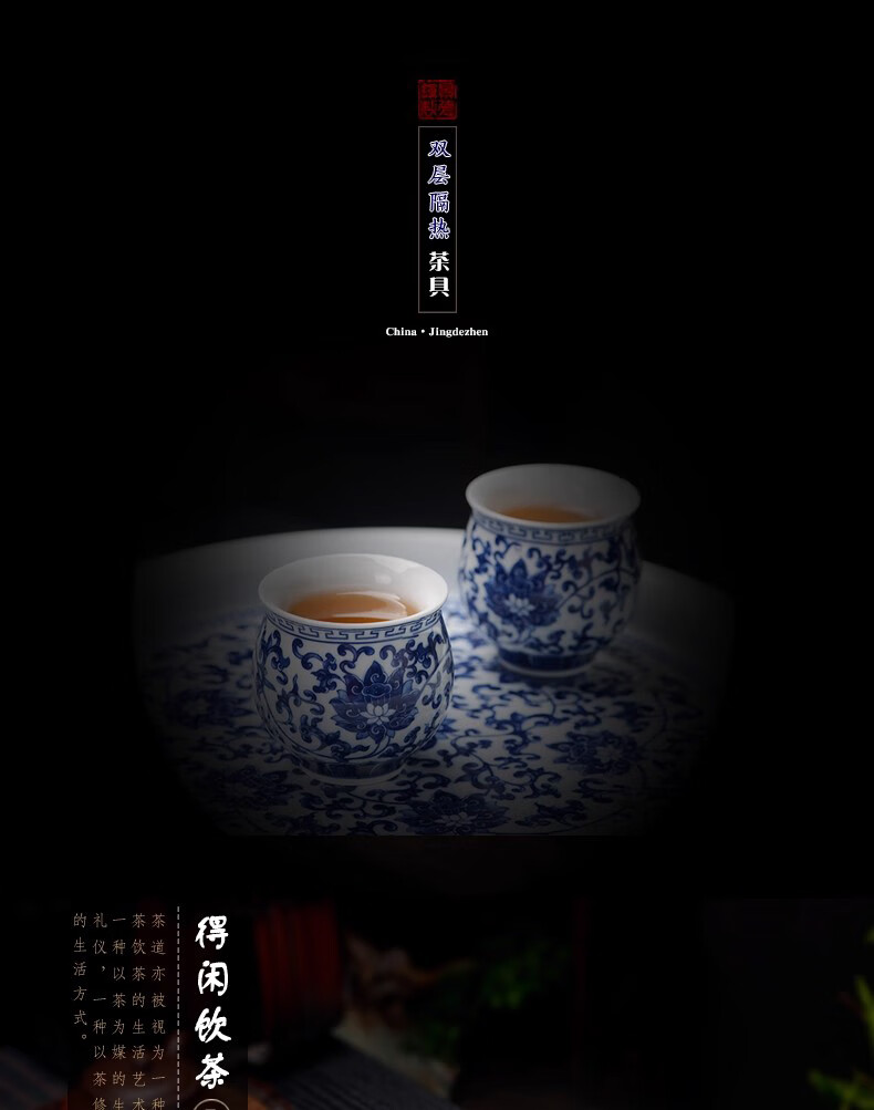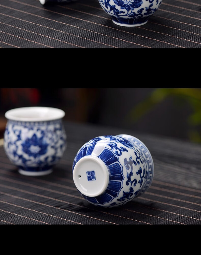 Close-up blue and white porcelain tea set Jingdezhen ceramic complete set household double-layer anti-scald tea cup living room office tea tray Panzhilian