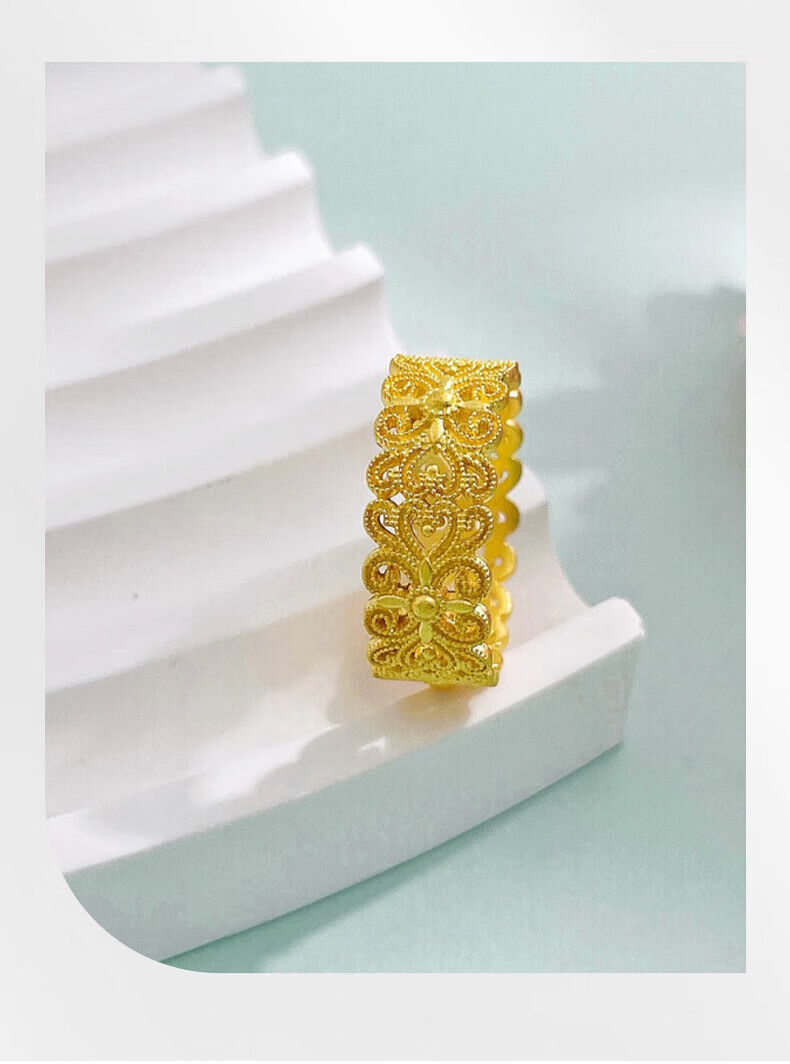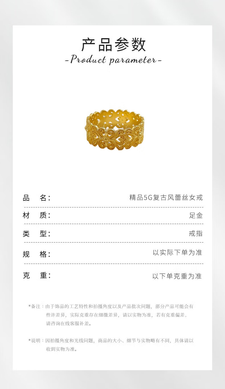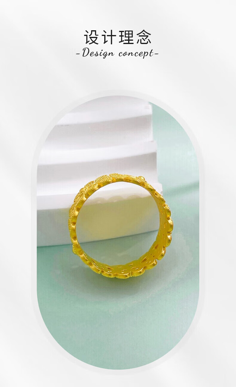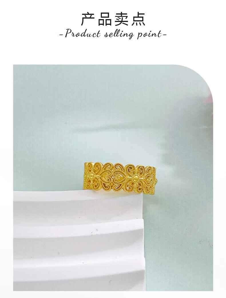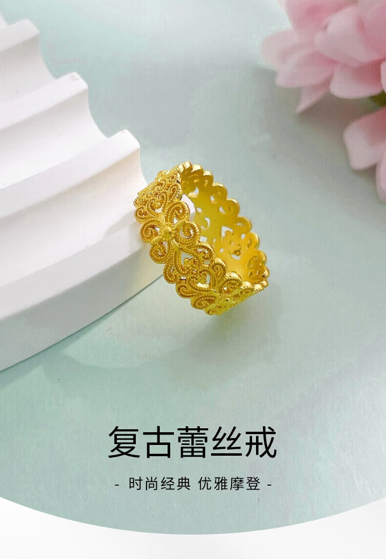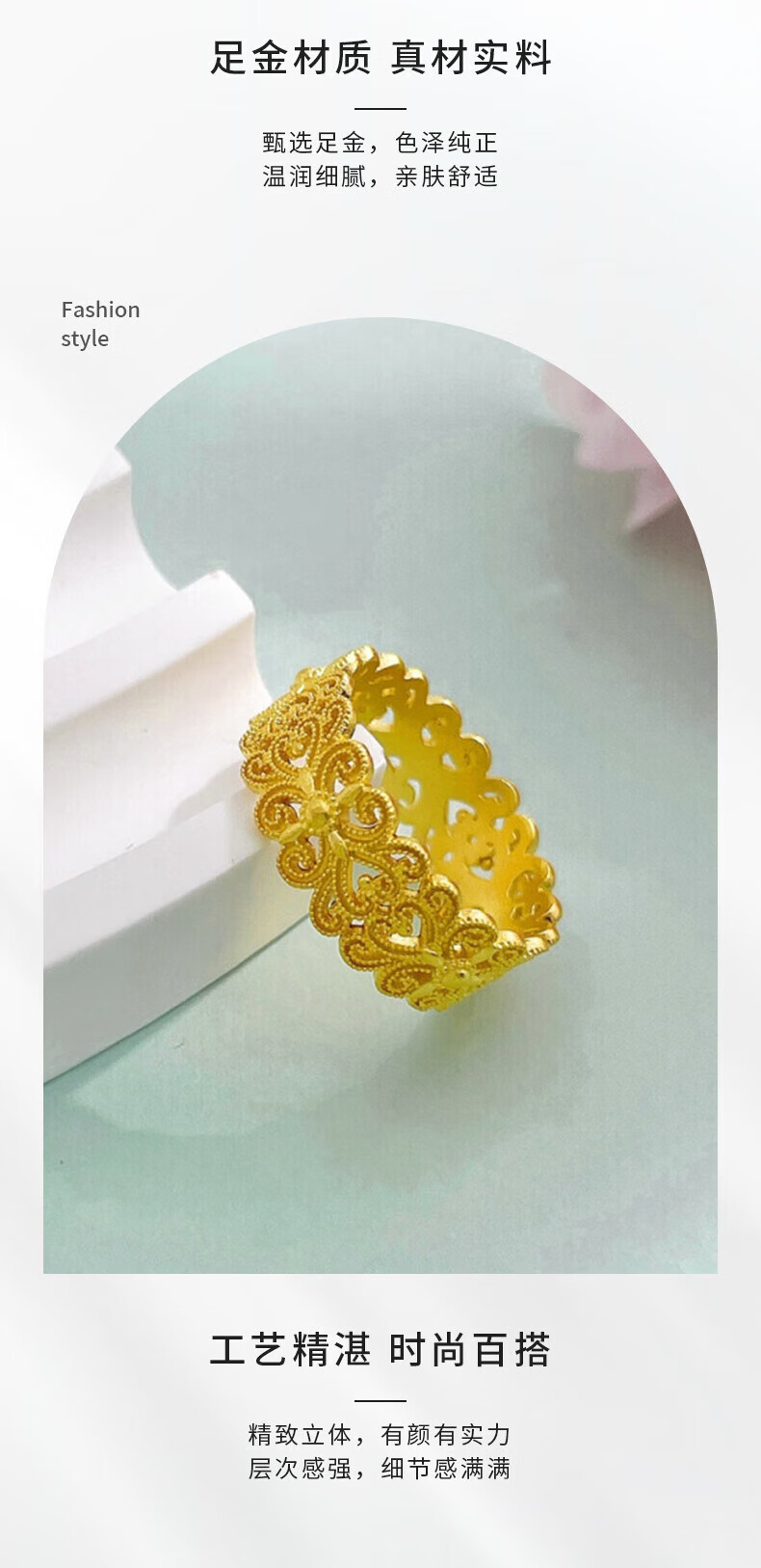 Lao Fengxiang gold ring hollow retro style lace ring filigree ring as a birthday gift for girlfriend and wife, about 4.86g