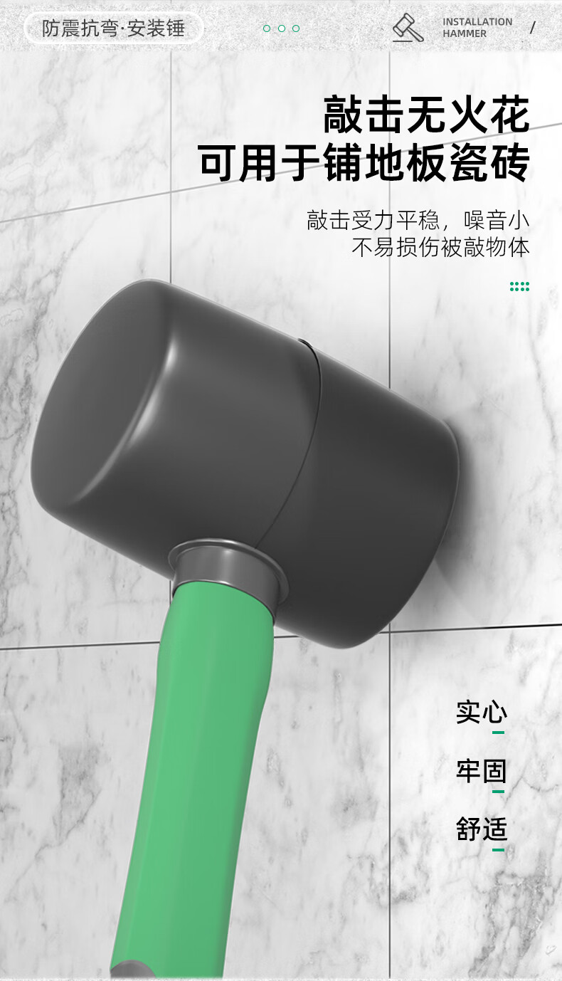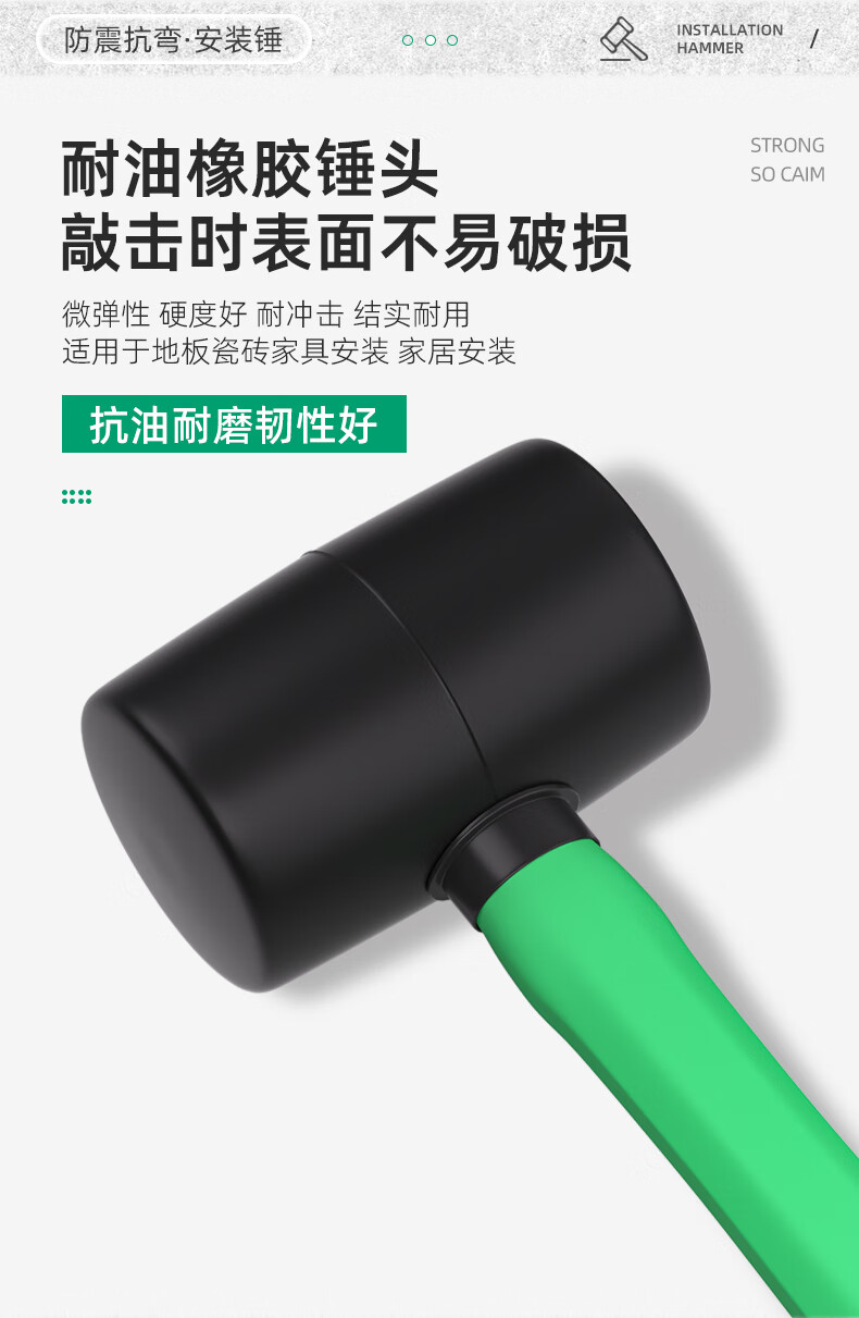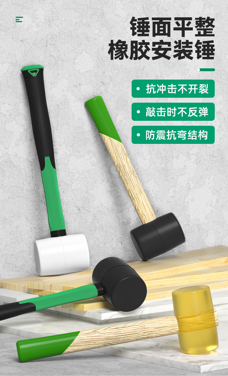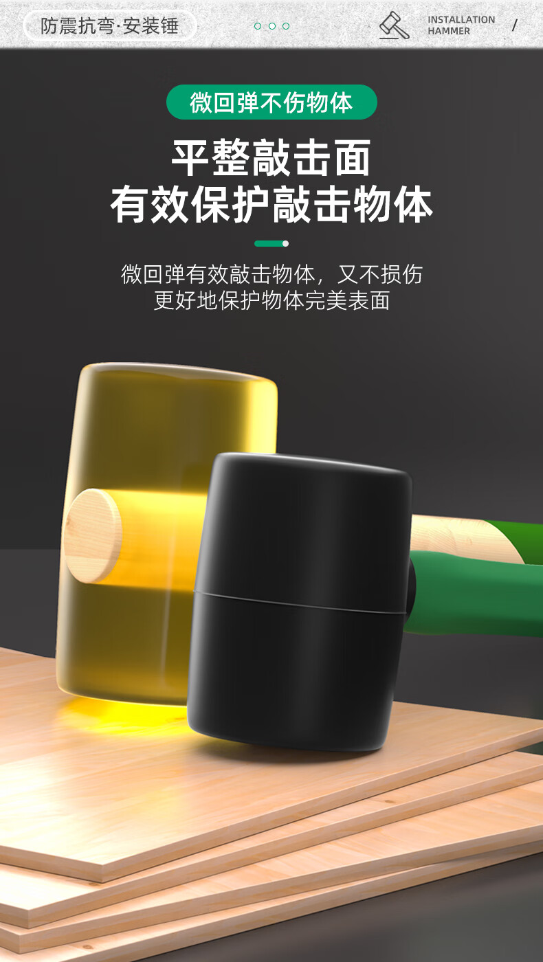 Tianzhuo Hardware Rubber Hammer Installation Hammer Large Rubber Hammer Nylon Floor Tile Installation Hammer Solid Hammer Head Rubber Hammer 1000g Plastic-coated Rubber Hammer Black Large (0.93KG)