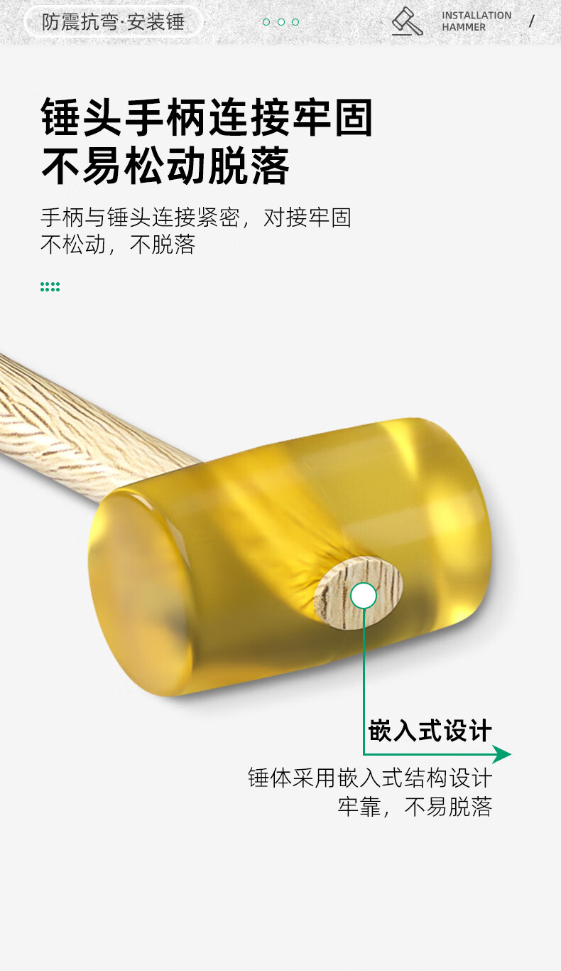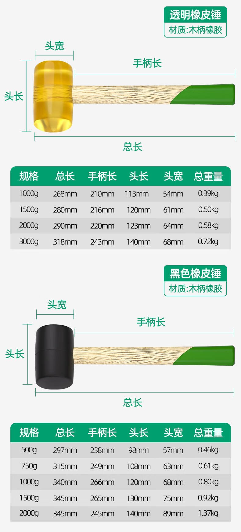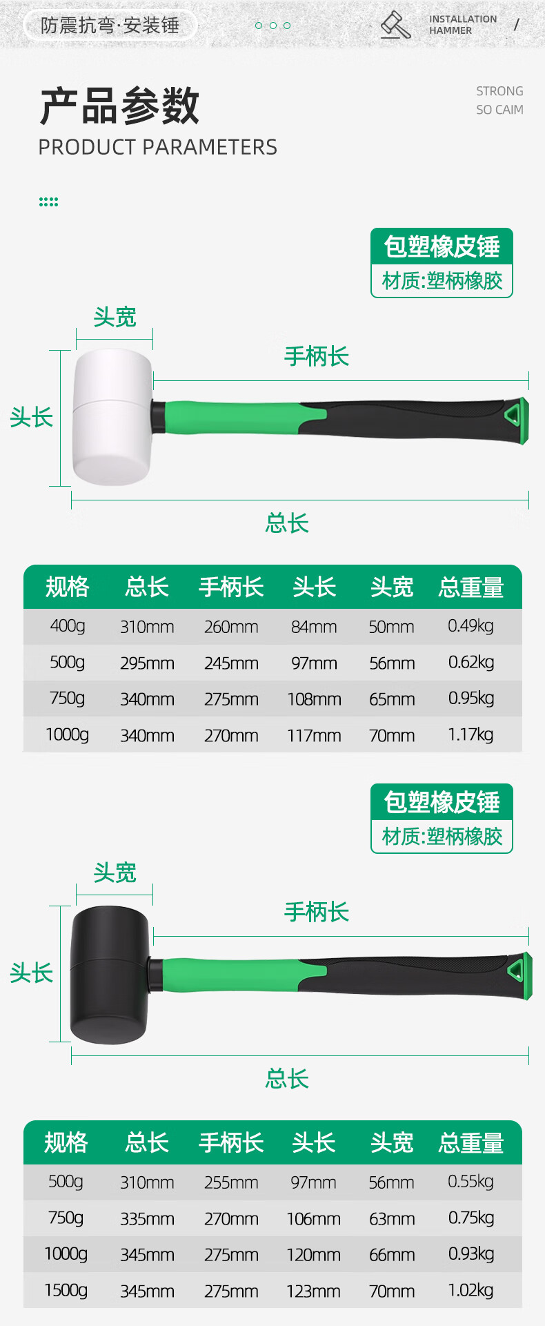 Tianzhuo Hardware Rubber Hammer Installation Hammer Large Rubber Hammer Nylon Floor Tile Installation Hammer Solid Hammer Head Rubber Hammer 1000g Plastic-coated Rubber Hammer Black Large (0.93KG)