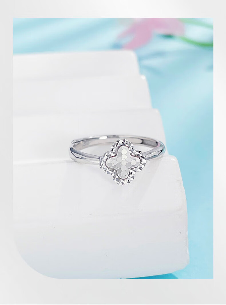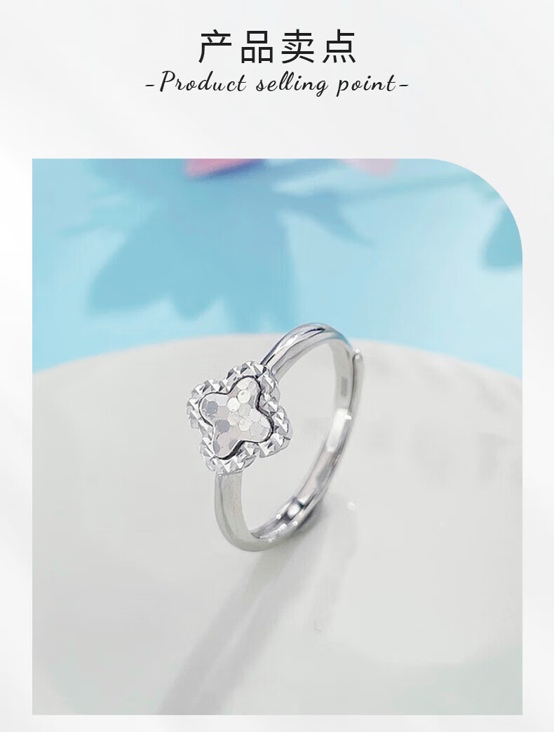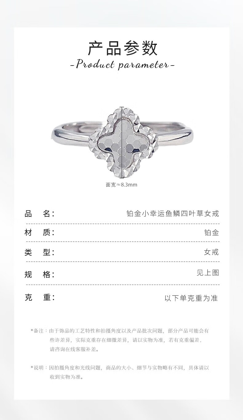 Laomiao platinum ring pt950 four-leaf clover platinum proposal ring ladies model birthday Chinese Valentine's Day gift for girlfriend and wife about 3.86g live ring adjustable