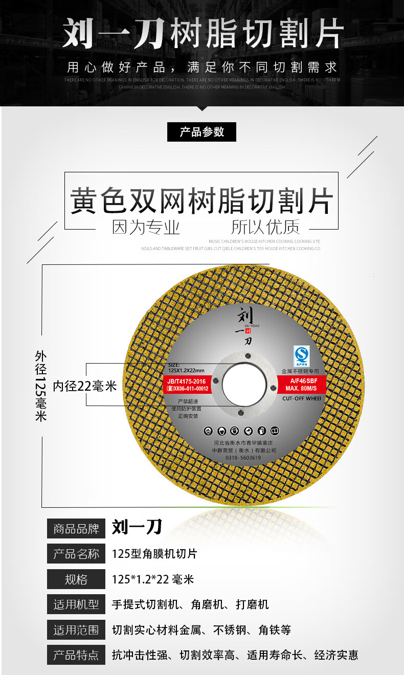 Yeyu cutting blade 125 type angle grinder cutting blade metal stainless steel grinding wheel blade double mesh grinding blade grinder saw blade 125 type cutting blade yellow 7 pieces