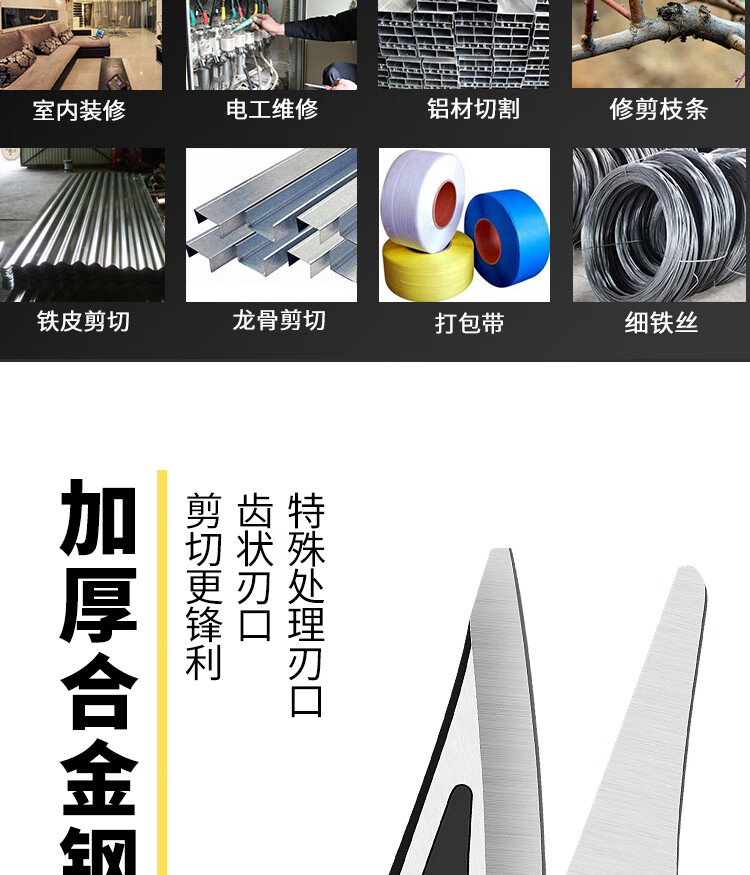 Complete industrial-grade iron scissors, manganese steel keel scissors, aircraft aluminum special stainless steel strong wire scissors, multi-functional powerful iron scissors, quality assurance