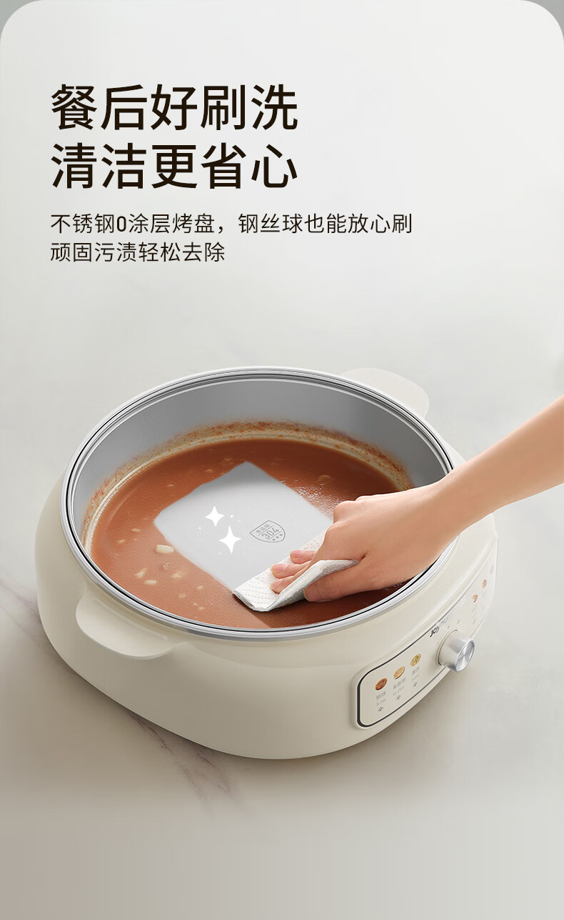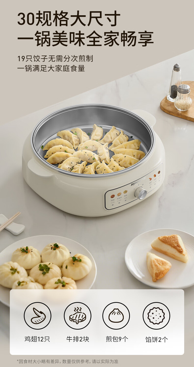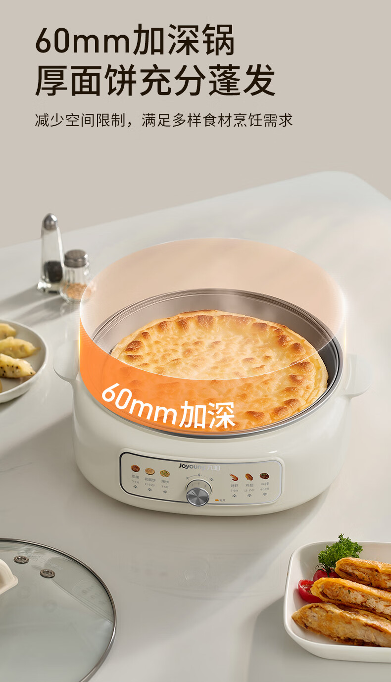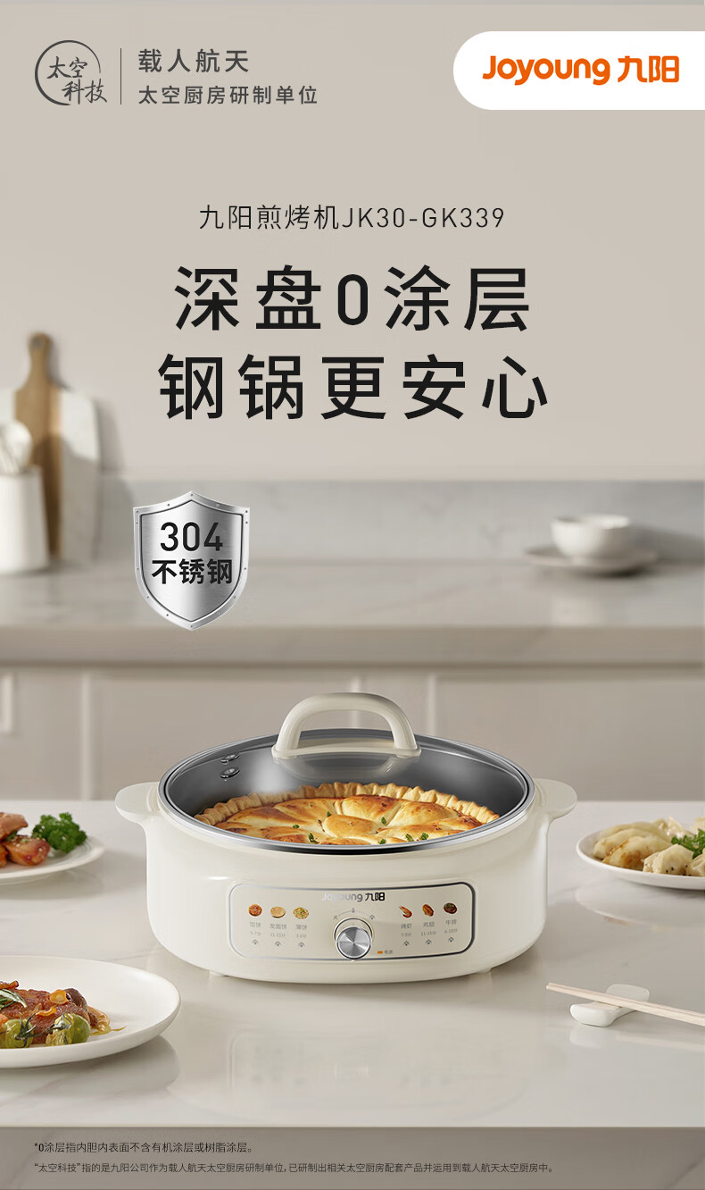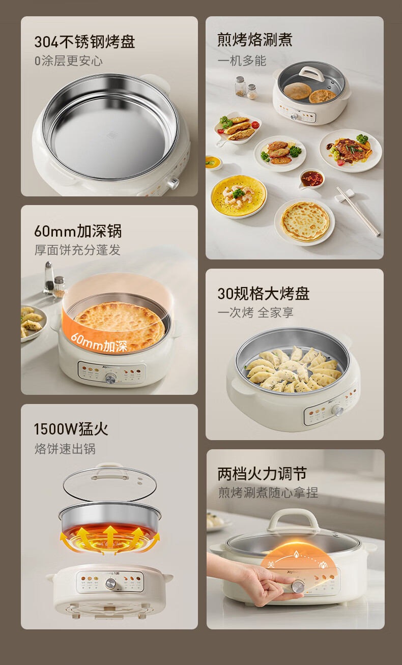 Joyoung Electric Pancake Pan Household Electric Hot Pot 304 Stainless Steel 0-Coating Multifunctional Pancake Pan Sandwich Machine Frying, Roasting, and Cooking All-in-one Electric Wok Barbecue Pot Wok 30cm Large Baking Pan | 60mm Deep | JK30-GK339