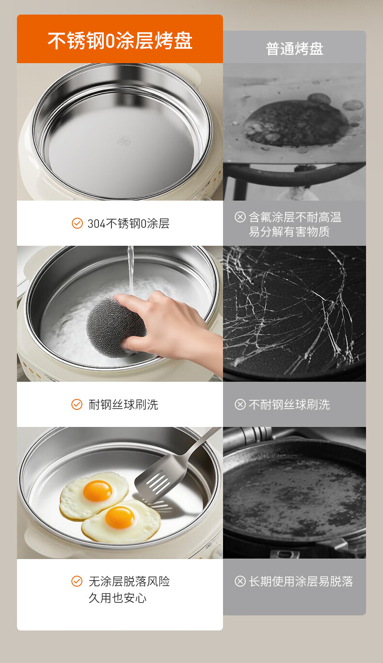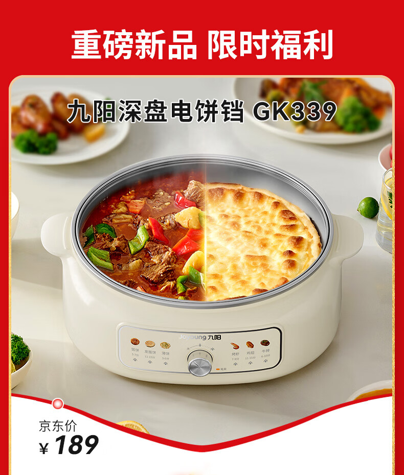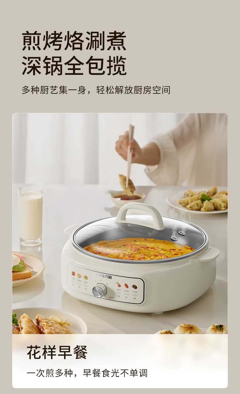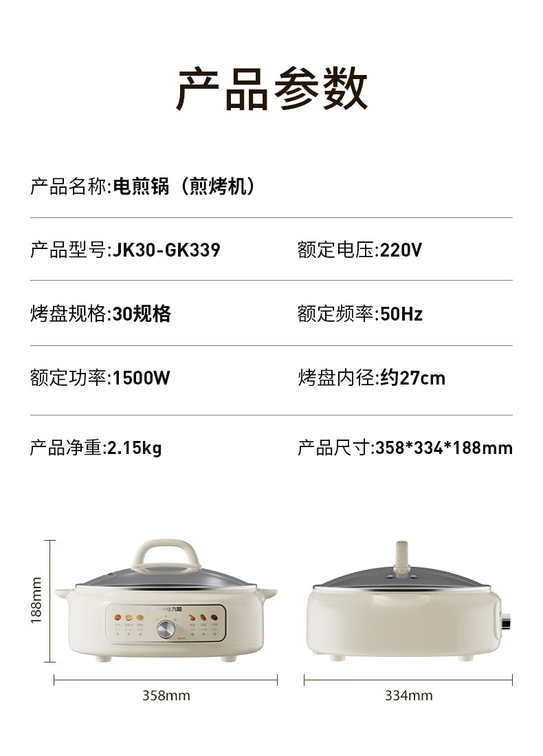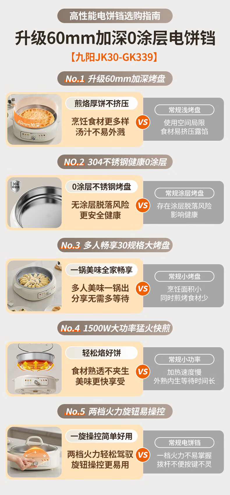 Joyoung Electric Pancake Pan Household Electric Hot Pot 304 Stainless Steel 0-Coating Multifunctional Pancake Pan Sandwich Machine Frying, Roasting, and Cooking All-in-one Electric Wok Barbecue Pot Wok 30cm Large Baking Pan | 60mm Deep | JK30-GK339