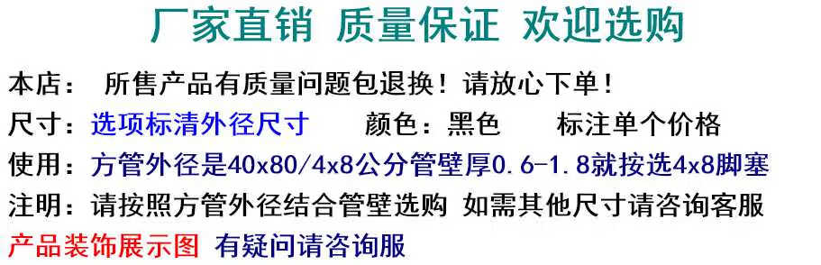 40*80/4x8 cm square tube cap stainless steel plastic plug inner plug sealing plug rectangular waterproof cover foot pad