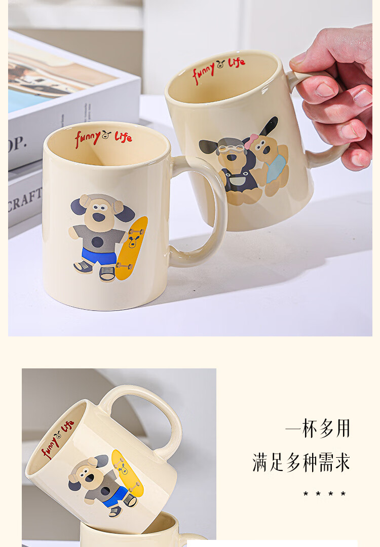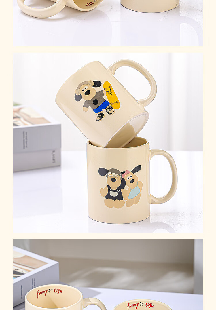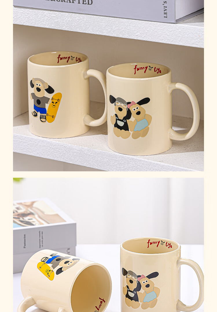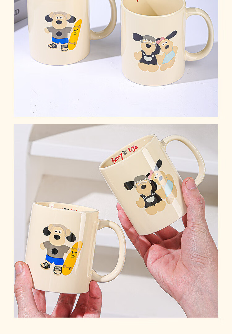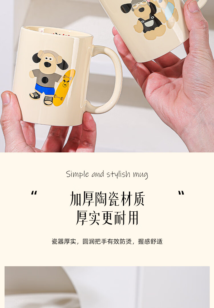 Cute cartoon high-looking ceramic cat mug with lid, couple water cup for best friends, creative and practical cup, loving puppy mug (single cup) 1 piece 350ml