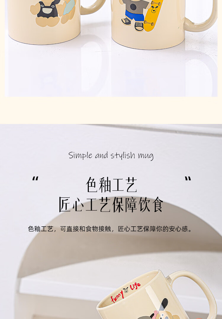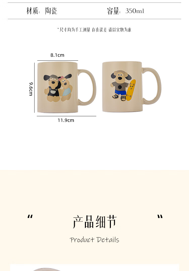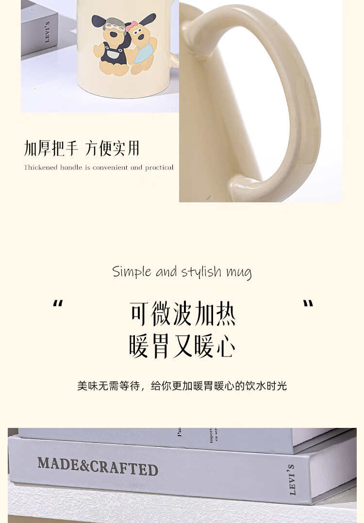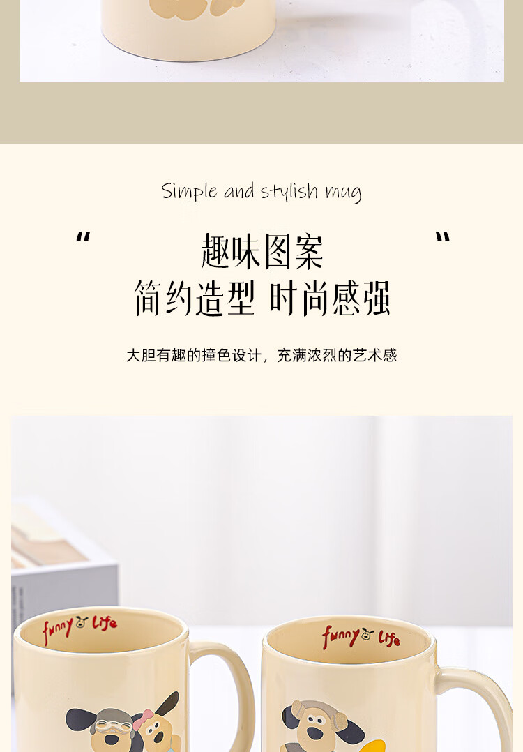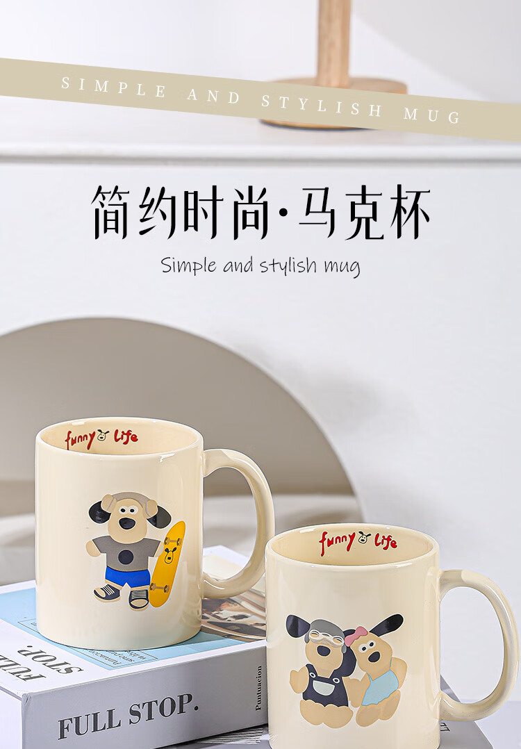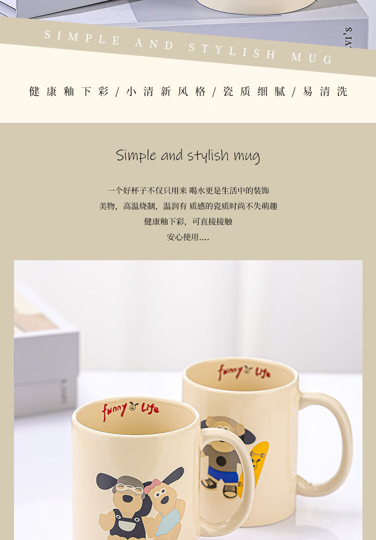 Cute cartoon high-looking ceramic cat mug with lid, couple water cup for best friends, creative and practical cup, loving puppy mug (single cup) 1 piece 350ml