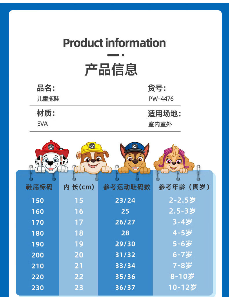 PAW PATROL PAW PATROL children's cotton slippers baby non-slip warm plus velvet winter indoor waterproof men's cute cotton shoes sky blue Archie 4476 17 inner length 17.0cm 170 size suitable for feet 16cm