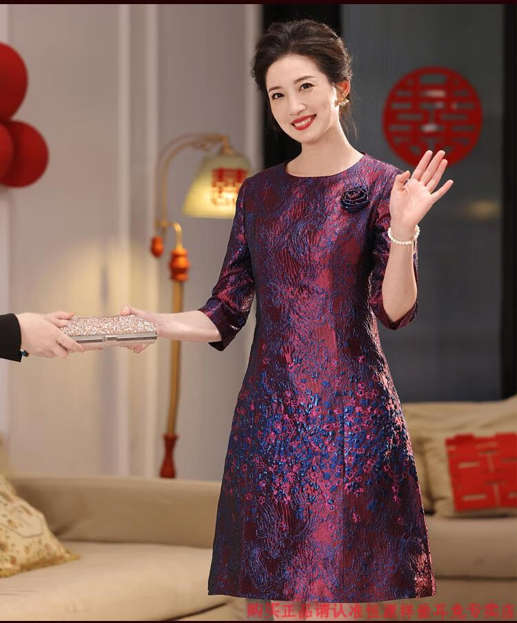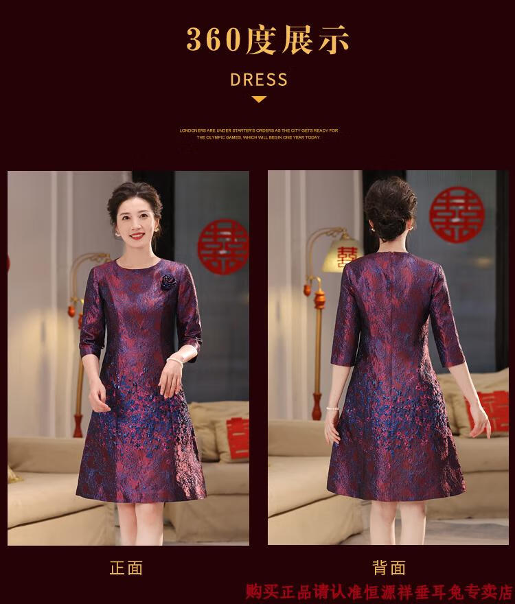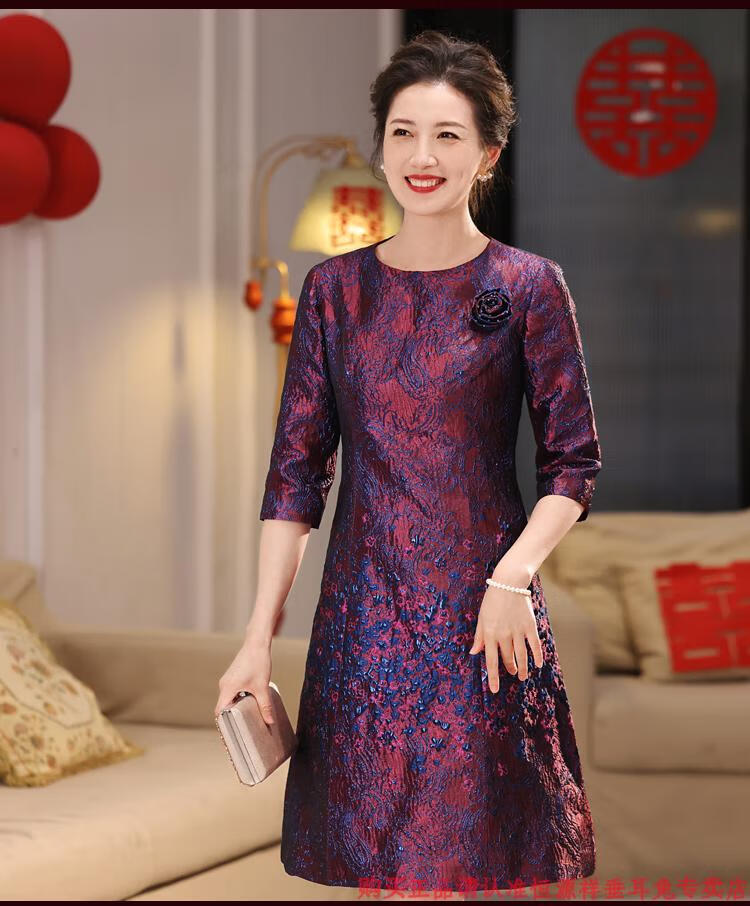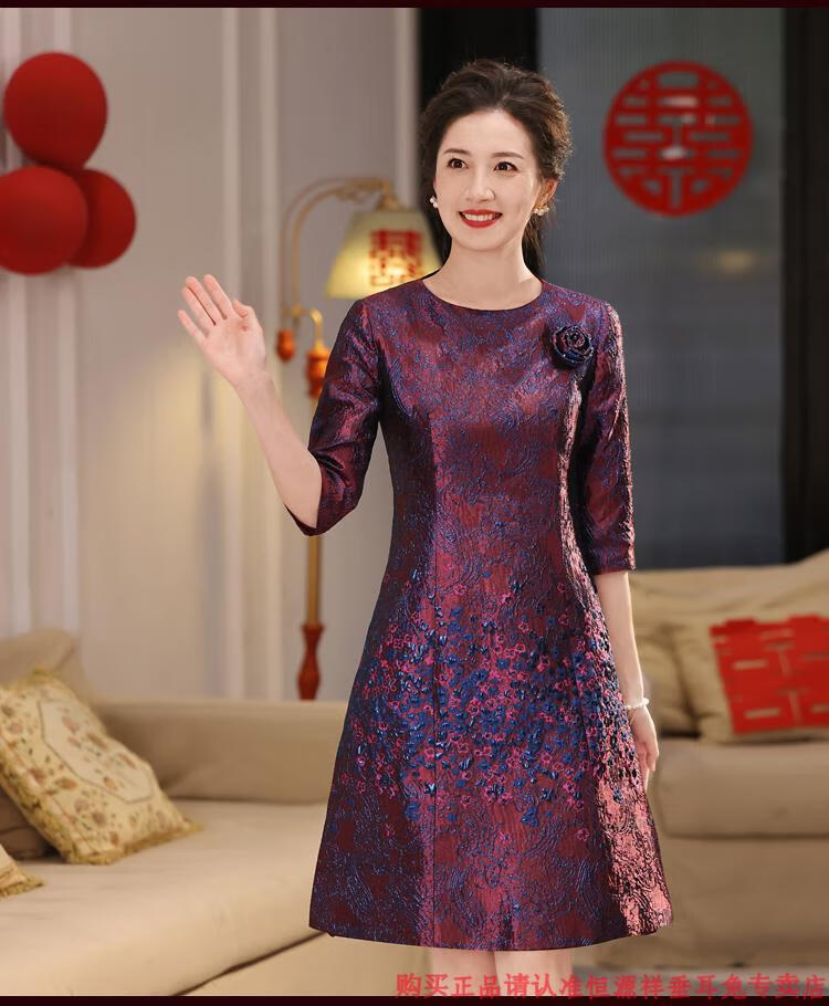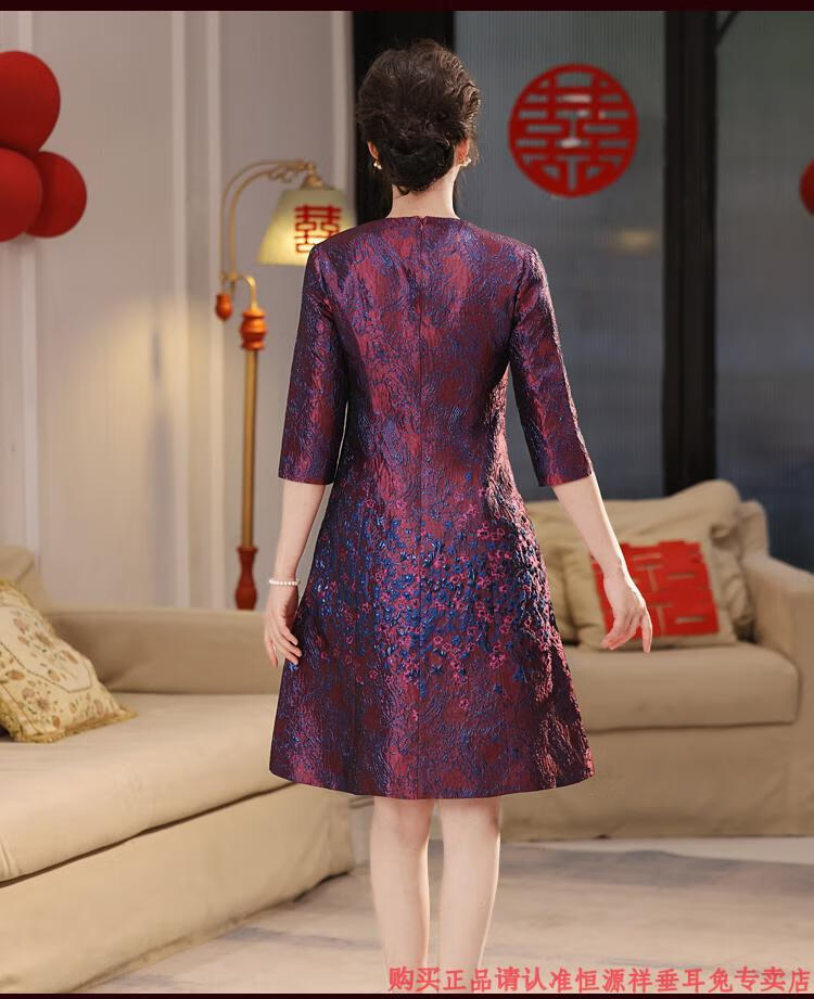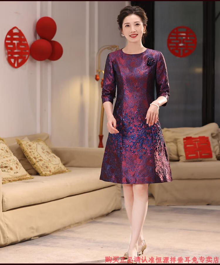 Hengyuan Xiangxi mother-in-law wedding banquet dress can be worn at ordinary times, light luxury and high-end 2025 noble mother-in-law mother high-end wedding dress purple M recommended 90-100 Jin Jin equals 0.5 kg