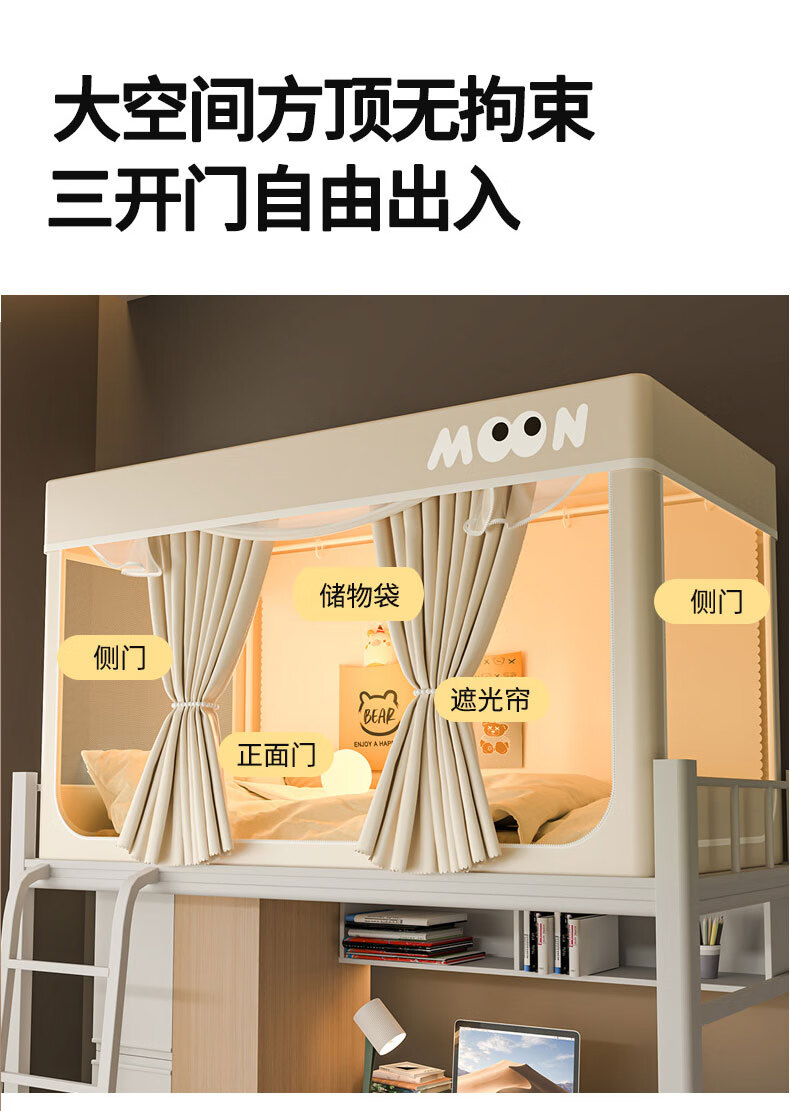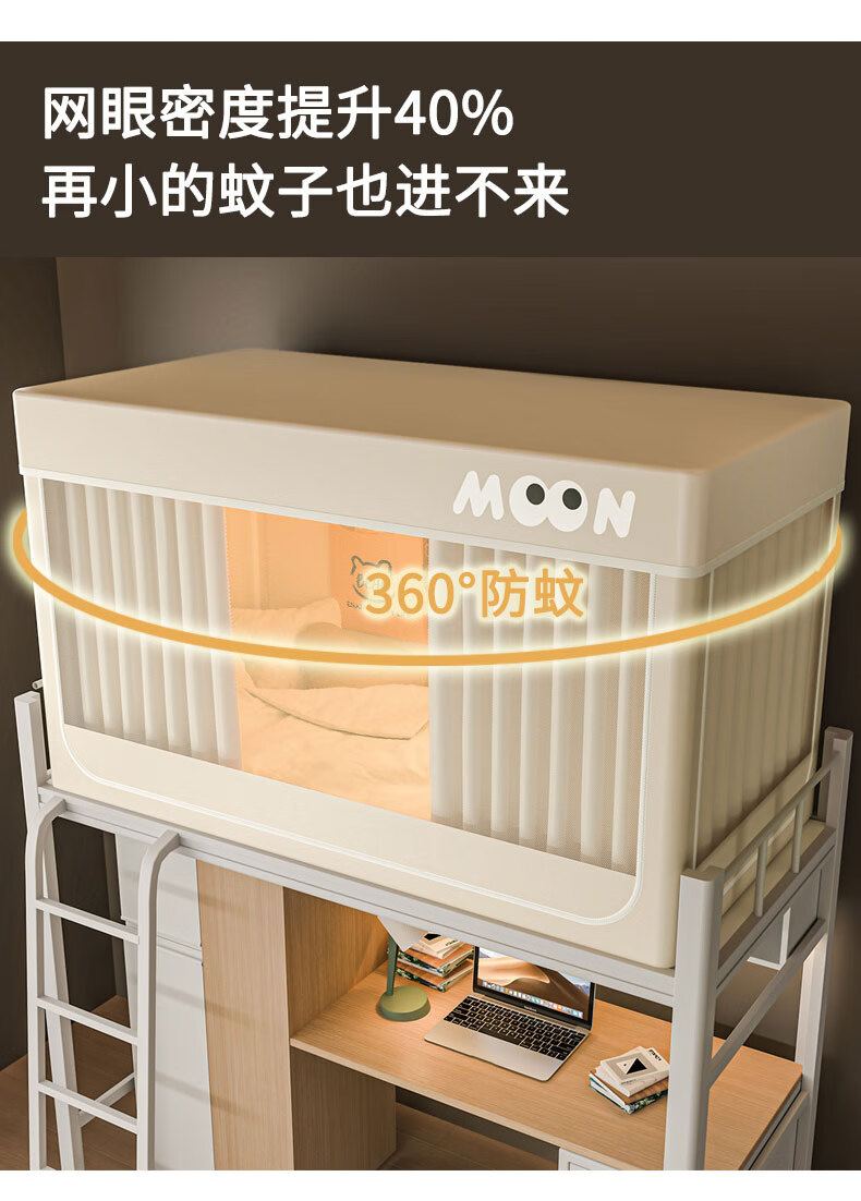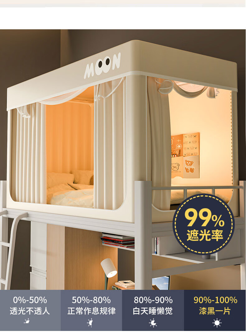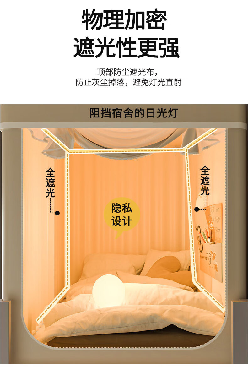 Nanjiren Dormitory Bed Curtain Mosquito Net Integrated Strong Blackout Soundproof Curtain Upper Bunk Fully Surrounded Fully Enclosed Dormitory Curtain No Installation Big Eyes - Meters Four Sides Blackout Encrypted Gauze 90cm*190cm *110cm-Top Bunk Heightened/Three Opens