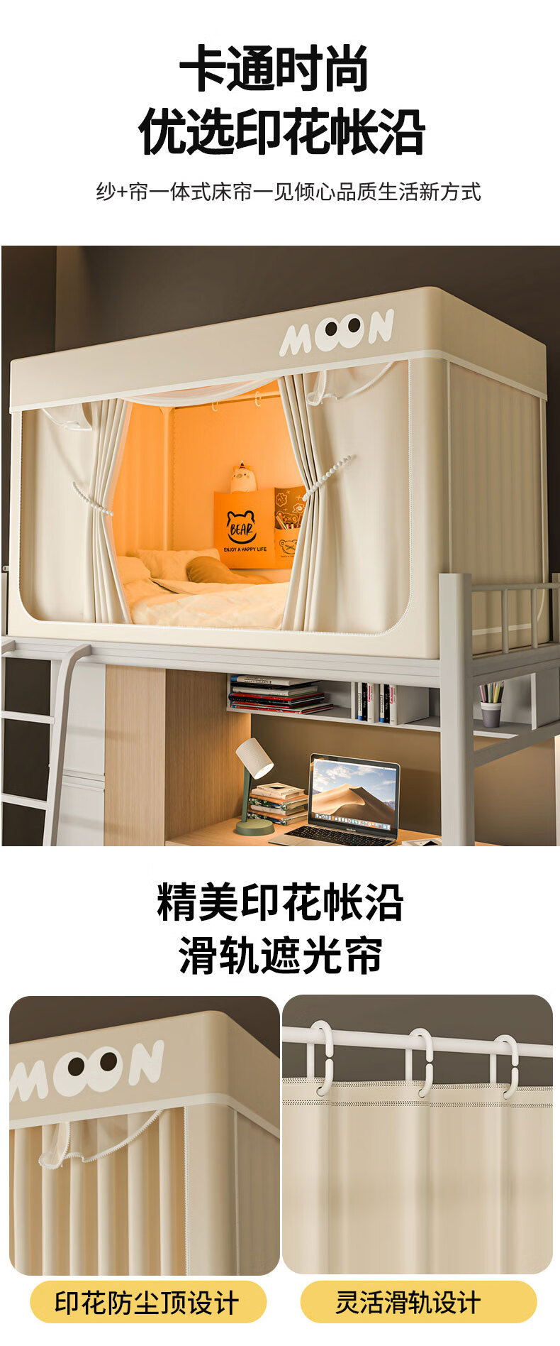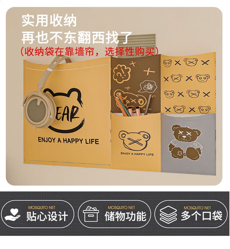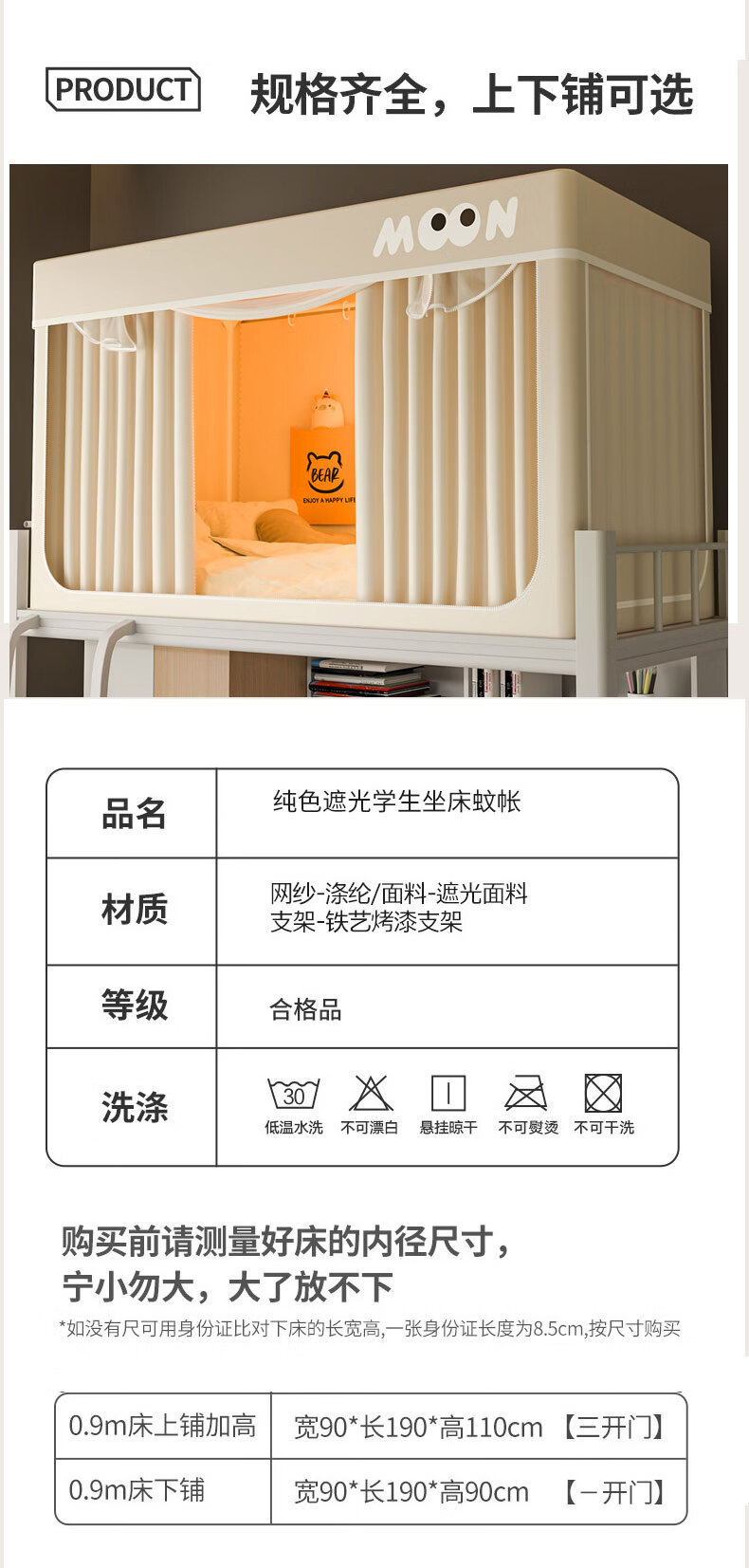 Nanjiren Dormitory Bed Curtain Mosquito Net Integrated Strong Blackout Soundproof Curtain Upper Bunk Fully Surrounded Fully Enclosed Dormitory Curtain No Installation Big Eyes - Meters Four Sides Blackout Encrypted Gauze 90cm*190cm *110cm-Top Bunk Heightened/Three Opens