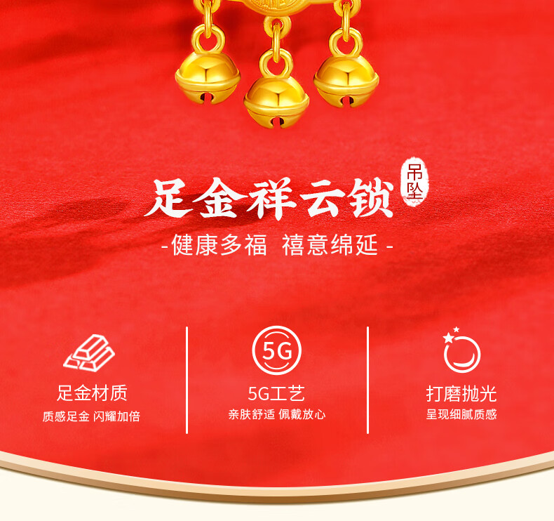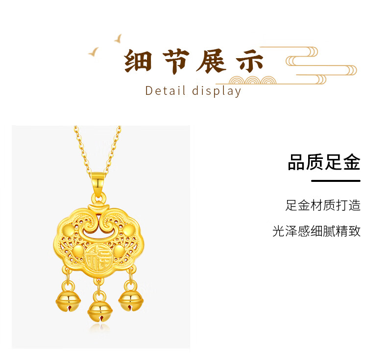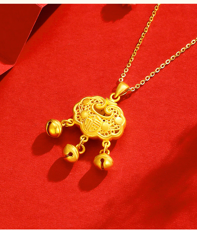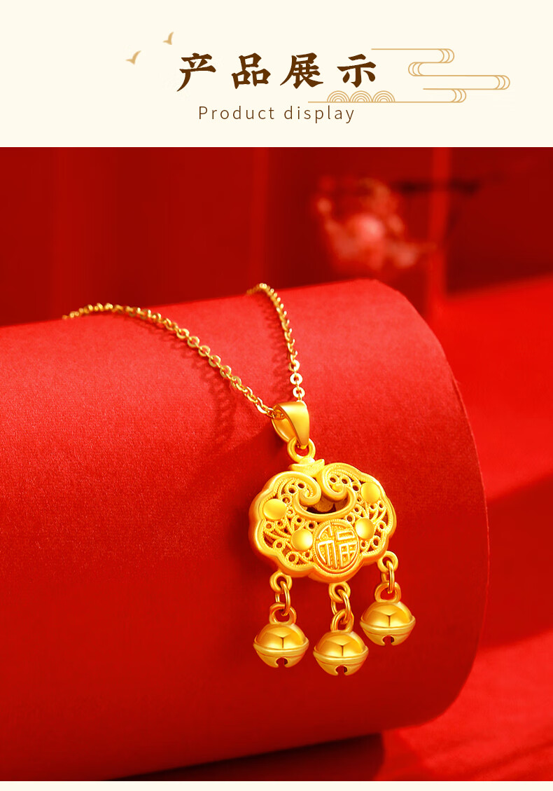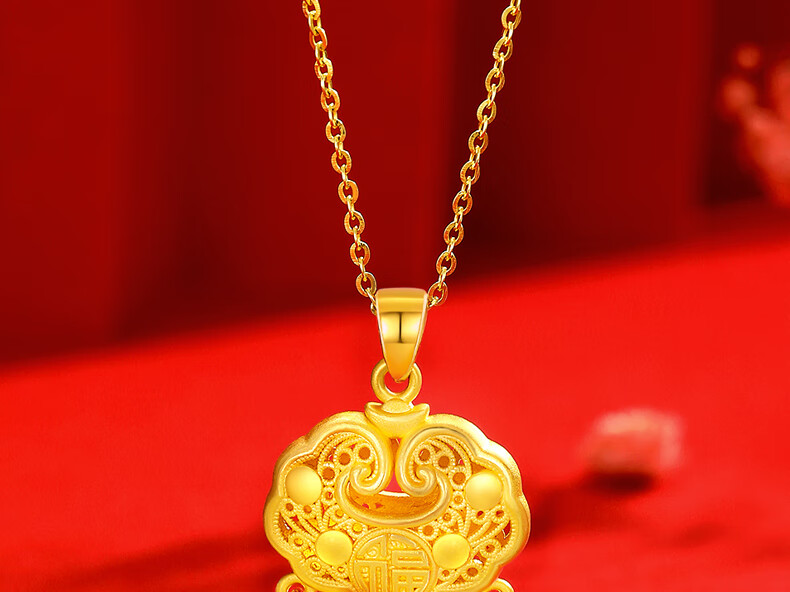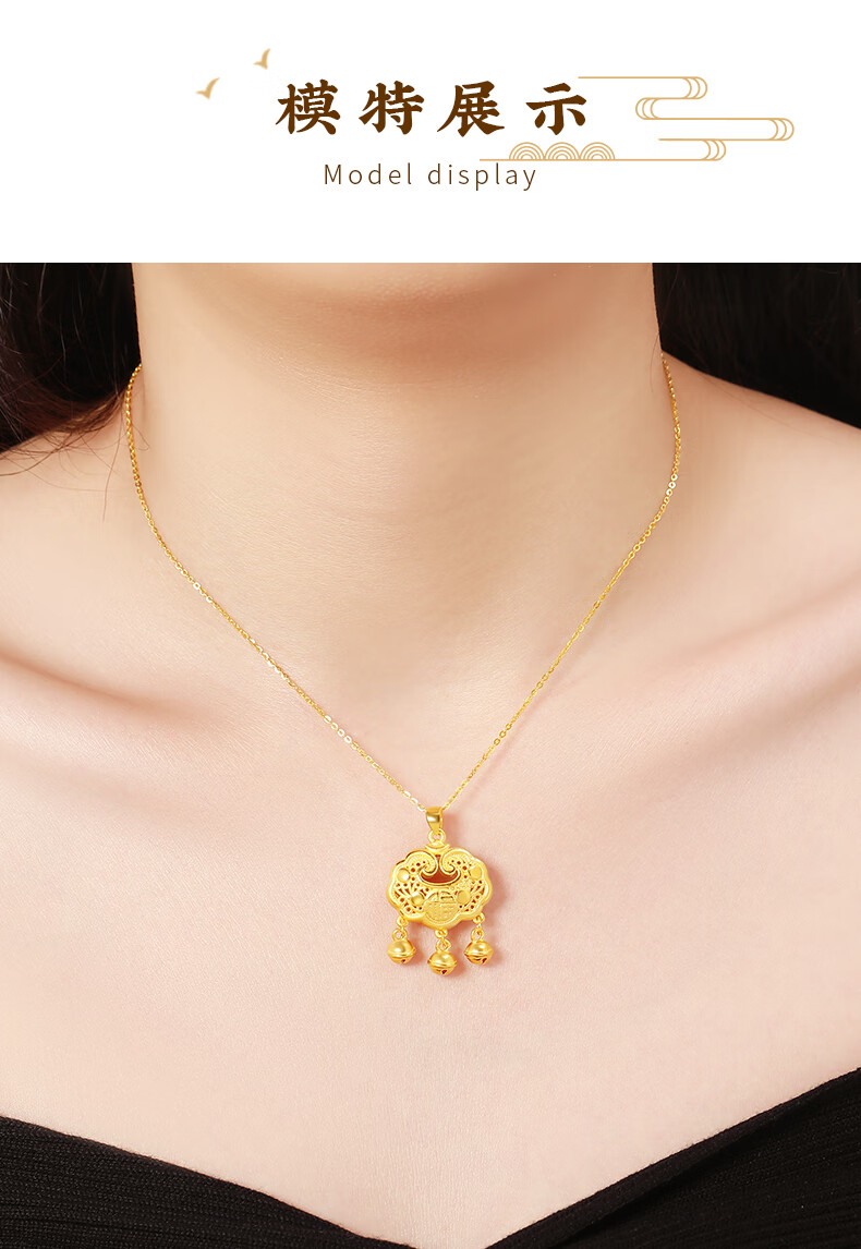 Chinese Jewelry Xiangyun Safe Lock Gold Necklace Women's Foot Gold Longevity Lock Pendant Birthday Gift for Girlfriend and Wife Pendant* Gold Weight Approximately 1.6g Free Silver Chain