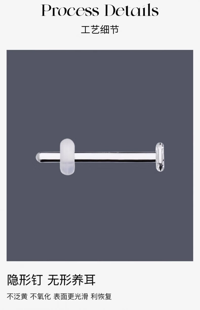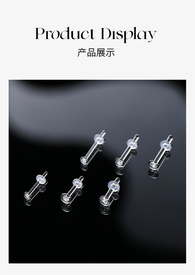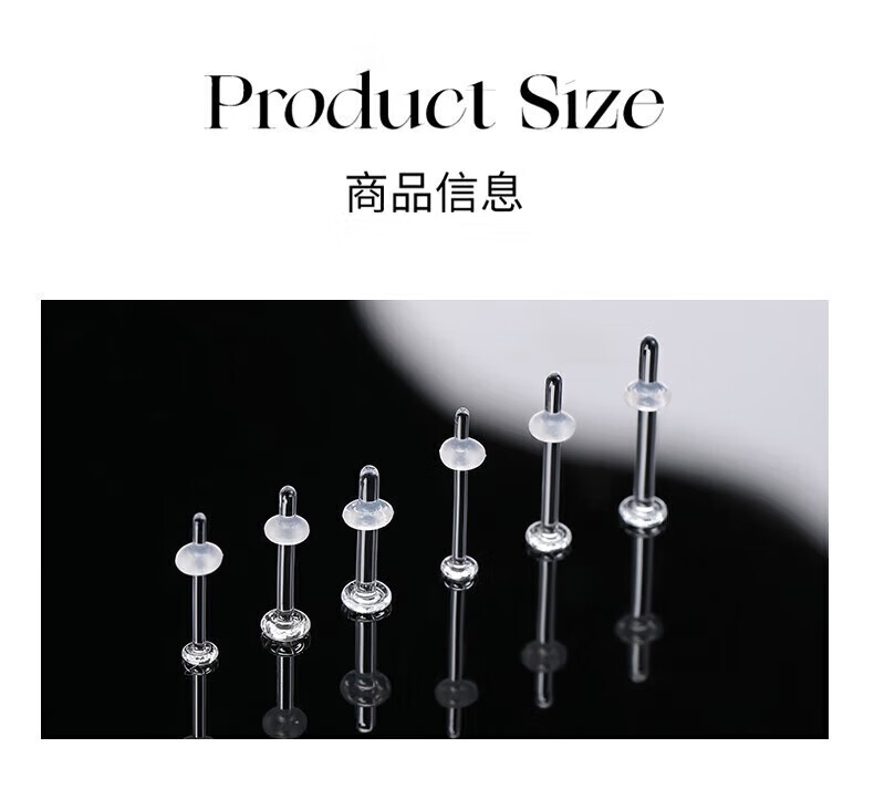 Lead-free glass earrings for women with ear piercings, transparent invisible ear sticks, lip nails, ear bone nails, no need to remove student ear jewelry for sleeping, 1 pair, stem thickness 1.2mm, stem length 8mm, glass ears