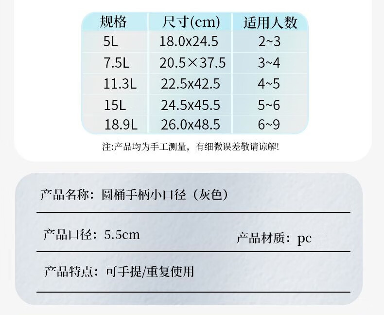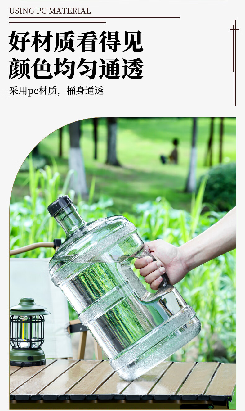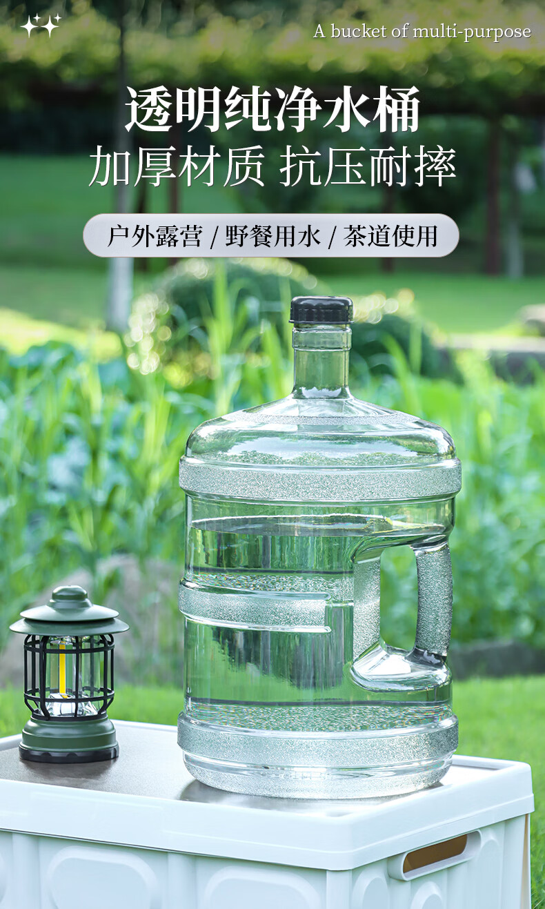 Baijie bucket portable pure water bucket food grade water storage bucket outdoor plastic tea bucket mineral water large bucket 7.5L transparent visible gray food grade thickened PC new material