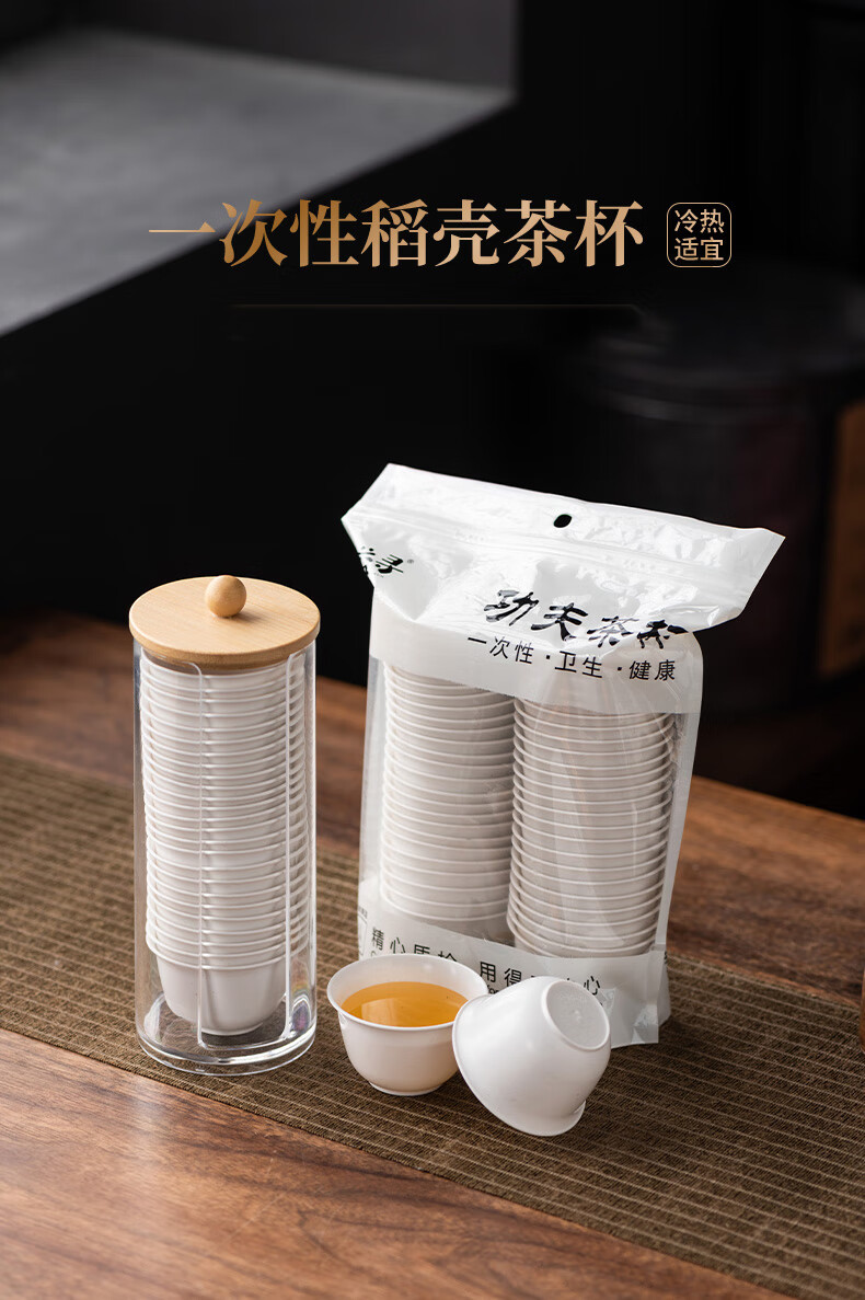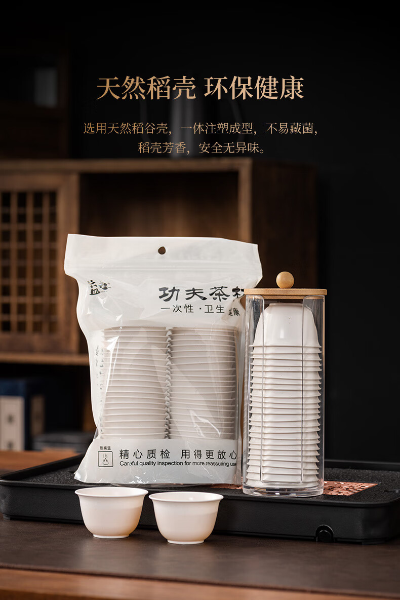 Yunhua disposable kung fu tea cup with storage rack 60ml high-grade heat-resistant rice husk tea tasting cup tea tasting 200 disposable tea cups