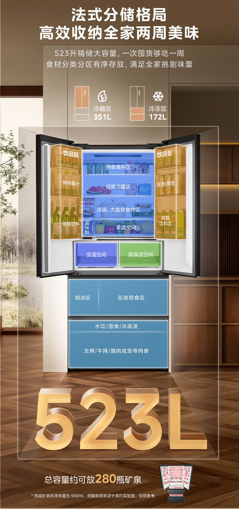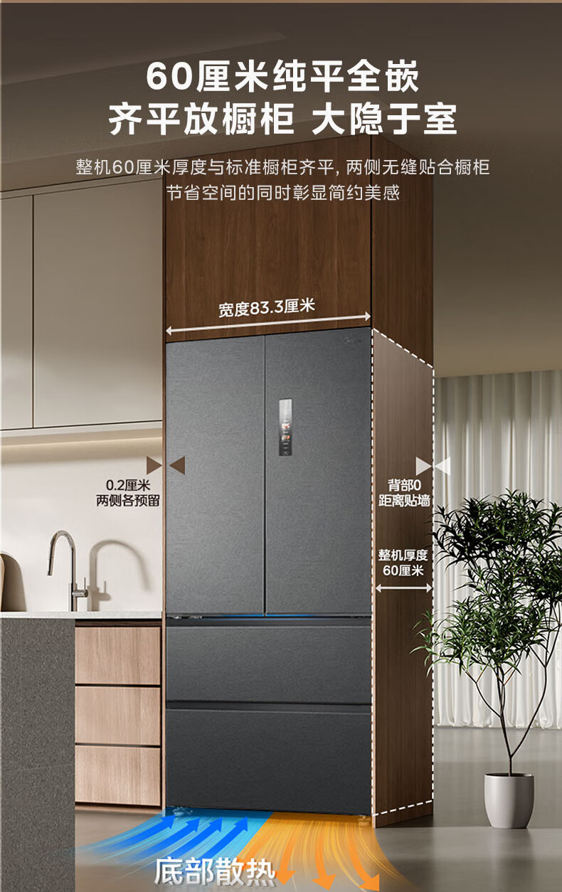 Midea M60 series 550 dual-system dual-cycle ultra-thin zero-embedded first-level energy-efficiency French multi-door air-cooled frost-free built-in ice machine for smart home (supports Hongmeng Zhilian) Haibeidai Midea Machine King