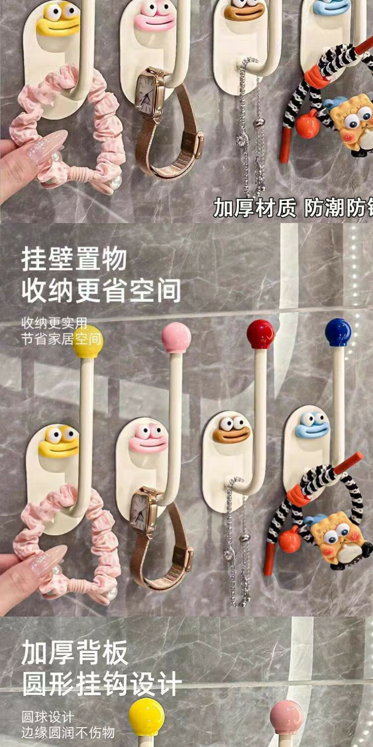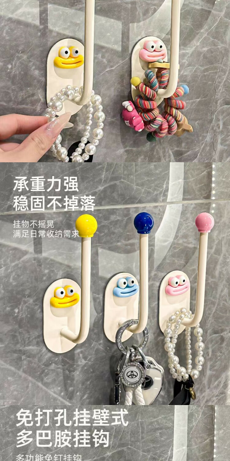 Hair ties, hair hoops, sticky hooks, bathroom storage racks, hairpins, rubber bands, hair rope hooks, jewelry hair rope storage racks, creative long hooks, yellow