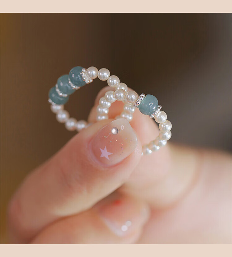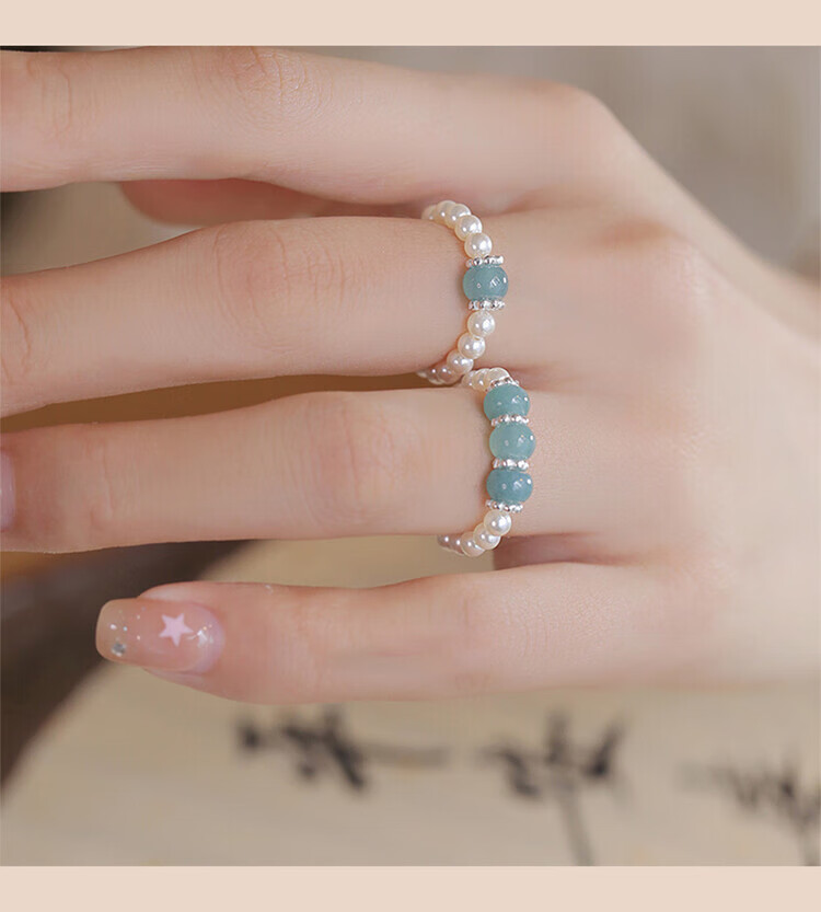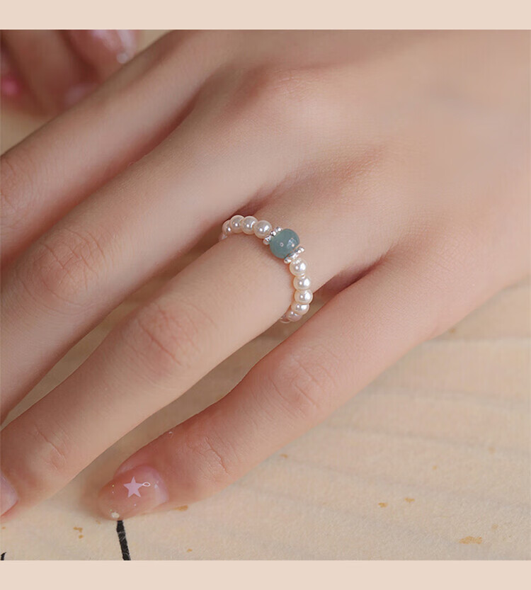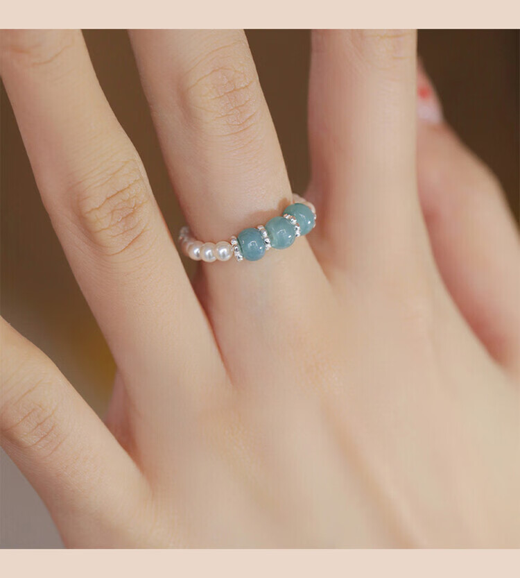 Unstained jadeite Shijia shell bead ring for women new Chinese style light luxury niche high-end ring Chinese culture gift shell bead 3mm-one jadeite-silver style