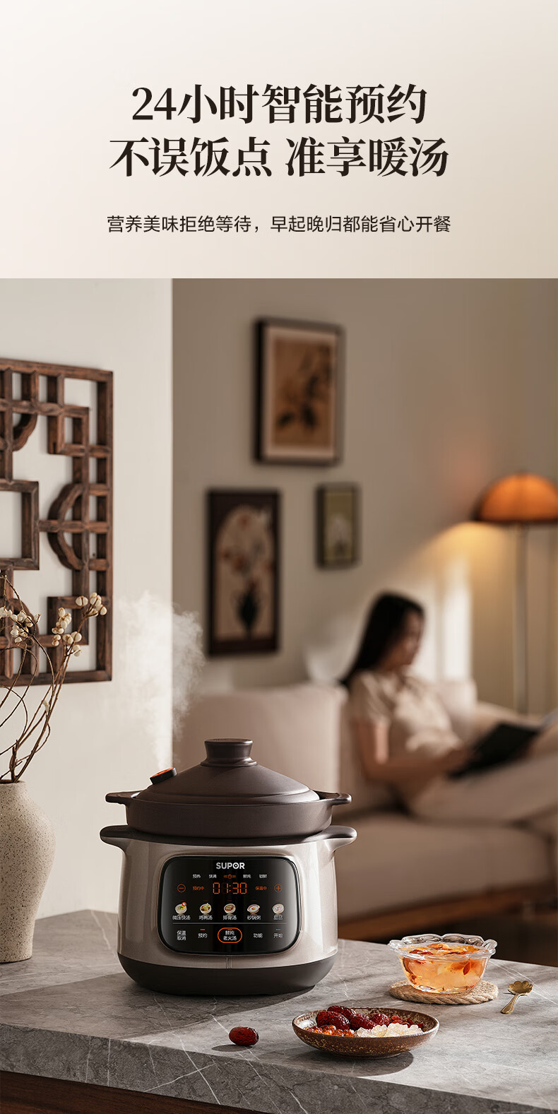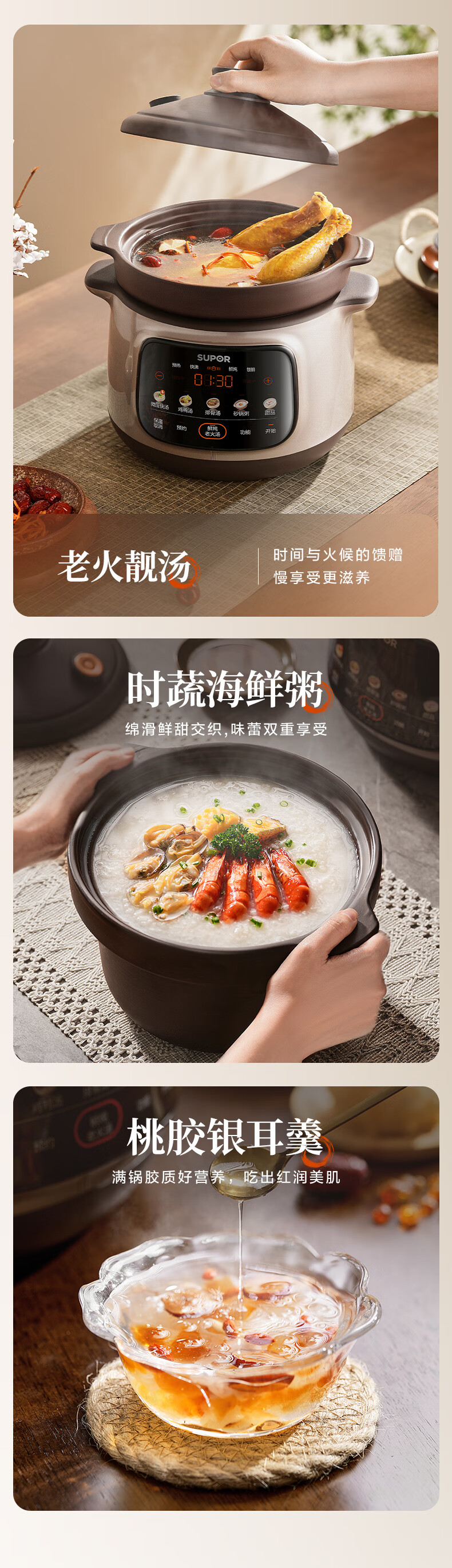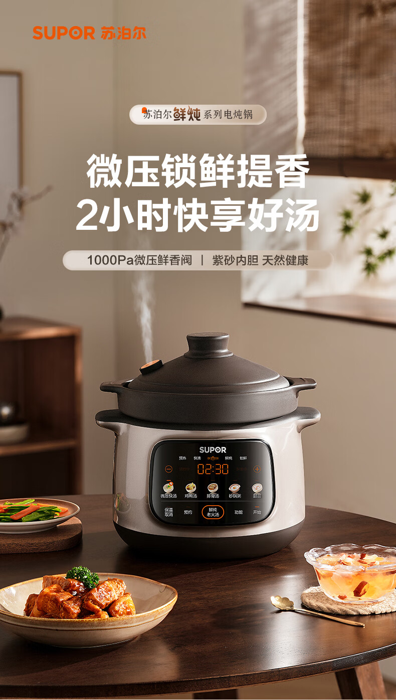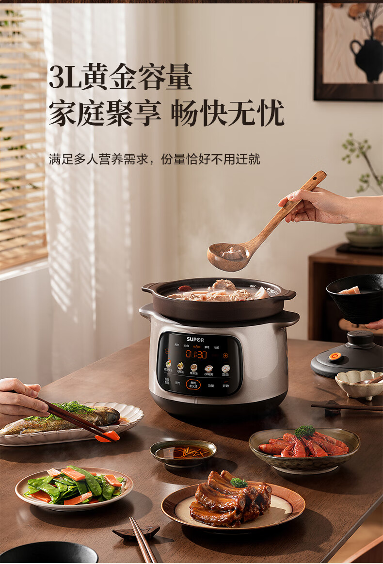 Supor electric stew pot household 3-5L large-capacity electric stew pot for soup, multifunctional electric casserole and soup pot, fully automatic purple sand electric stew pot, electric stew pot, soup and stew all-in-one electric pot, micro-pressure quick stew DG30YC875 3L