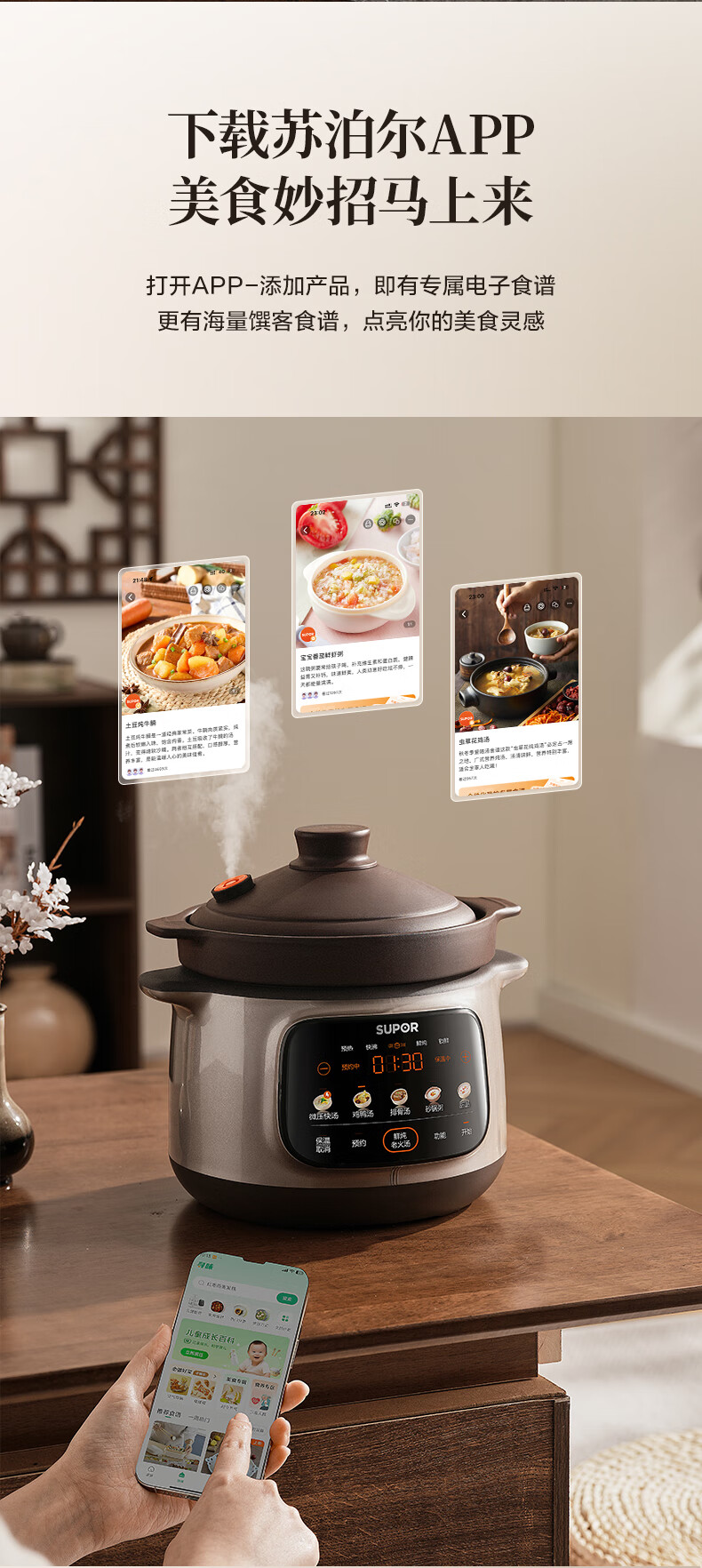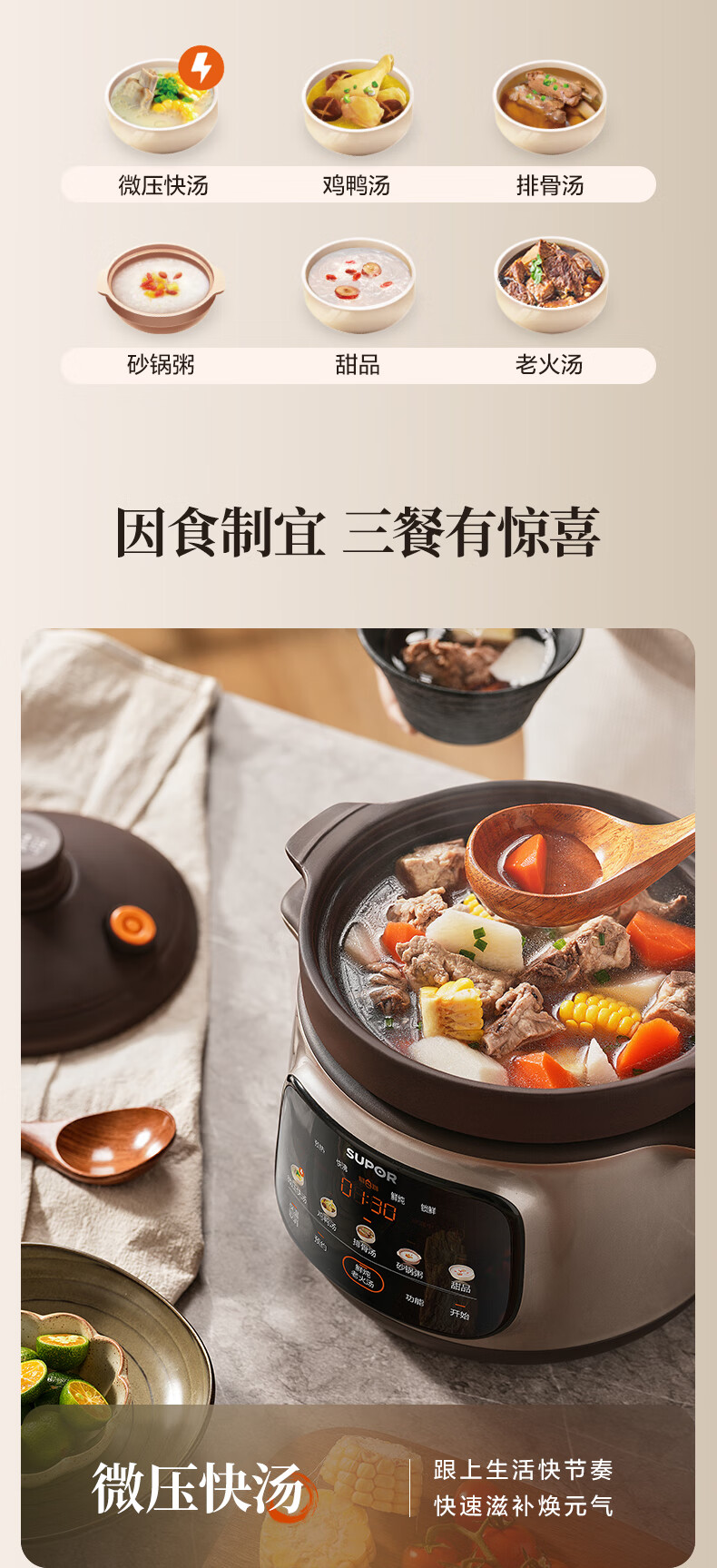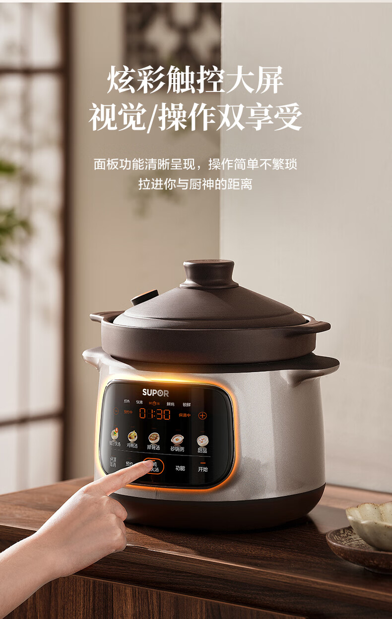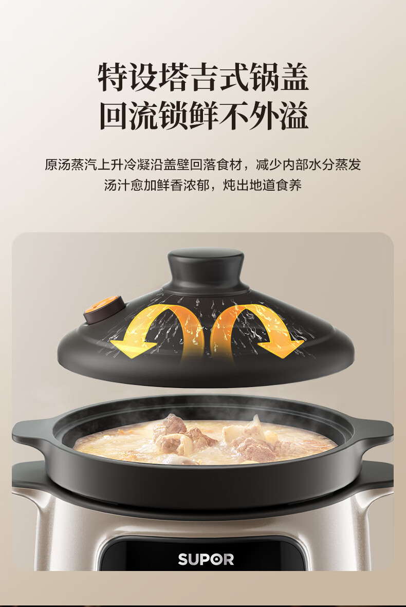 Supor electric stew pot household 3-5L large-capacity electric stew pot for soup, multifunctional electric casserole and soup pot, fully automatic purple sand electric stew pot, electric stew pot, soup and stew all-in-one electric pot, micro-pressure quick stew DG30YC875 3L