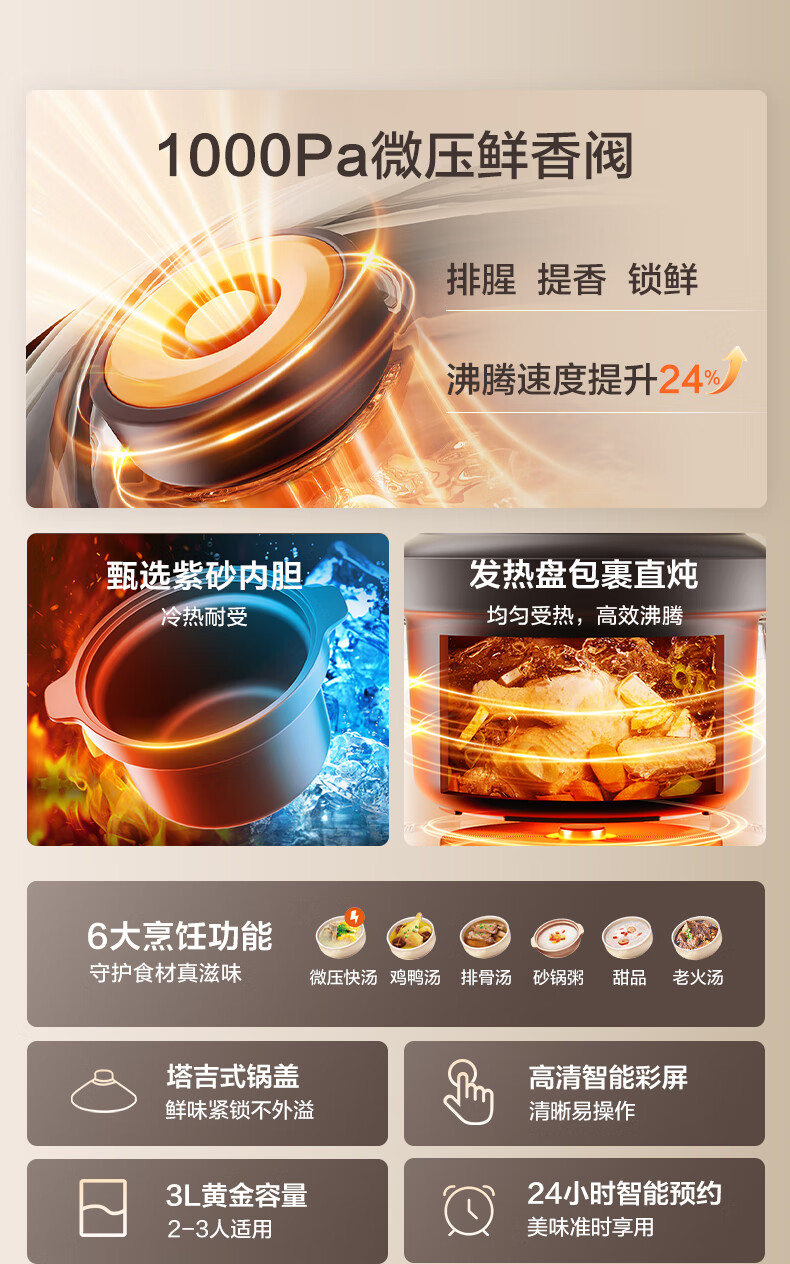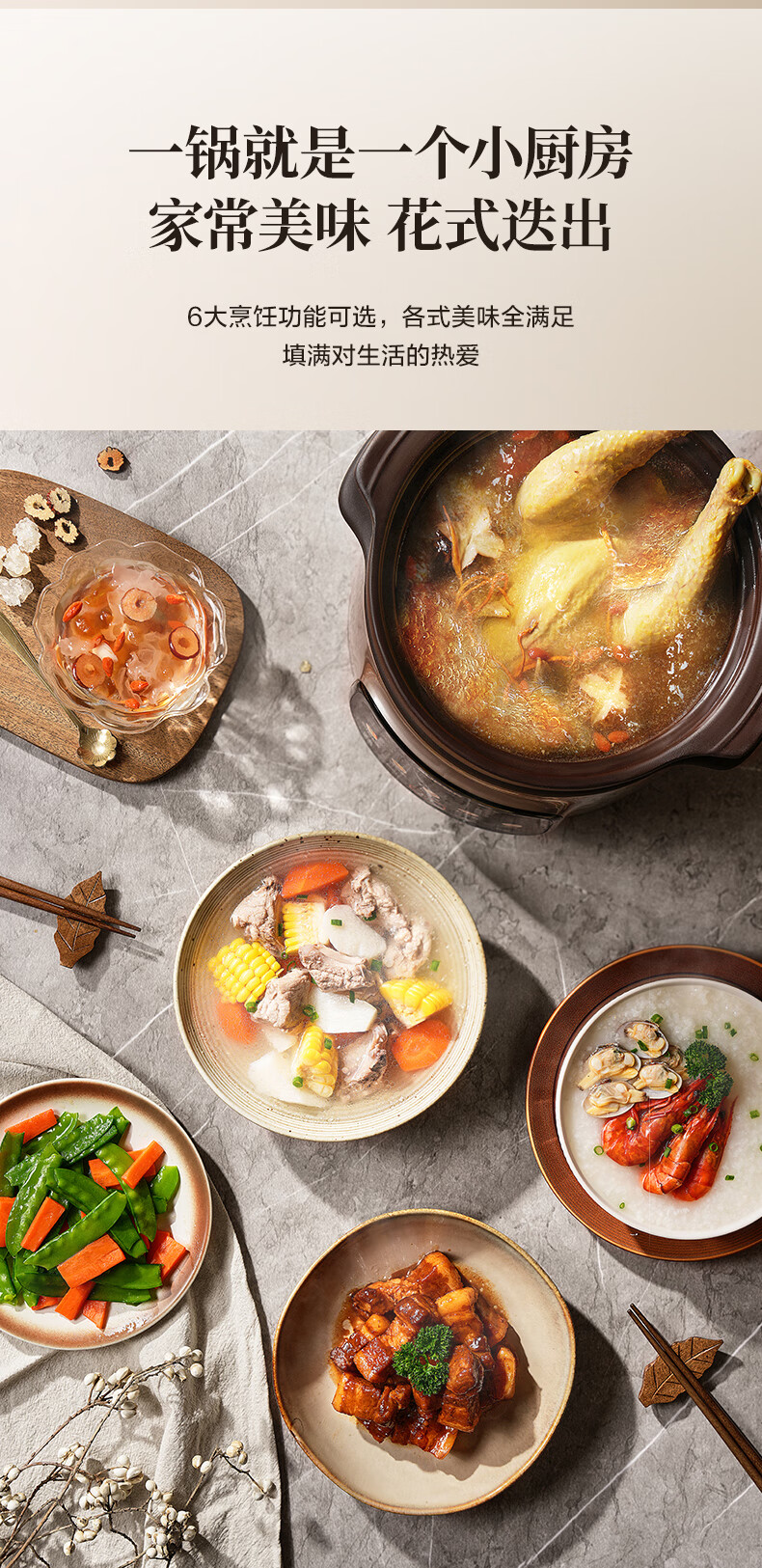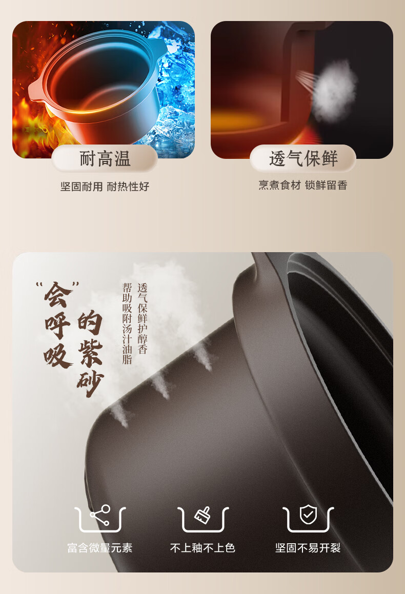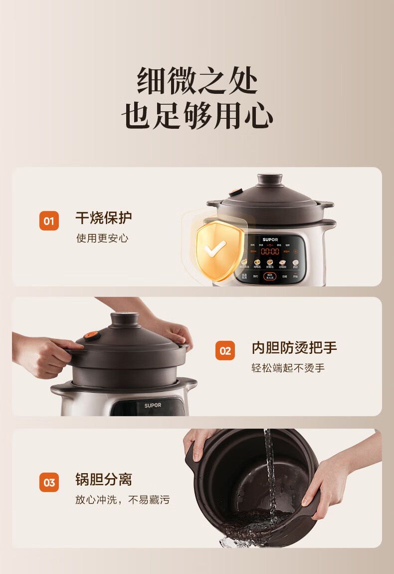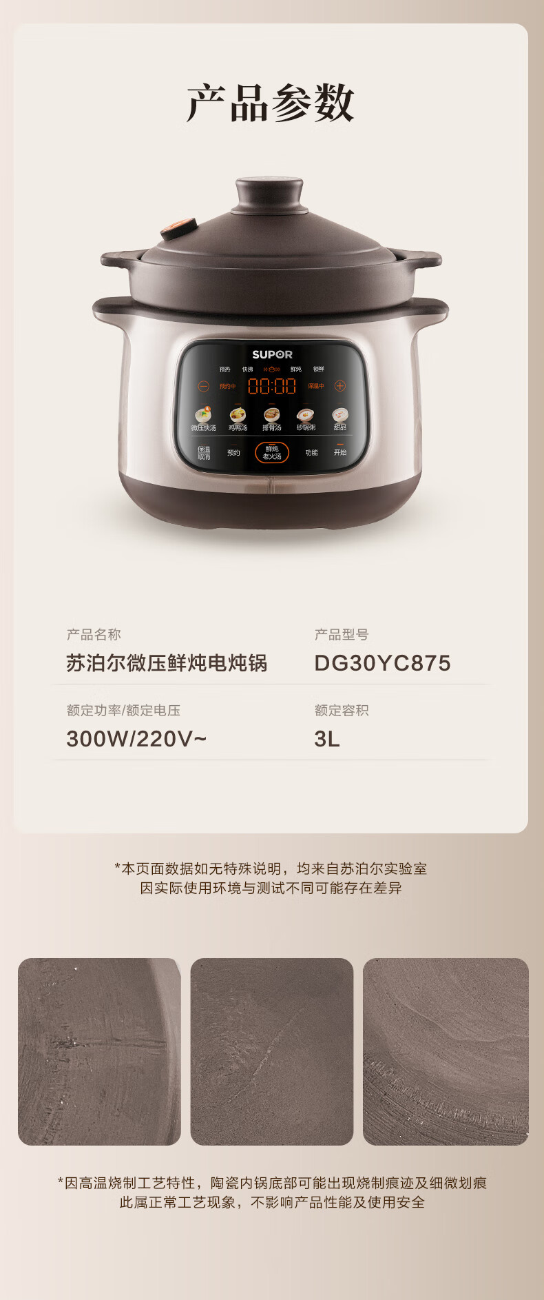 Supor electric stew pot household 3-5L large-capacity electric stew pot for soup, multifunctional electric casserole and soup pot, fully automatic purple sand electric stew pot, electric stew pot, soup and stew all-in-one electric pot, micro-pressure quick stew DG30YC875 3L