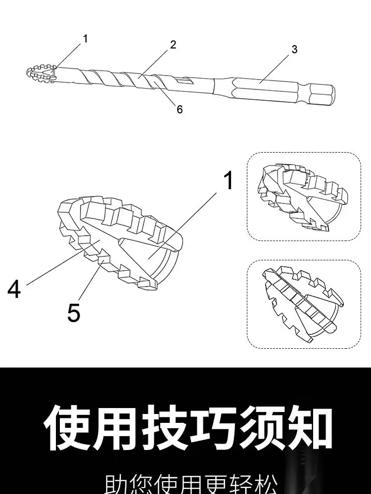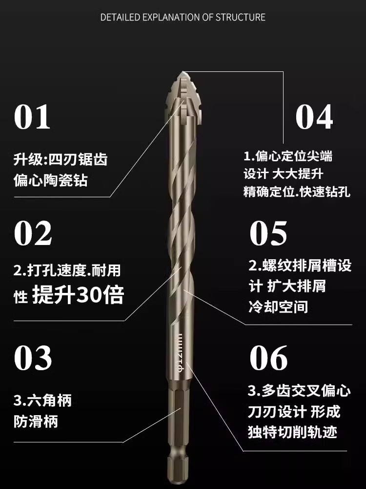 JCZS Germany upgraded four-edged serrated eccentric drill bit, special high-hardness hole expander for dry drilling of ceramic tiles, marble concrete, four-edged serrated drill 6+8, two in total, ten times more durable