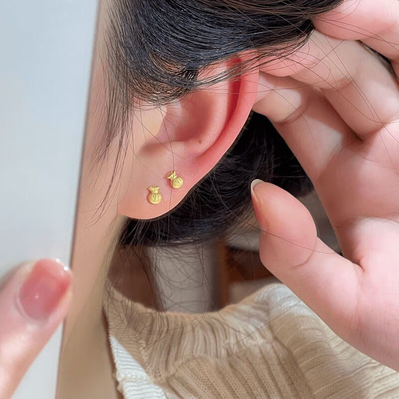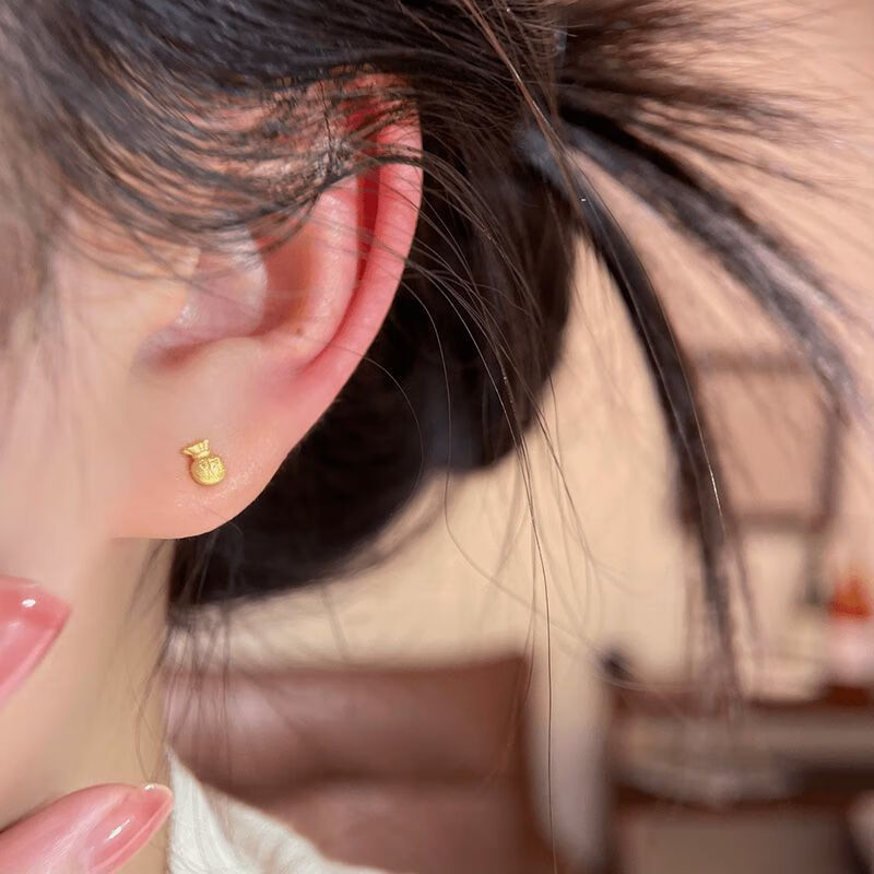 KZD Old Phoenix Full of Blessings Earrings for Women Versatile Niche Gentle Temperament Earrings Earrings Pair of Golden Wealth Characters