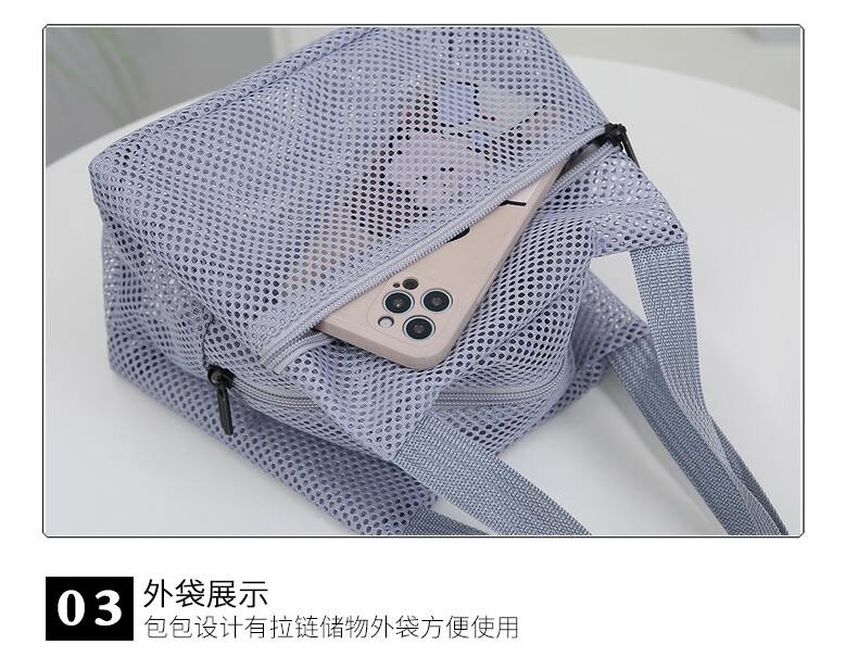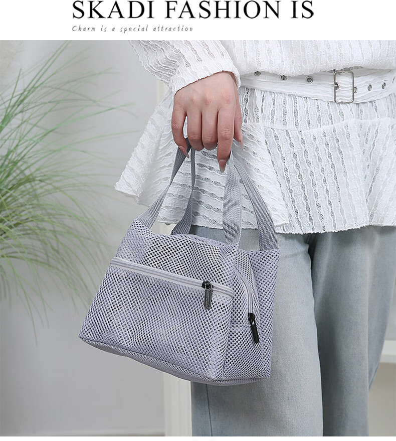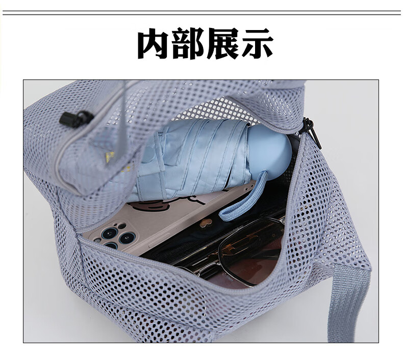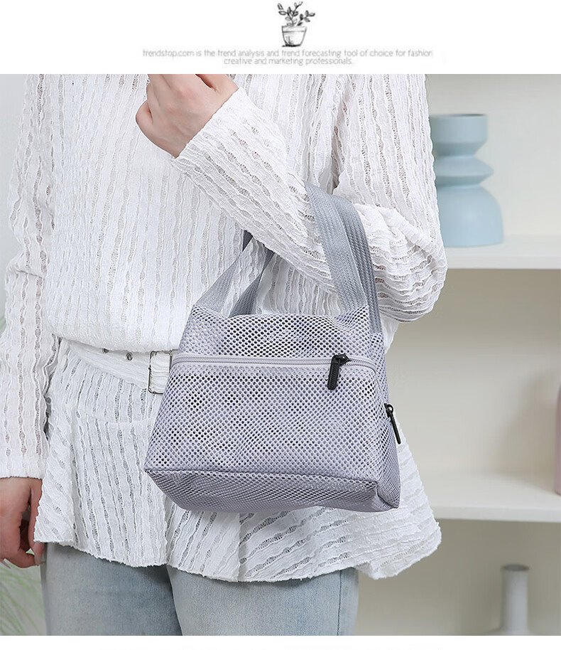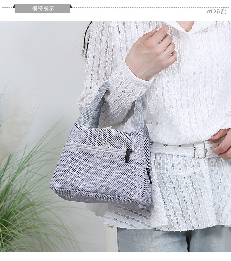 Fat Donglai's same style Fat Makeup Toilet Bag Portable Large Capacity Beach Bag Mesh Drainage Storage Bag Portable Swimming Gray