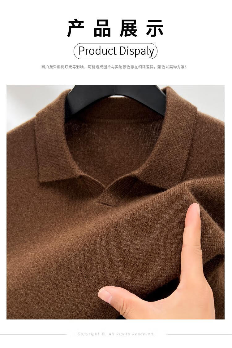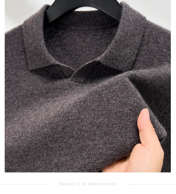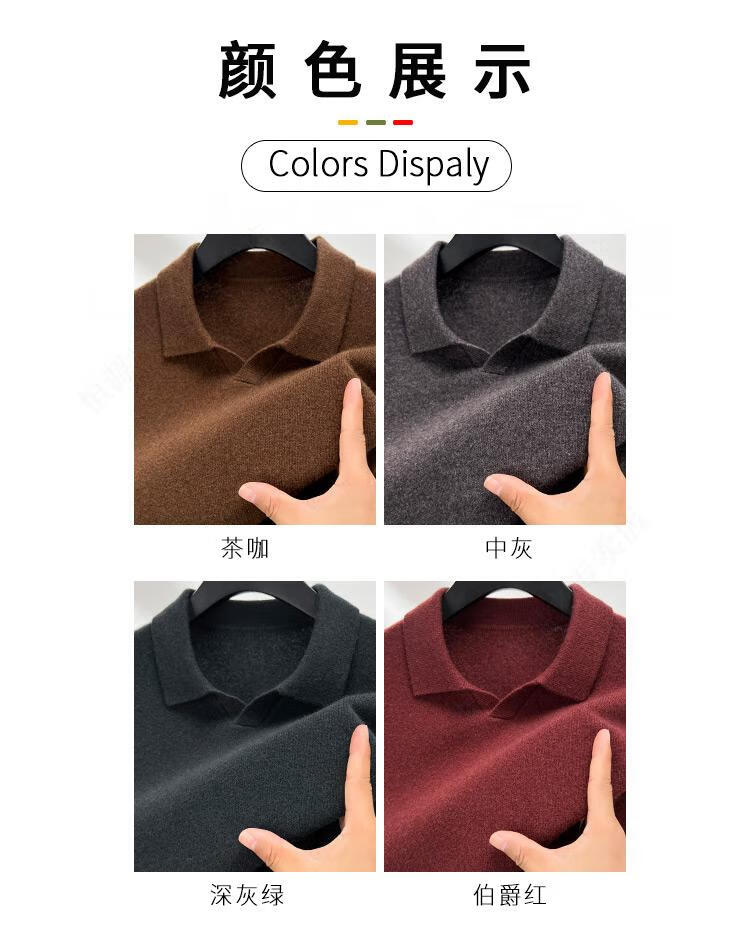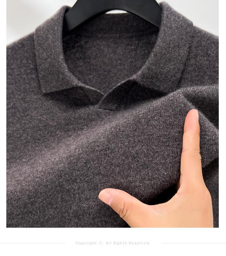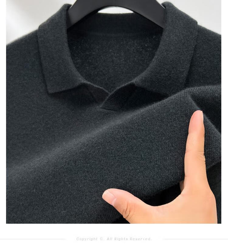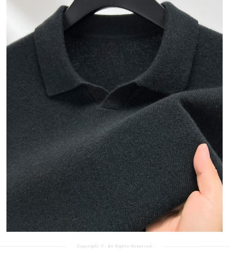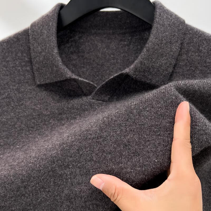 Hengyuanxiang 100% pure wool seagull collar polo shirt for men, thickened lapel sweater for young and middle-aged people, autumn and winter base woolen sweater, dark gray green (100% wool), 100% non-pilling 2XL