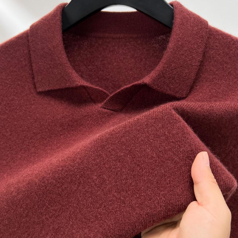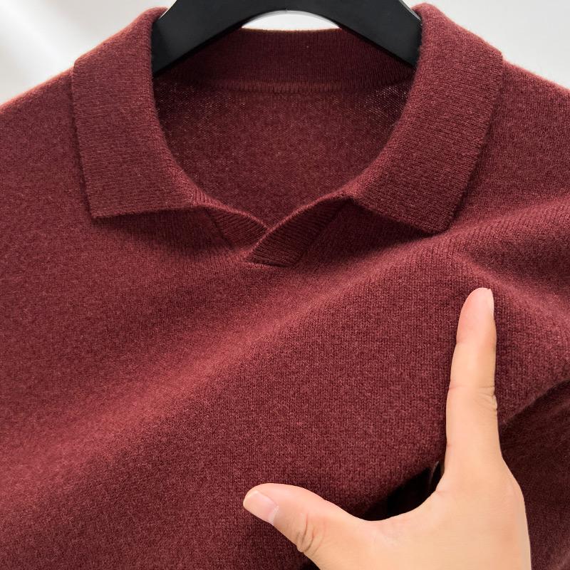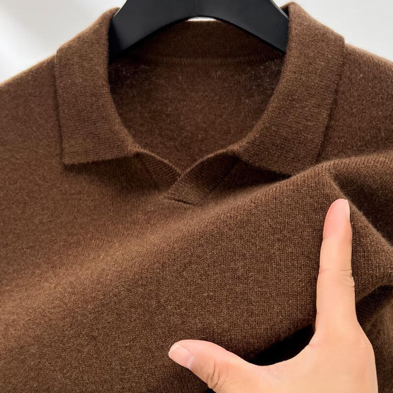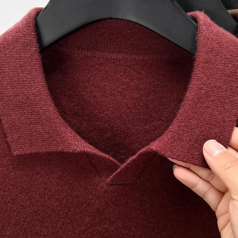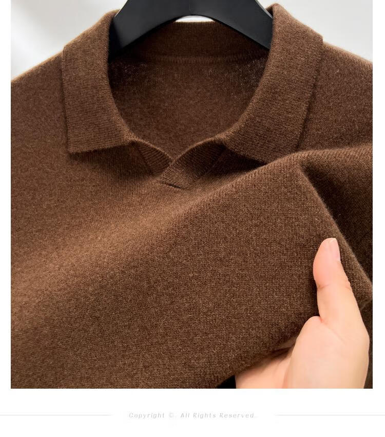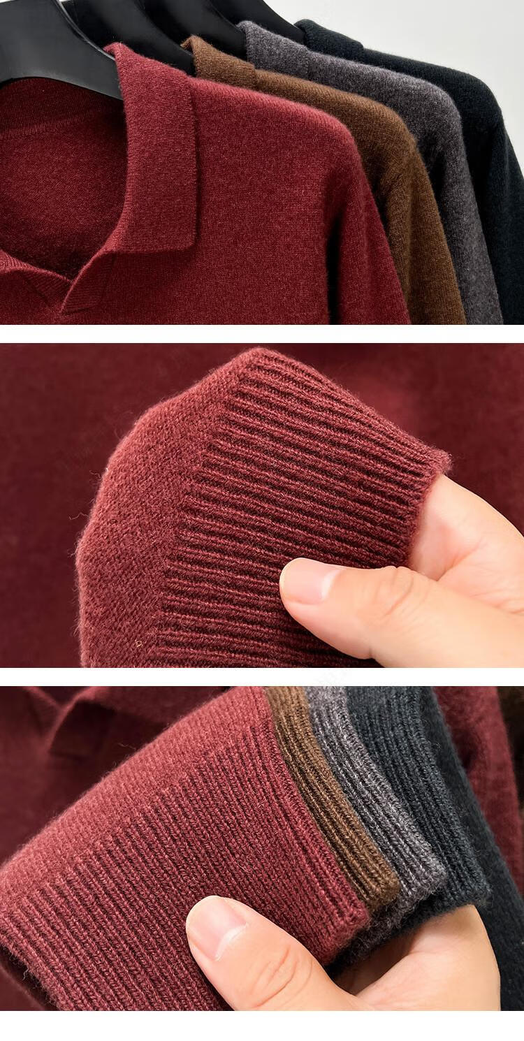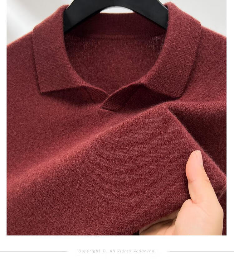 Hengyuanxiang 100% pure wool seagull collar polo shirt for men, thickened lapel sweater for young and middle-aged people, autumn and winter base woolen sweater, dark gray green (100% wool), 100% non-pilling 2XL