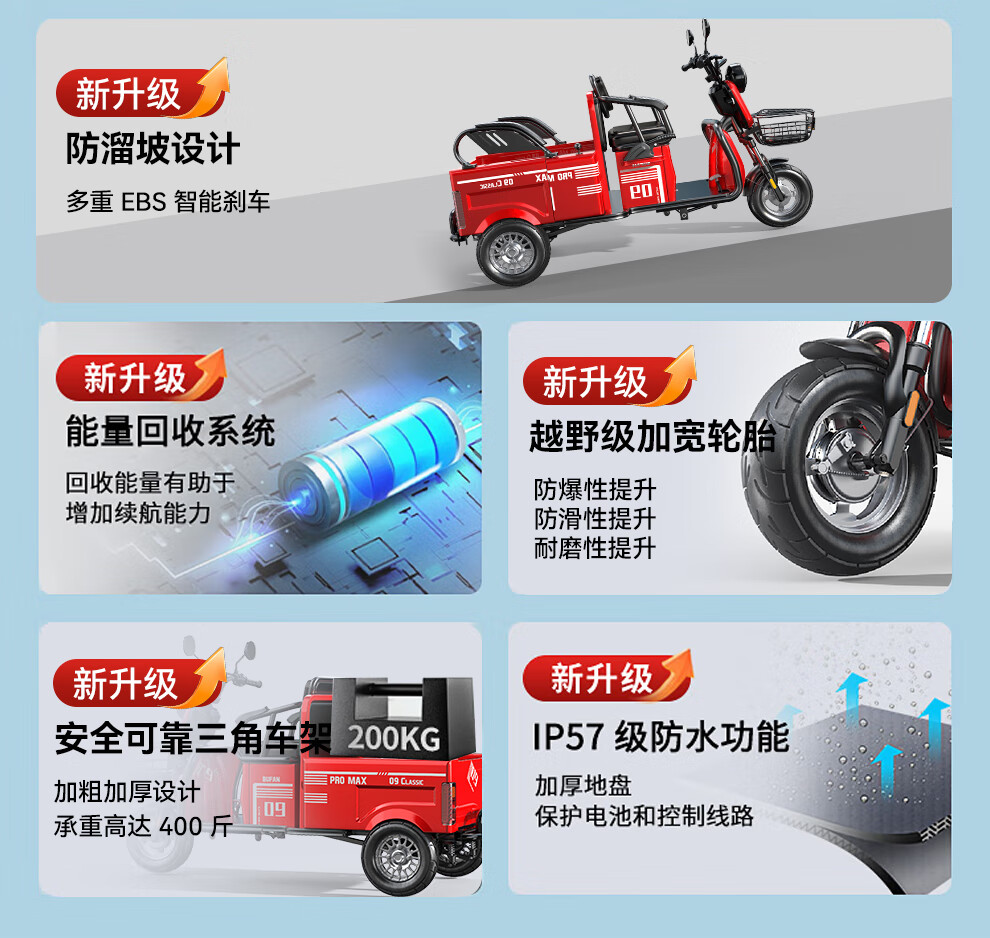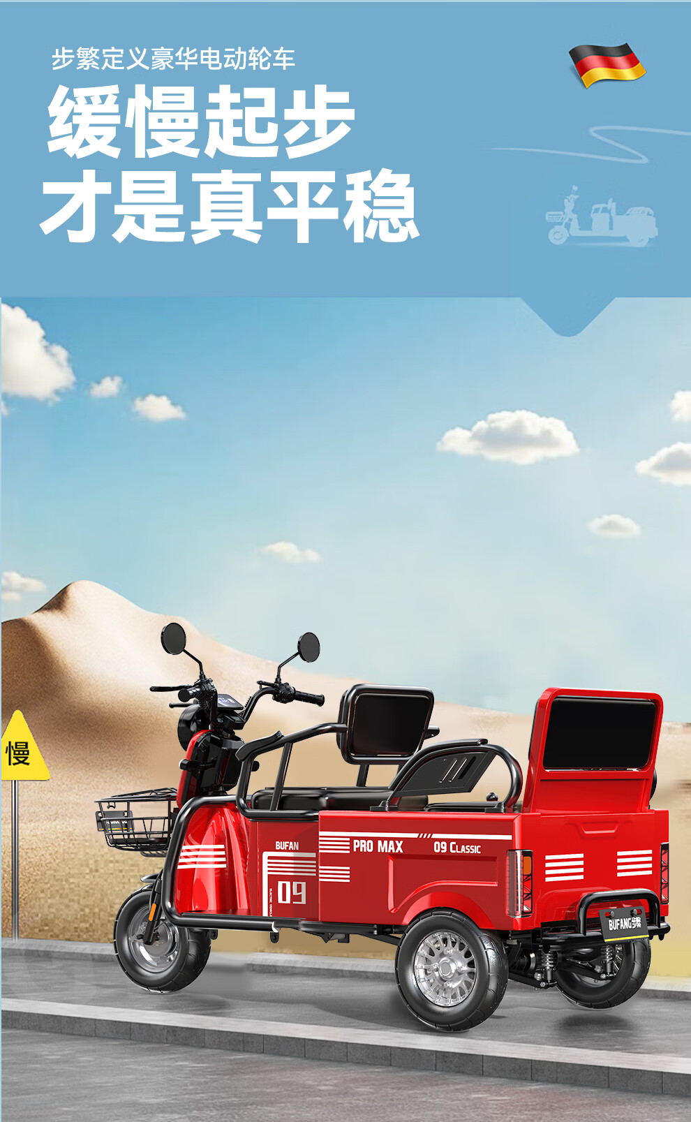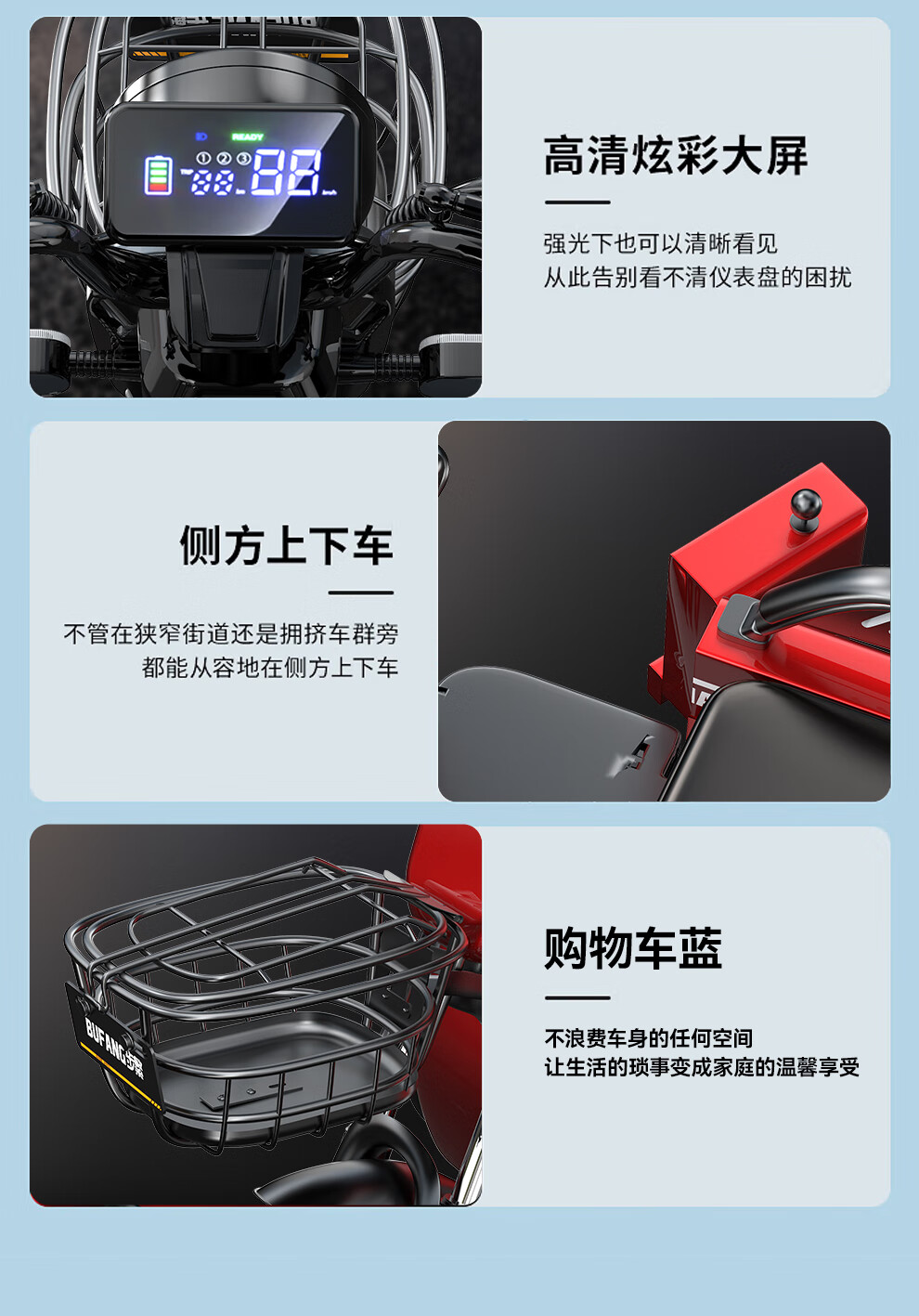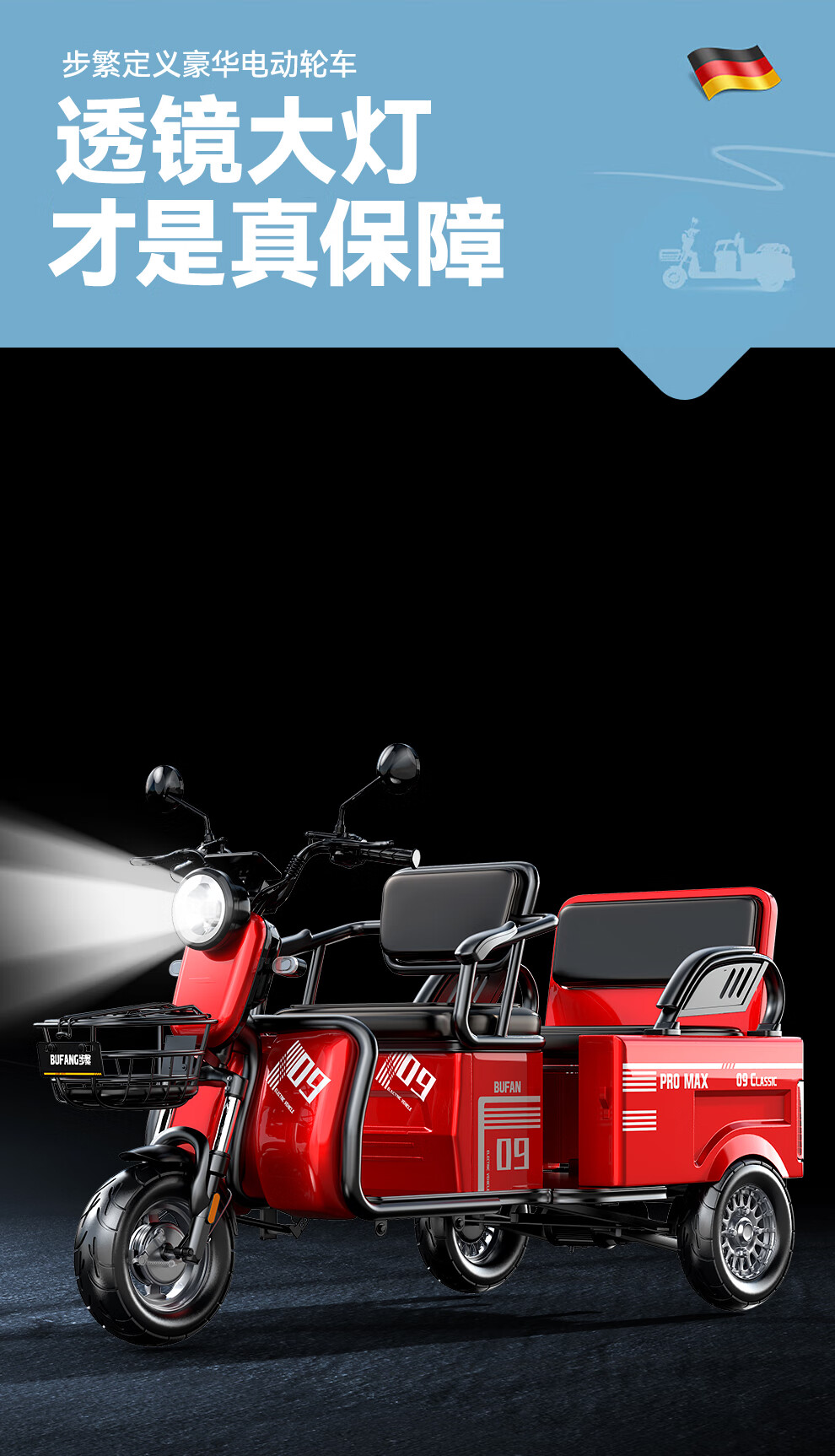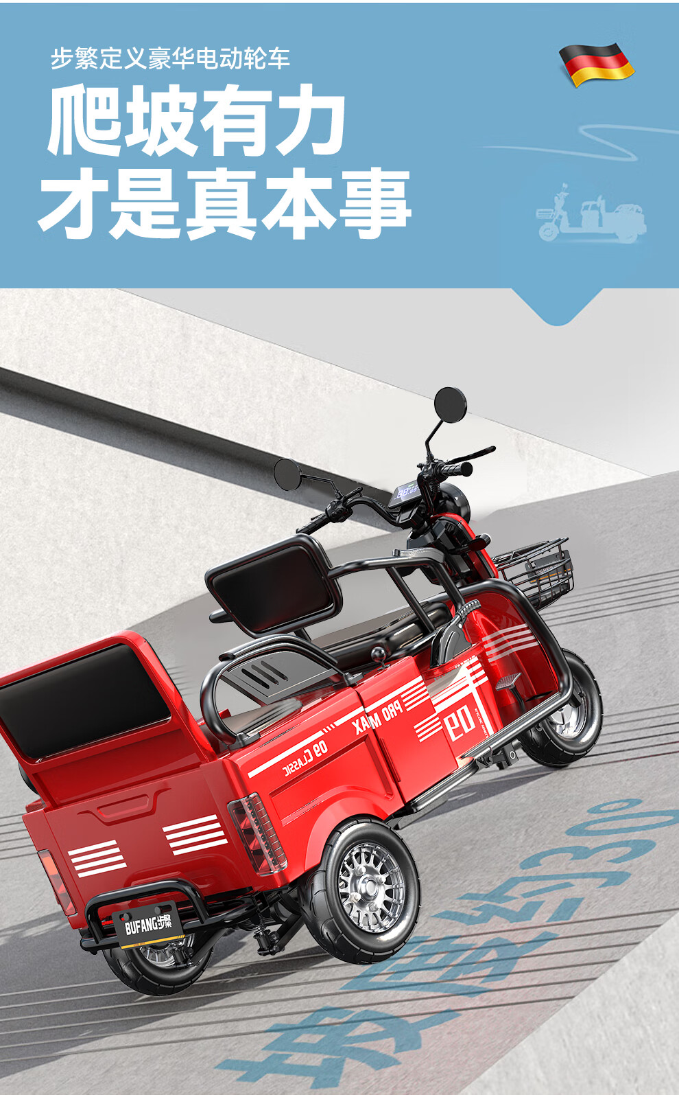 Bufan high-power electric tricycle for the elderly, household small scooter, leisure battery car, cargo climbing king electric car 1500W72/55A about 330 miles + export lithium battery