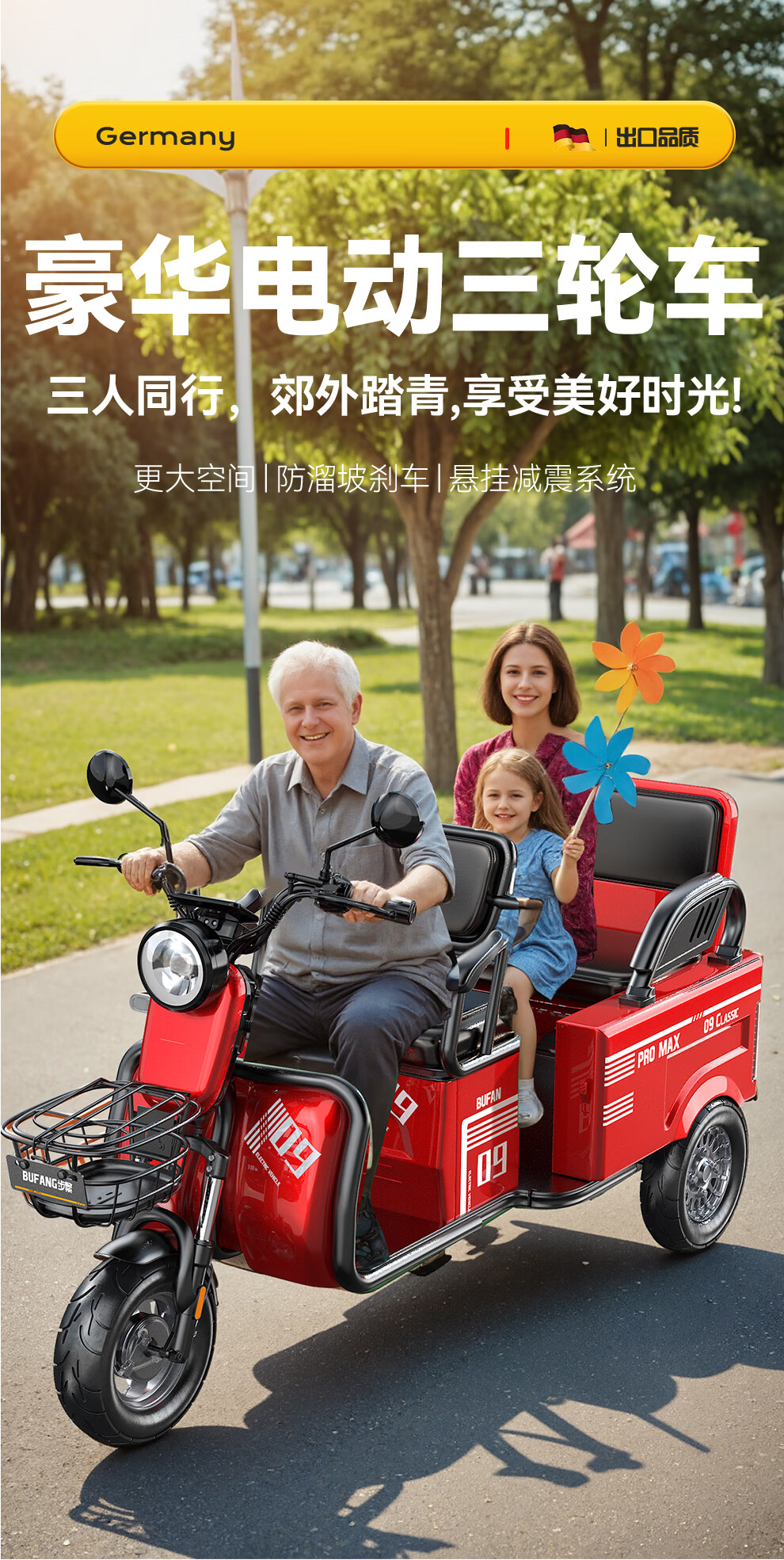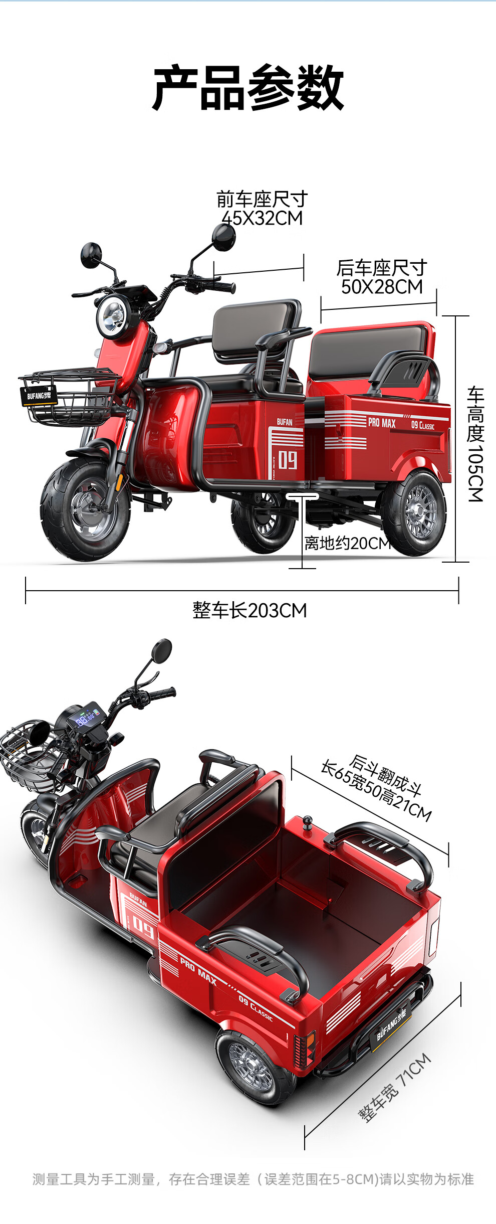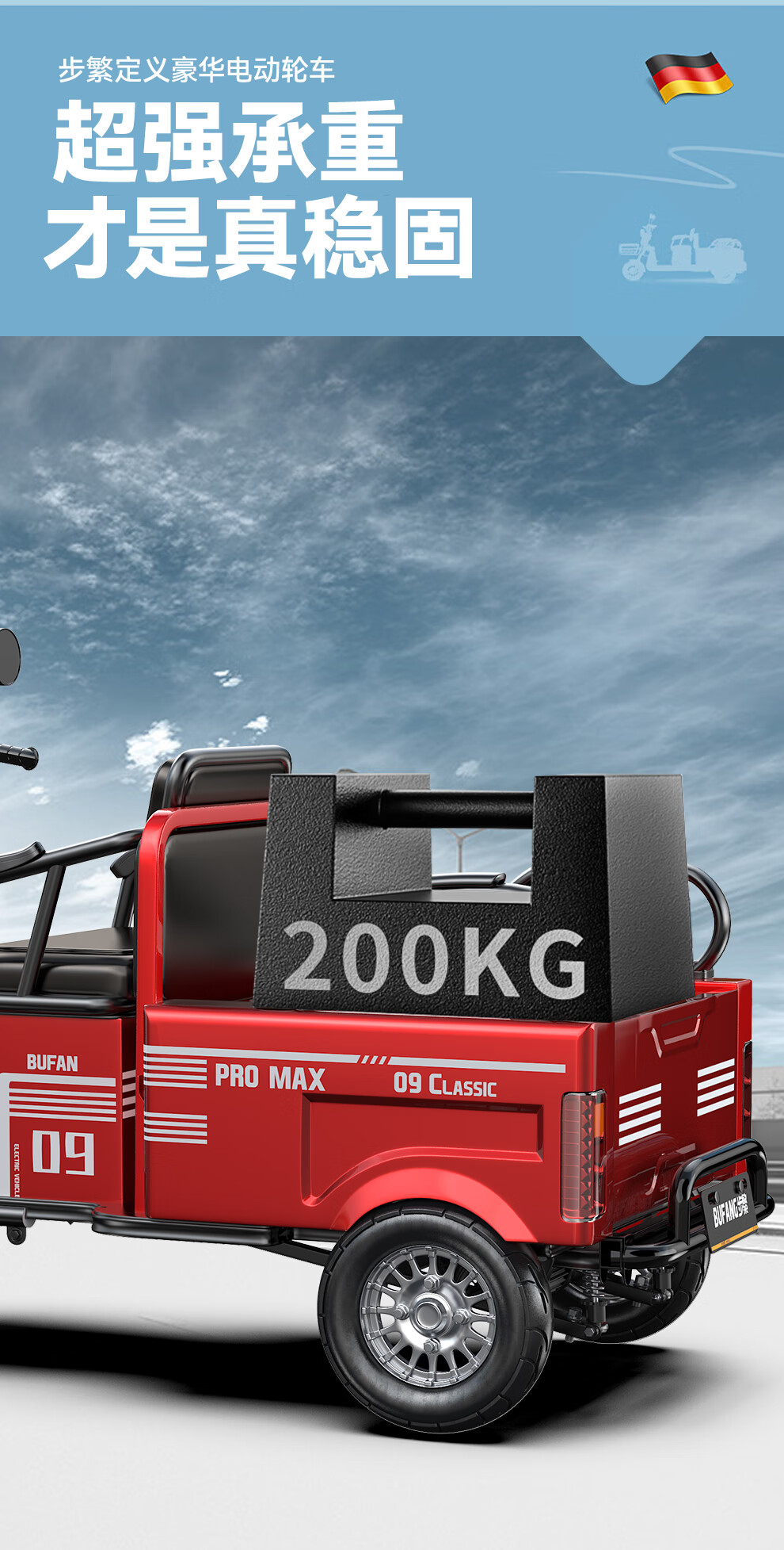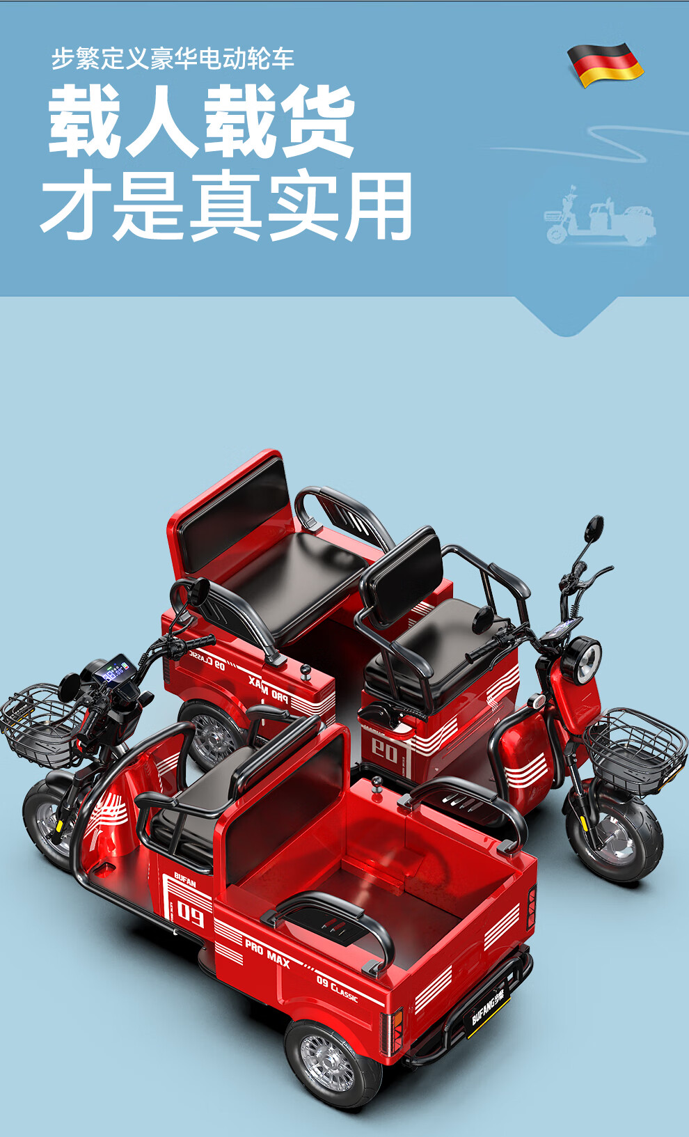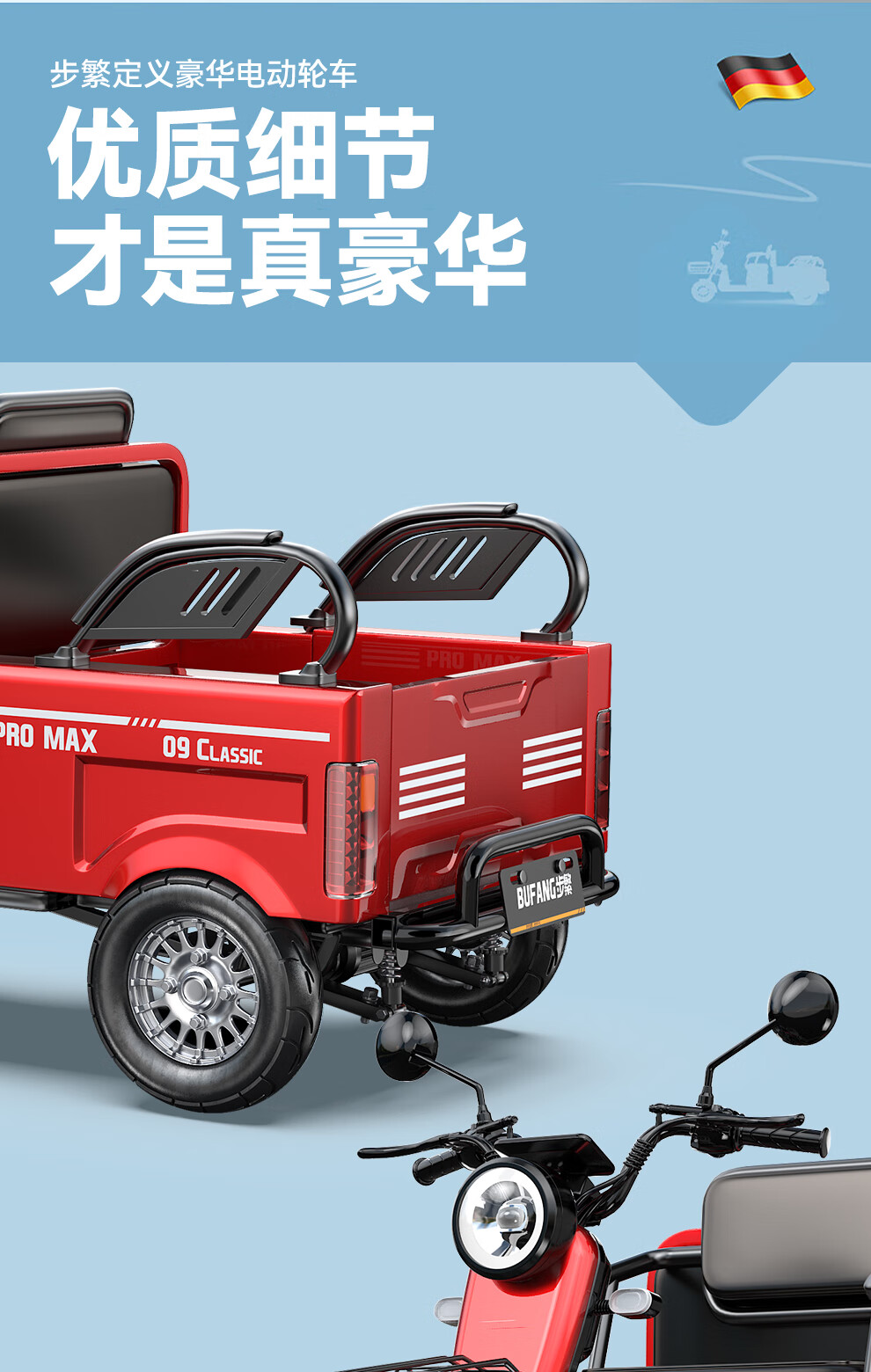 Bufan high-power electric tricycle for the elderly, household small scooter, leisure battery car, cargo climbing king electric car 1500W72/55A about 330 miles + export lithium battery