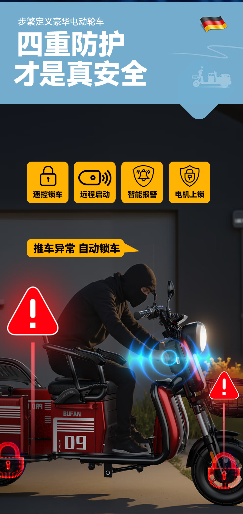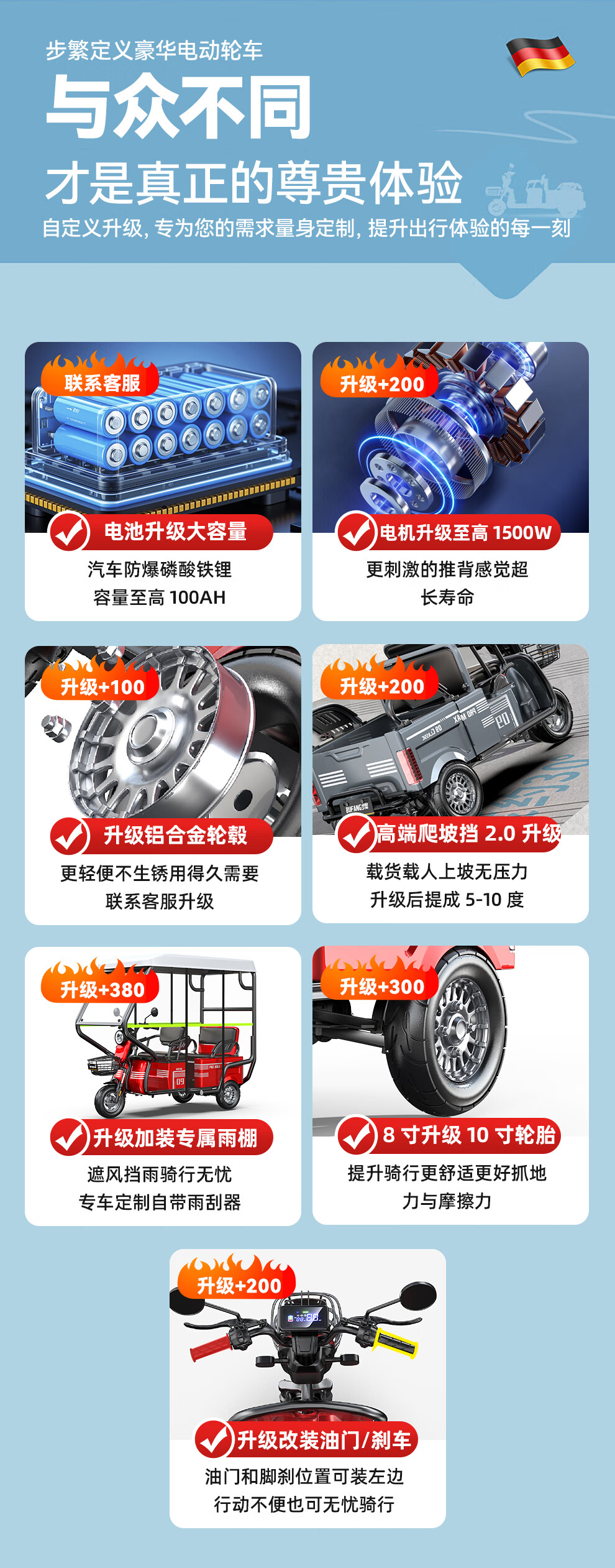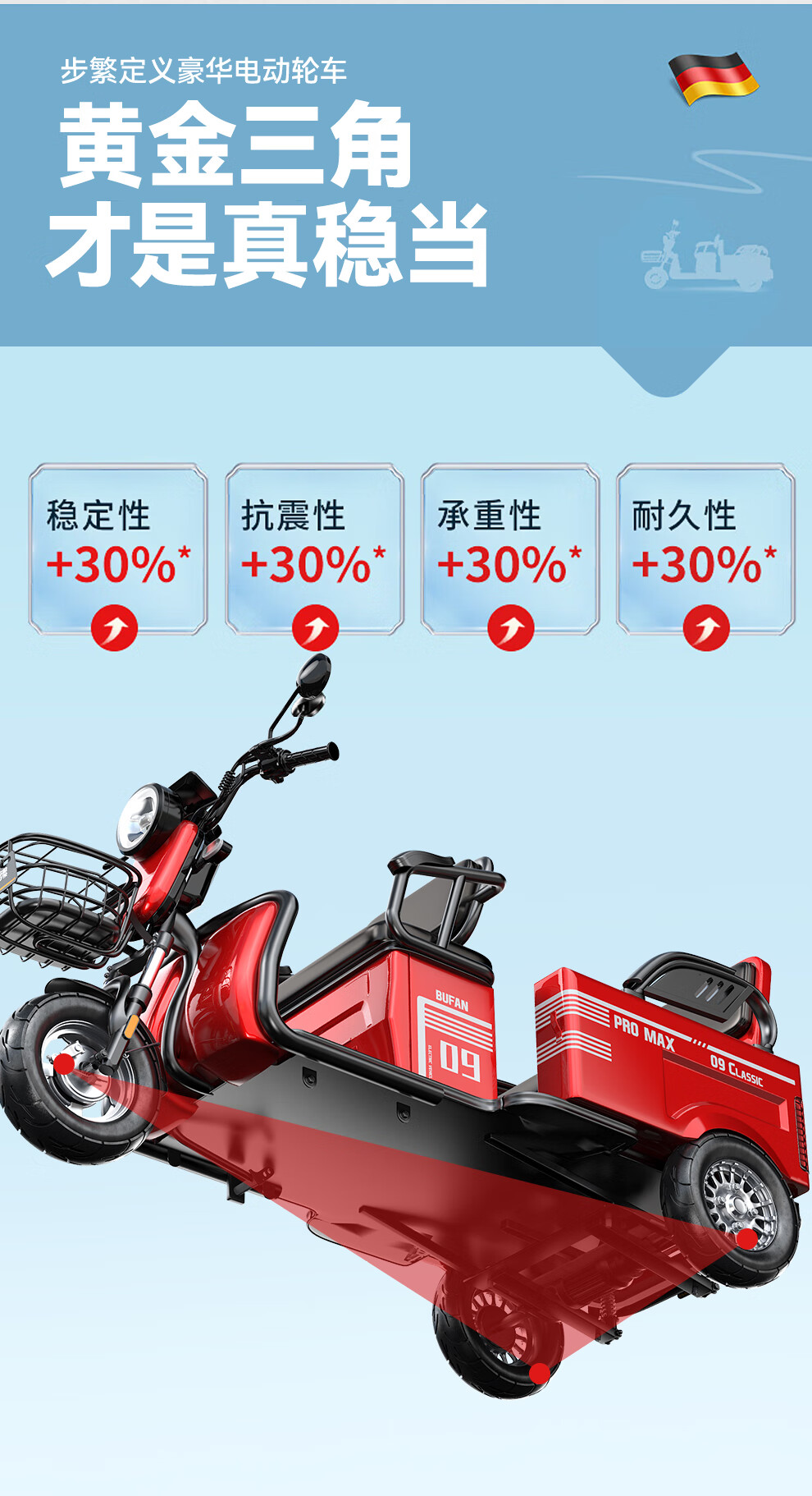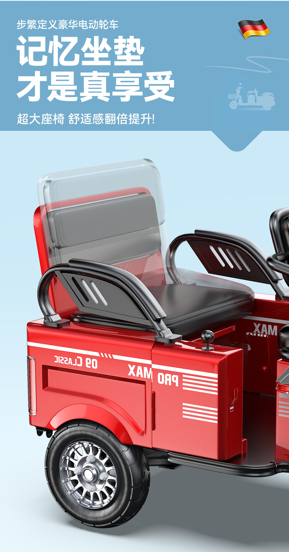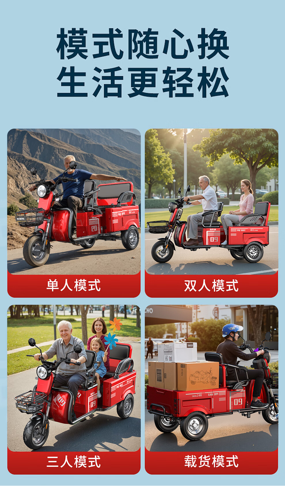 Bufan high-power electric tricycle for the elderly, household small scooter, leisure battery car, cargo climbing king electric car 1500W72/55A about 330 miles + export lithium battery